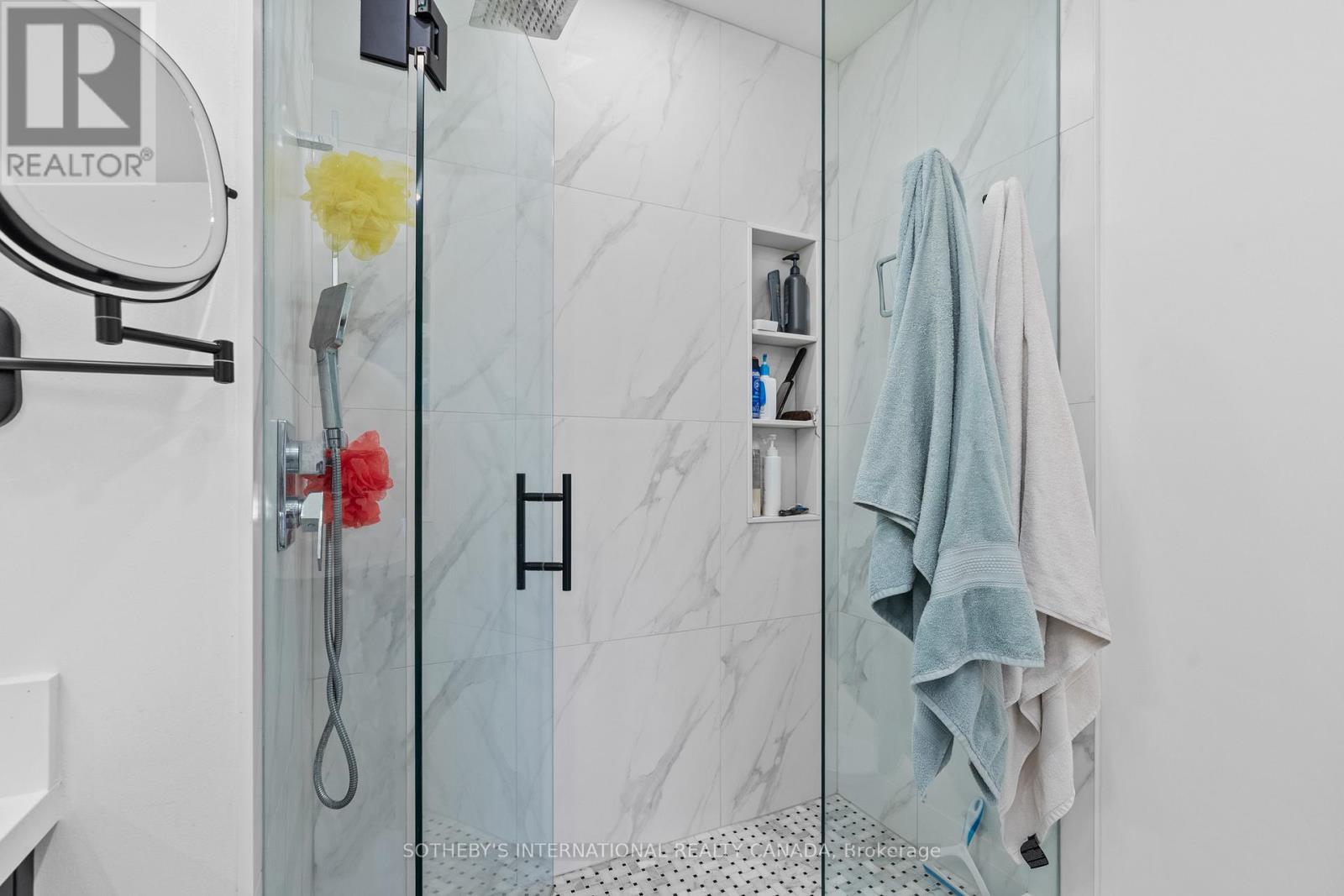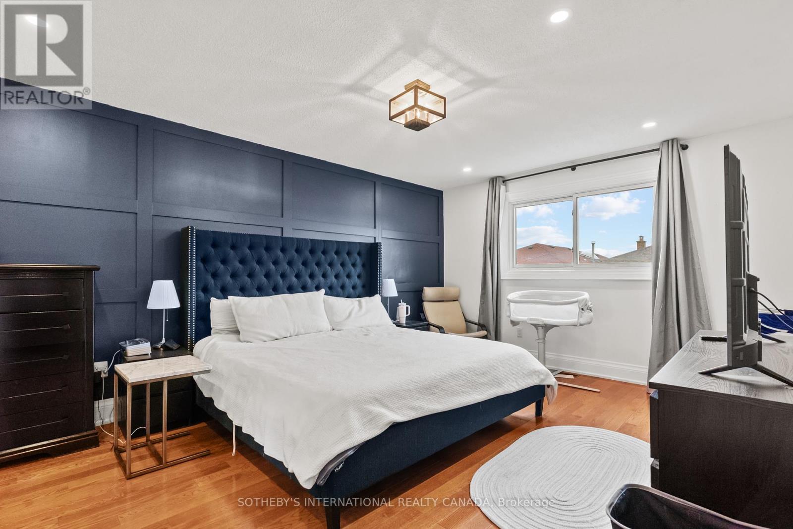 In the established pocket of Brownridge, this four-bedroom home delivers where it matters-practical today, with the capacity to evolve over time. Set on a 32 ft lot, the home offers over two thousand square feet above grade, with a layout that prioritizes usable space over excess formality. Principal rooms are balanced in scale, anchored by a family room with elevated 11' ceilings that naturally draw daily life together. The home supports growth with ease. Upstairs, four full-sized bedrooms are complemented by four bathrooms, including a primary ensuite updated in 2024. Hardwood flooring has been carried throughout, replacing original finishes and creating continuity across levels. The kitchen remains functional in its current state, presenting an opportunity for future refinement without immediate pressure. The lower level, completed in 2018, extends the home's versatility with a large recreation area, space for a home gym, additional storage, and a recently added sauna (2025). Key components have been addressed over time, including the roof, air conditioning, garage door, and an owned hot water system-allowing improvements to be made by choice, not necessity. Located within an established Thornhill community, this address continues to hold long-term appeal for its access to schools, parks, transit, and everyday amenities, including Promenade Mall. (id:64974)