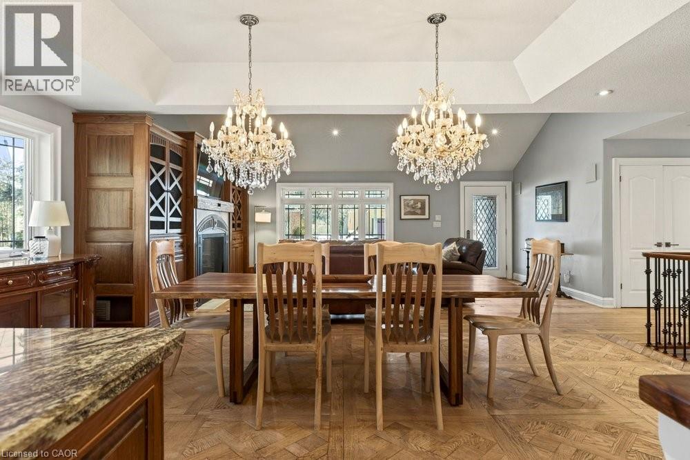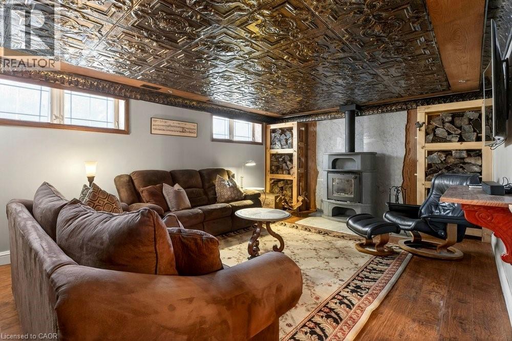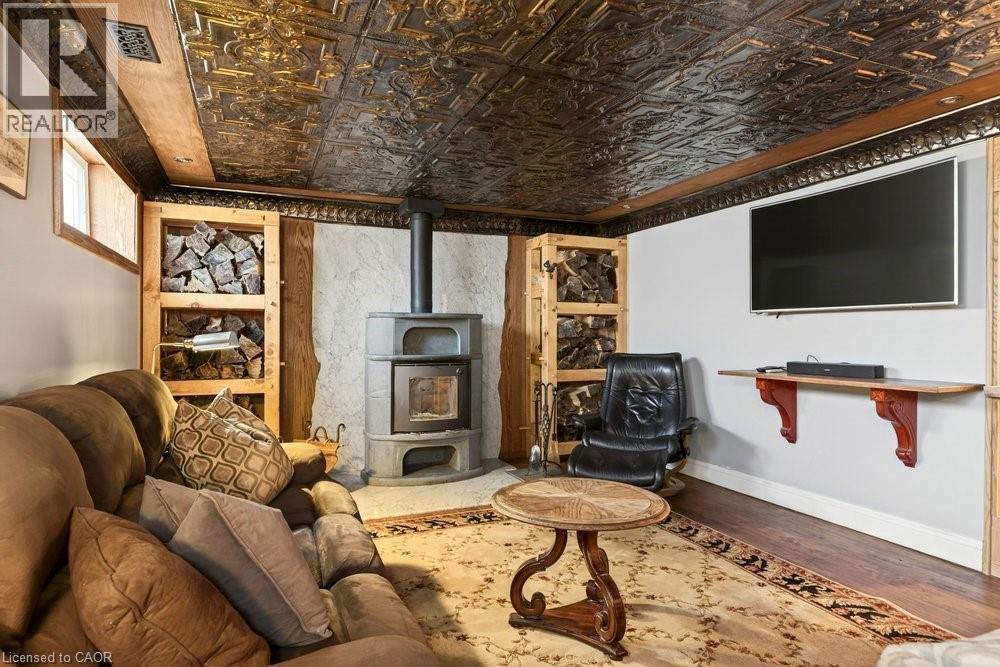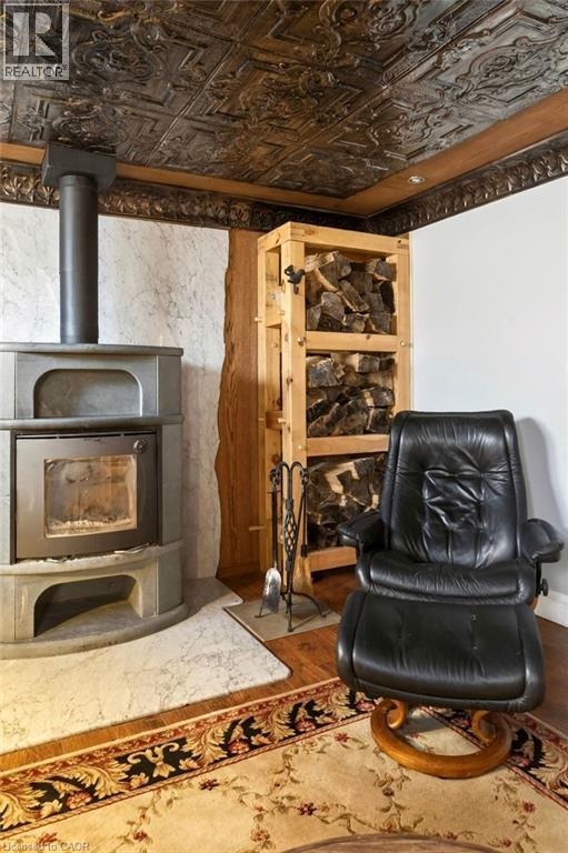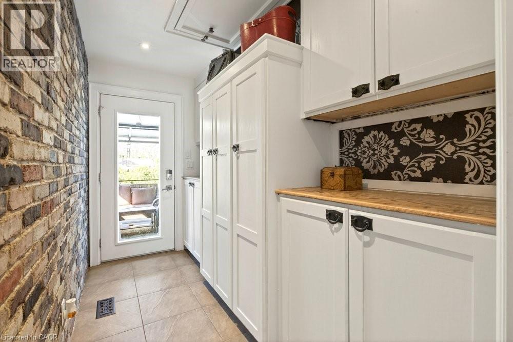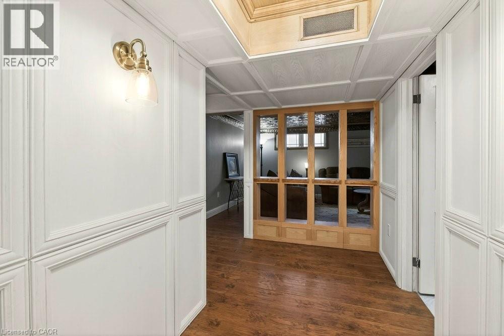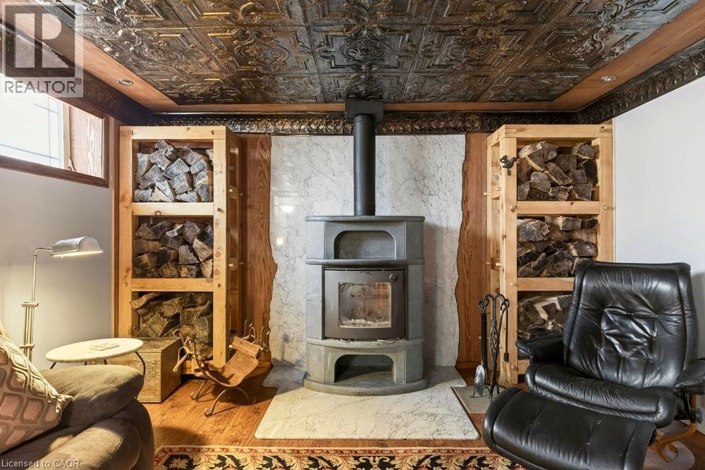 Tucked away at end of a quiet street in Old Ancaster, this extensively renovated bungalow with a thoughtful addition blends rustic warmth with refined, high-end living. Surrounded by mature trees and set on a private, fenced lot, this home feels like a hidden retreat - peaceful, grounded, and crafted with intention. Inside, natural materials and exceptional craftsmanship take centre stage. Solid wood flooring flows throughout, complemented by custom solid wood cabinetry adding richness and texture. The heart of the home is a beautifully appointed kitchen featuring Wolf and Sub-Zero appliances – designed for both everyday living and entertaining. The main level offers three bedrooms, vaulted great room and a convenient mudroom. Downstairs, the ambiance shifts into something truly special. With the warmth of a Tulikivi soapstone wood-burning fireplace imported from Finland, the space feels like a cozy cabin in the woods. The lower level also adds two additional bedrooms (converted from a gym) and a full workshop provides incredible utility and can easily be converted back into a garage if desired – offering flexibility to suit your lifestyle. Step outside to your own private oasis. Low-maintenance IPE decking anchors the backyard while the swim spa invites year- round relaxation and fitness; all set against a backdrop of trees and total privacy. Put yourself within walking distance to restaurants and shops, the Ancaster tennis club, the rail trail & Bruce Trail, and much more! (id:64974)