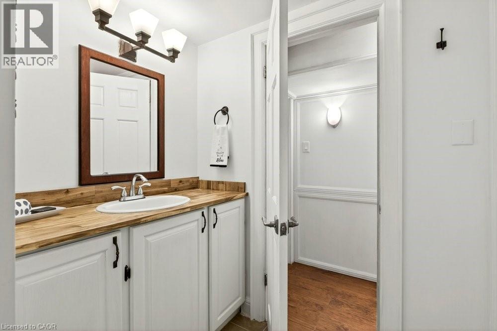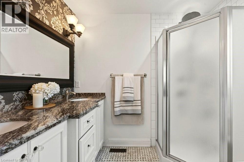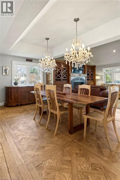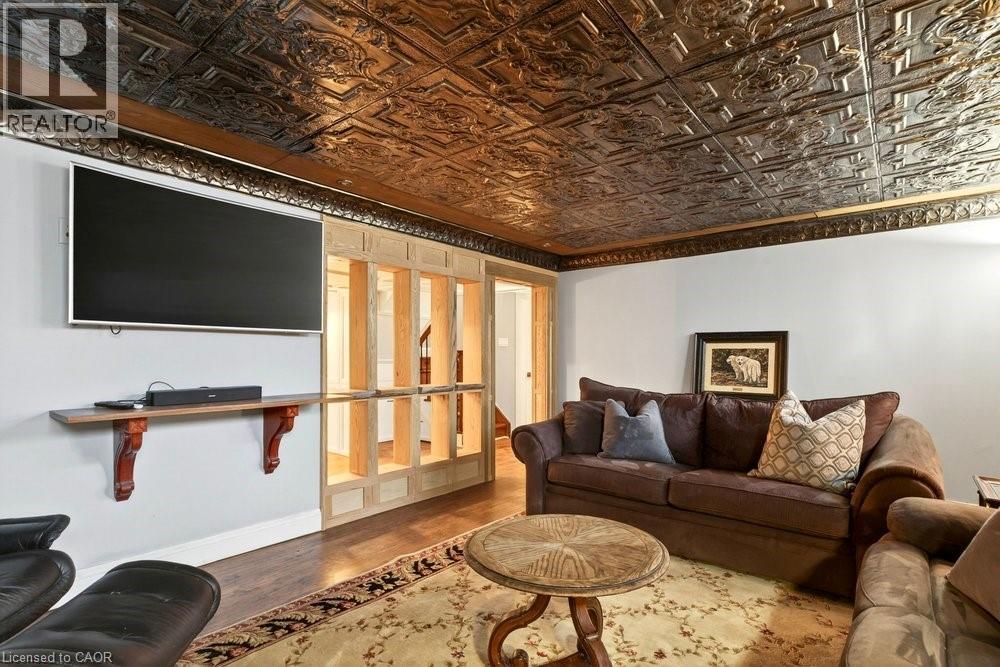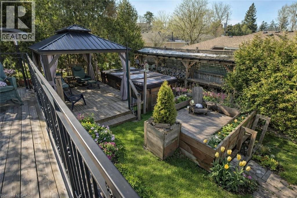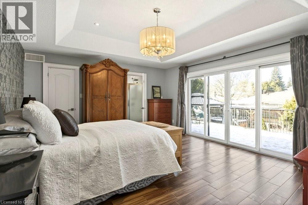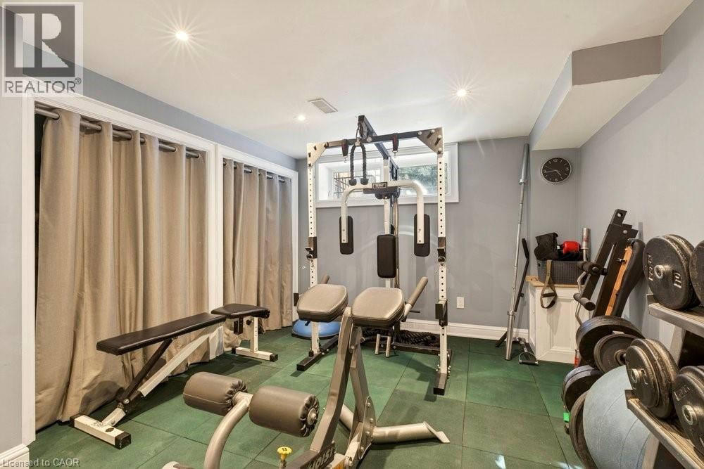 Tucked away at end of a quiet street in Old Ancaster, this extensively renovated bungalow with a thoughtful addition blends rustic warmth with refined, high-end living. Surrounded by mature trees and set on a private, fenced lot, this home feels like a hidden retreat - peaceful, grounded, and crafted with intention. Inside, natural materials and exceptional craftsmanship take centre stage. Solid wood flooring flows throughout, complemented by custom solid wood cabinetry adding richness and texture. The heart of the home is a beautifully appointed kitchen featuring Wolf and Sub-Zero appliances – designed for both everyday living and entertaining. The main level offers three bedrooms, vaulted great room and a convenient mudroom. Downstairs, the ambiance shifts into something truly special. With the warmth of a Tulikivi soapstone wood-burning fireplace imported from Finland, the space feels like a cozy cabin in the woods. The lower level also adds two additional bedrooms (converted from a gym) and a full workshop provides incredible utility and can easily be converted back into a garage if desired – offering flexibility to suit your lifestyle. Step outside to your own private oasis. Low-maintenance IPE decking anchors the backyard while the swim spa invites year- round relaxation and fitness; all set against a backdrop of trees and total privacy. Put yourself within walking distance to restaurants and shops, the Ancaster tennis club, the rail trail & Bruce Trail, and much more! (id:64974)