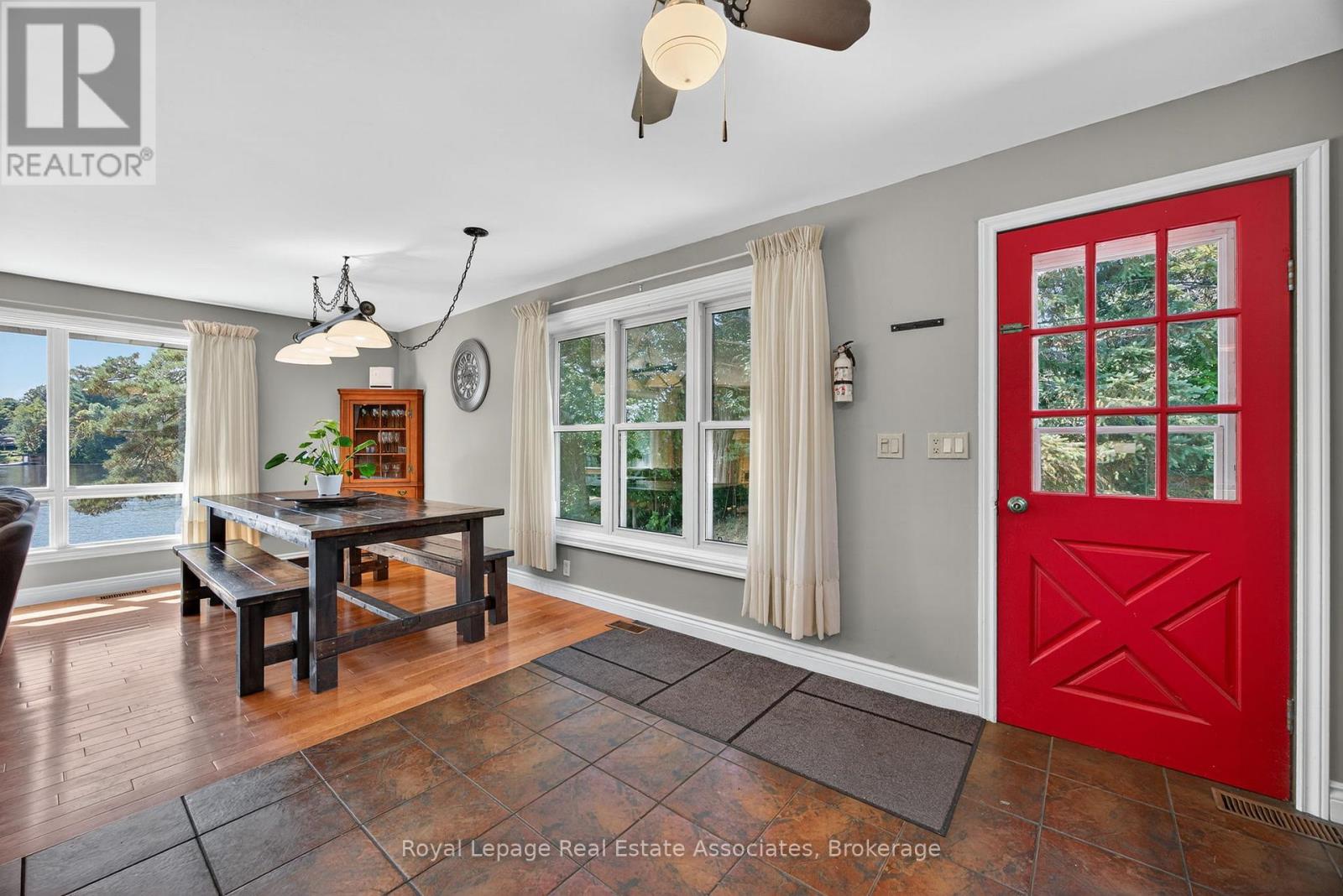 Welcome to your dream Muskoka retreat! Nestled on the sought-after Narrows in Huntsville, this beautifully renovated 4-level side split home offers the perfect blend of year-round comfort, modern upgrades, and classic cottage charm. Enjoy southern exposure and panoramic waterfront views from your expansive private dock, ideal for relaxing, entertaining, or setting off on a boat ride to explore over 60 kms of boating & four connected lakes Fairy, Vernon, Mary, and Peninsula. Whether you're into water sports, fishing, or scenic cruising, this location delivers the full Muskoka experience right from your backyard. Inside, the home features 4 spacious bedrooms, a flowing layout perfect for families or guests, and tastefully updated finishes throughout. The main living areas are bright and welcoming, with large windows that bring the outdoors in. Additional highlights include a double car garage with loft storage, ideal for all your gear, toys, and seasonal items. Located just minutes from downtown Huntsville, you'll enjoy easy access to shopping, dining, schools, healthcare, and all big-town amenities while still feeling tucked away in a serene waterfront setting. This is a rare opportunity to own a turnkey waterfront property in one of Muskoka's most desirable locations. Whether you're seeking a permanent residence, a vacation getaway, or an investment, this home checks every box. Recently Upgraded in 2020, Furnace 2019, Septic replaced (2004) with fast system 0.5 visual and audio alarm system, and Raised bed (bubbler system estimated value $10,000.00) documentation available, Newer Weepers Installed around Perimeter of home, 2012 additional dock elements added to dock (ramp 6 x 12 & dock 12 x20 $8017.35) documentation available. (id:64974)
