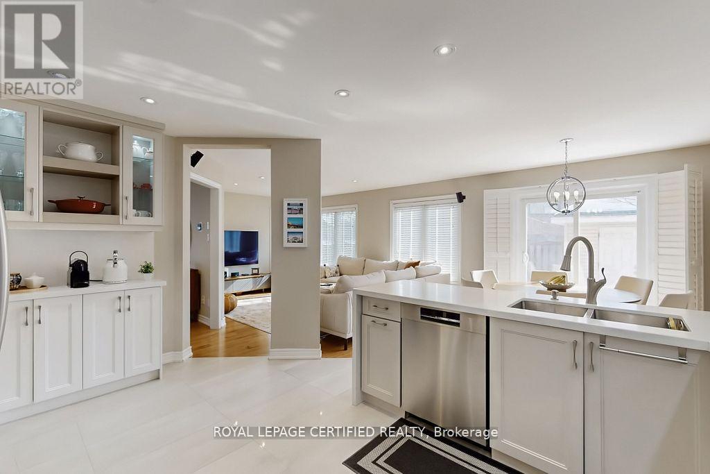 A prestigious subdivision with only two entry points, this rare corner estate offers exceptional privacy, architectural presence, and around 3400 sq. ft. of refined, designer-upgraded living space. Situated on a premium lot (almost 50'x105') with three distinct outdoor living areas, the professionally landscaped grounds - enhanced with elegant patterned concrete and a full sprinkler system - create a private outdoor sanctuary ideal for upscale entertaining or serene relaxation. Inside, timeless elegance meets modern sophistication. Rich hardwood flooring flows across the main level, highlighted by a dramatic living room with cathedral ceilings and custom blinds that elevate both light and scale. Formal dining, an expansive family room designed for memorable gatherings, and a beautifully renovated chef-inspired kitchen with walk-out access to the backyard deliver seamless indoor-outdoor living. Upstairs, the primary suite serves as a luxurious retreat, featuring custom motorized blinds and a spa-inspired renovated ensuite. An updated staircase and fresh carpeting add polish and cohesion throughout the upper level.The fully finished lower level offers impressive flexibility with two additional bedrooms, a spacious recreation lounge, a full bathroom, and abundant storage - perfectly suited for family living, extended guests, or a sophisticated executive work-from-home environment Significant investments include a high-efficiency furnace and heat pump (2024), renovated ensuite and laundry room (2024) with custom cabinets, upgraded attic insulation, professional landscaping and sprinkler system (2021), central VAC, a double garage with 50-amp outlet for EV, and a rare second rear driveway with garden shed. Close to parks, schools, highways, and amenities. A well-maintained, move-in-ready home in a desirable neighbourhood.Option for separate entrance being a corner lot. (id:64974)