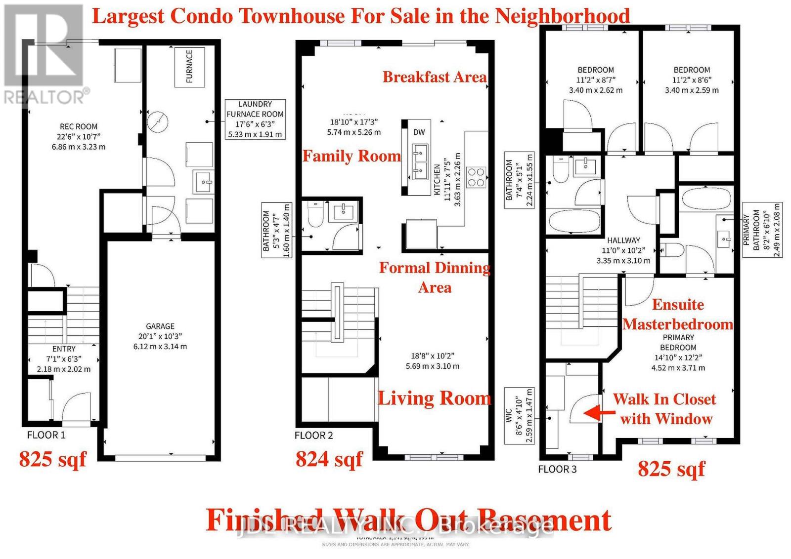 The LARGEST model currently offered in this well-maintained community, boasting over 2,400 sq.ft. of Total Finished and Renovated Living Space. This Bright South-West facing home is filled with Natural Light Throughout the Day and has been Extensively Updated in 2026 over $30000. including BRAND NEW items: Flooring, Windows, Marble Countertops, Stylish Lighting Fixtures, and New Carpet on the Stairs. BRAND NEW Kitchen Appliances (2026): Stove, Fridge, Dishwasher. The Main Level features a Spacious Living Room Combined with a Formal Dining Area, Along with a Separate Family Room Offering Additional Comfort and Flexibility. The FULLY Finished WALK - OUT BASEMENT Adds Valuable Living Space Ideal for a Recreation Room, Home Office, or Extended Family Use.Enjoy a Highly Convenient Location within Walking Distance to Parks, Trails, and Walmart Centre, and just Minutes Drive to Highway 410, Highway 407, Schools, and Everyday Amenities. A rare opportunity to own a MOVE - IN READY, Oversized Home in a Family-Friendly Brampton Neighbourhood. (id:64974)