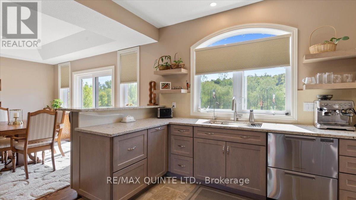 Welcome to this remarkable 3+2 bedroom home on Deerfield, an impeccably maintained residence in a highly regarded enclave just off Rednersville Road. Offering an exceptional balance of privacy, quality, and convenience, this property is set in one of the area's most desirable settings. A grand foyer with elegant Crystorama "Hayes" chandeliers sets the tone for the quality and care found throughout the home. The main floor features a spacious open-concept living and dining area centered around a cozy 63-inch electric fireplace, with a walkout to a newly restored deck overlooking the peaceful setting beyond the backyard. At the heart of the home is a stunning kitchen with top-of-the-line Fisher & Paykel appliances installed in 2024, a generous walk-in pantry, and convenient main floor laundry room with new appliances installed in 2024. The main level also offers a spacious primary suite with large walk-in closet and private 3-piece ensuite. Upstairs, a striking staircase leads to a large media room, currently used as an office, with expansive views of the property. On either side are two oversized bedrooms, each with its own 4-piece ensuite and walk-in closet. The fully finished lower level adds even more living space, including a welcoming family room with propane fireplace, a hobby room, and two additional bedrooms, ideal for guests, teens, or multi-generational living. Built for a growing family, the layout and setting may also lend themselves to short-term accommodation potential, subject to municipal requirements and approvals. The property features an oversized two-car garage, a beautifully landscaped 1.6-acre lot in a quiet private subdivision, and a 10 kW generator installed in 2025 providing backup power to 8 to 12 essential circuits during outages. Although custom-built in 2008, the home's exceptional care and attention to detail give it the feel of a much newer property. Enjoy peaceful country living with the convenience of Belleville just 15 minutes away (id:64974)