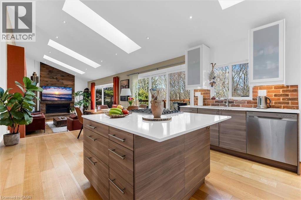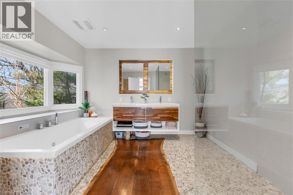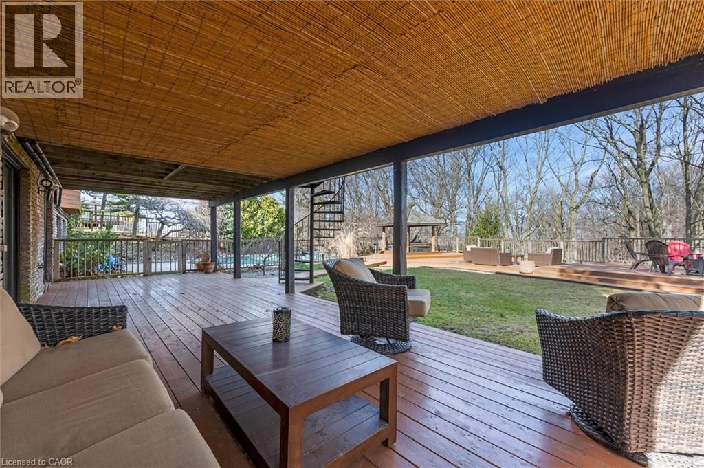 Rare opportunity to own a substantially upgraded RAVINE-BACKING BUNGALOW in Stoney Creek’s sought-after PLATEAU neighbourhood. Offering approximately 3,500 SQ FT OF FINISHED LIVING SPACE, this home has seen over $500,000 IN UPGRADES and features a custom kitchen, renovated bathrooms, finished on-site WHITE OAK HARDWOOD, SKYLIGHTS, GAS FIREPLACE, and a beautifully RE-FINISHED BASEMENT. The WALK-OUT LOWER LEVEL extends the living space and opens to a private backyard retreat with an IN-GROUND POOL, HOT TUB, SHED, and an impressive approx. 2,000 SQ FT CEDAR DECK, ideal for entertaining or relaxing against a serene ravine backdrop. Major updates include ROOF, HVAC, 200-AMP ELECTRICAL, plumbing, drywall, and framing, offering real value beyond the finishes. A rare turnkey bungalow in one of Stoney Creek’s most desirable family neighbourhoods. (id:64974)