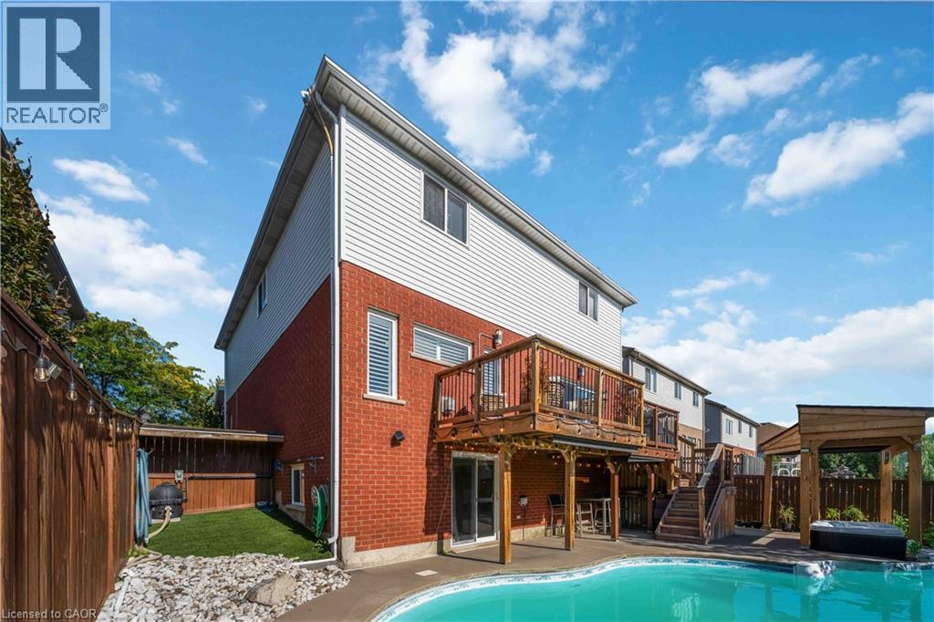 39 Honey Locust Cir is a lovely home located in a family-friendly neighbourhood, offering over 3,200 square feet of finished living space, including three plus one bedrooms and four baths. From the beautiful landscaping to the inviting in-ground heated pool, this home has it all. The backyard is a true oasis, featuring a refreshing heated pool and a hot tub thoughtfully placed under a charming gazebo for year-round enjoyment. The breathtaking entrance boasts a high-ceiling foyer and a chandelier, creating an immediate sense of grandeur. A large window bathes the space in sunlight, setting a warm and inviting tone for the entire home. The open-concept main floor includes a large living area with a gas fireplace, an accent wall, large windows, and California shutters. The bright, naturally lit kitchen provides plenty of storage and an extended quartz countertop with a breakfast area. The large dining room provides ample seating and access to a beautiful upper deck with a patio area and stairs leading to the backyard. The main floor laundry offers plenty of storage and provides access to the double-car garage. On the second floor, the master bedroom includes an ensuite bath and a walk-in closet. The loft area, with its natural light, provides great potential for an office, study, bedroom, or family room. The walkout finished lower level boasts a living room with a large window, a spacious kitchen, a bedroom, and a bathroom perfect for an in-law suite. This beautiful home comes with many upgrades and 200-amp service. It is close to all amenities: university, parks, schools, highway access, plazas, restaurants, and bus routes. Book a viewing today! Room sizes approximate. (id:64974)