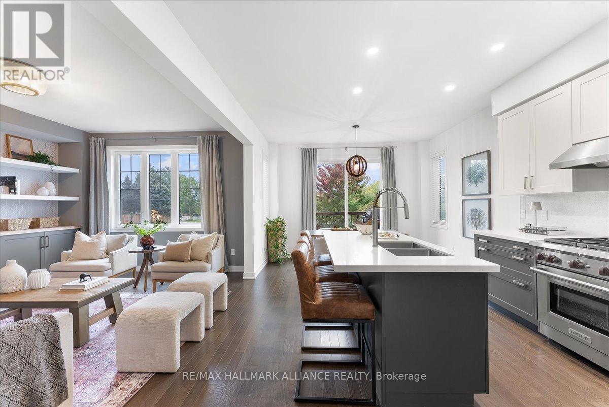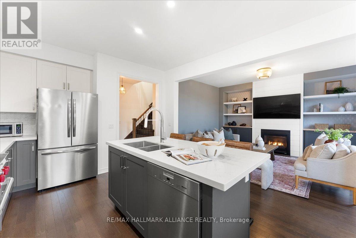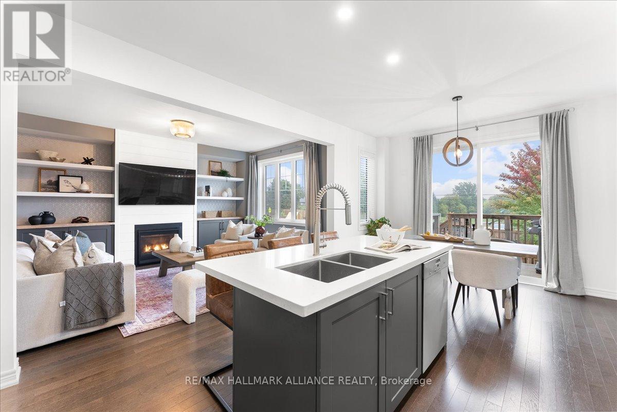 Step into comfort and style in this beautifully upgraded 4-bedroom, 3-bath detached home in Fergus. Backing onto the peaceful green space of Forfar Park and just steps from the Elora Cataract Trail, this home offers the perfect blend of nature and modern living.The main floor features an open-concept layout with 9-foot ceilings, rich hardwood flooring, oak staircase and striking custom woodwork throughout. The chefs kitchen stands out with sleek tuxedo-style cabinetry, premium finishes, Wolf Gas Stove, and a functional design ideal for entertaining. Gather in the family room around the cozy gas fireplace, framed by custom built-in's and flooded with natural light. Upstairs, four generously sized bedrooms provide ample closet space and plush broadloom, with the primary suite offering a luxurious 5-piece ensuite with soaker tub, double vanity, and walk-in shower. The unfinished basement offers endless potential - whether you're dreaming of a home gym, recreation space, or in-law suite, it's a blank canvas ready for your personal touch. Step outside to your own backyard retreat, featuring a hot tub, children's play area, and lush green space with no rear neighbours! (id:64974)