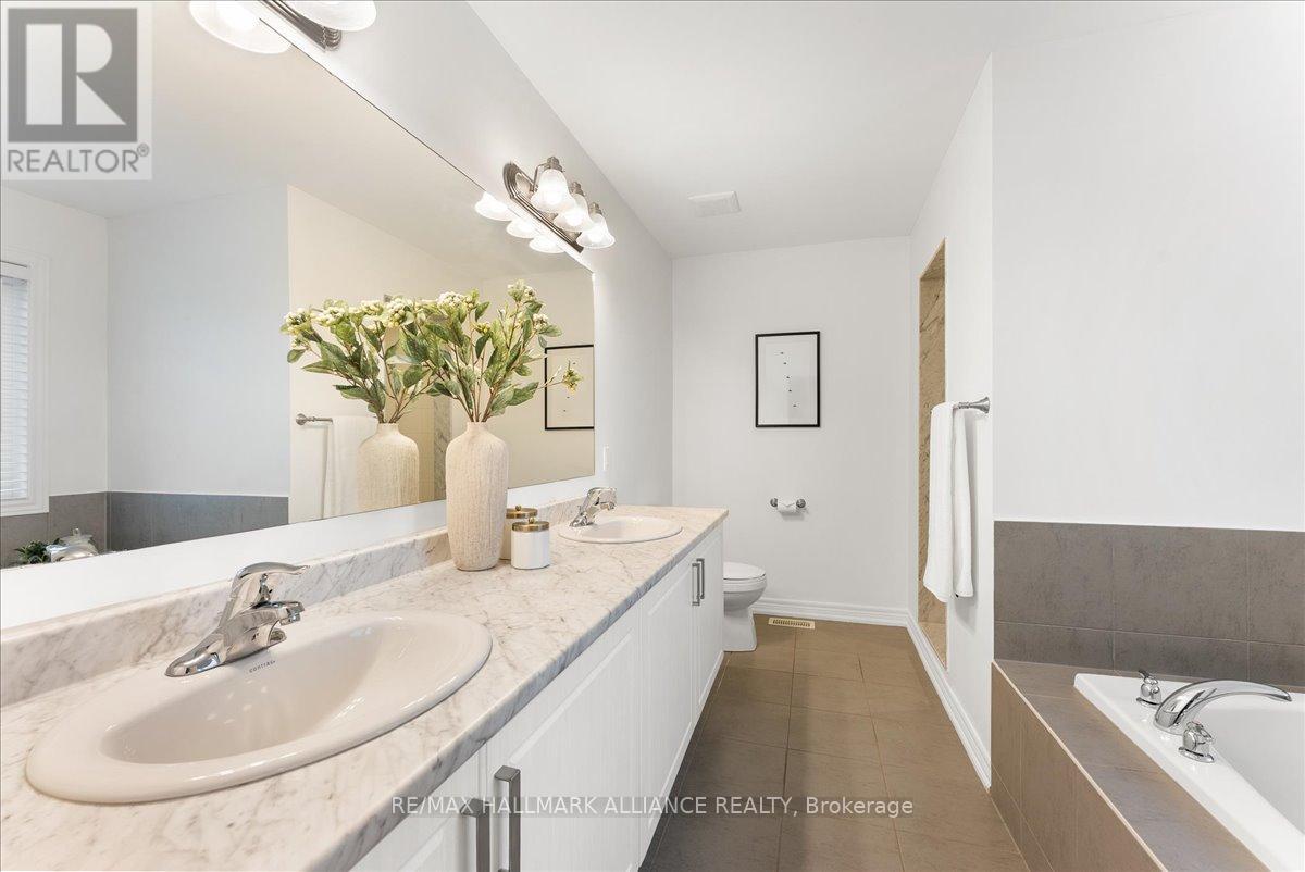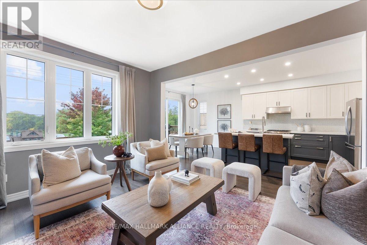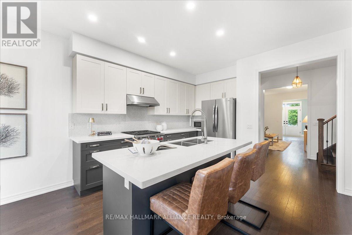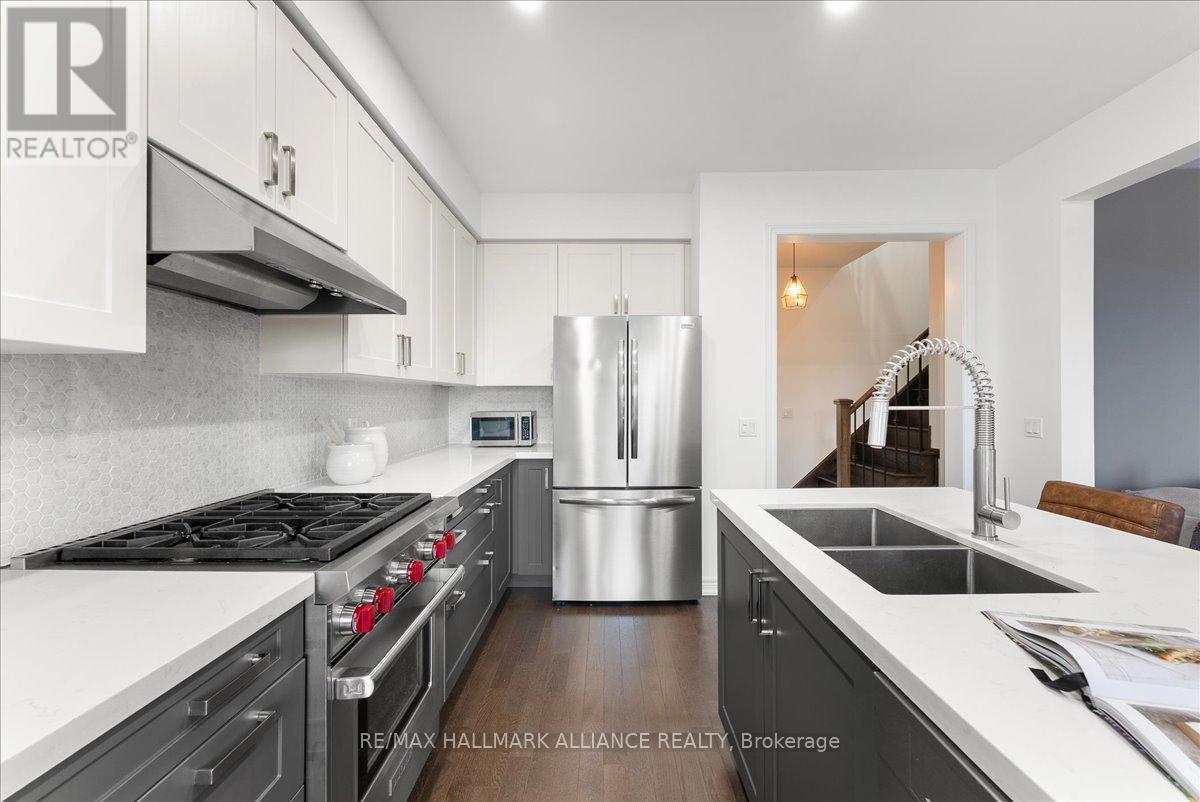 Step into comfort and style in this beautifully upgraded 4-bedroom, 3-bath detached home in Fergus. Backing onto the peaceful green space of Forfar Park and just steps from the Elora Cataract Trail, this home offers the perfect blend of nature and modern living.The main floor features an open-concept layout with 9-foot ceilings, rich hardwood flooring, oak staircase and striking custom woodwork throughout. The chefs kitchen stands out with sleek tuxedo-style cabinetry, premium finishes, Wolf Gas Stove, and a functional design ideal for entertaining. Gather in the family room around the cozy gas fireplace, framed by custom built-in's and flooded with natural light. Upstairs, four generously sized bedrooms provide ample closet space and plush broadloom, with the primary suite offering a luxurious 5-piece ensuite with soaker tub, double vanity, and walk-in shower. The unfinished basement offers endless potential - whether you're dreaming of a home gym, recreation space, or in-law suite, it's a blank canvas ready for your personal touch. Step outside to your own backyard retreat, featuring a hot tub, children's play area, and lush green space with no rear neighbours! (id:64974)
