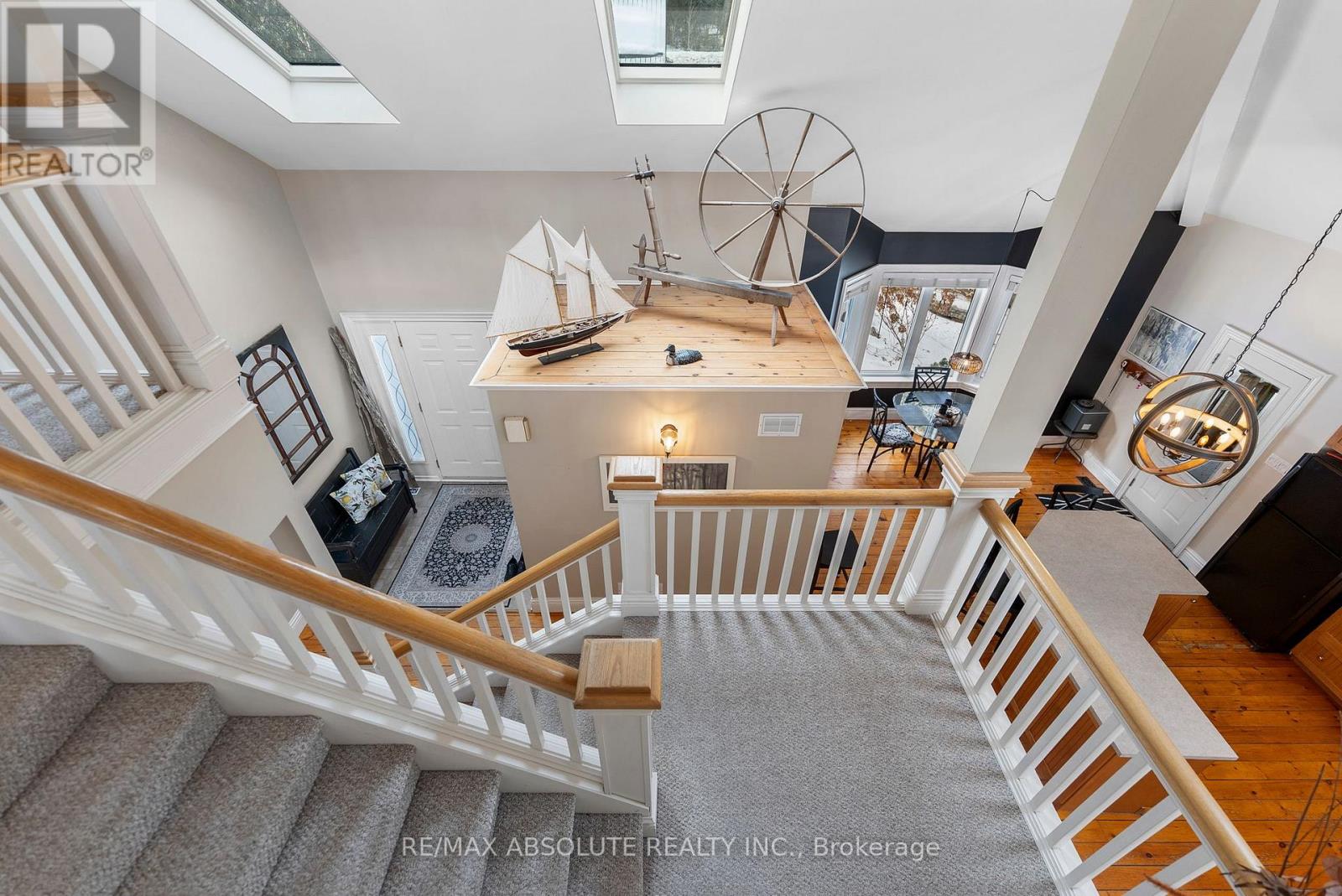 Gracious waterfront living in sought-after Rhoddy's Bay! This unique home offers all the features you've been looking for in a waterfront home! From the inviting curb appeal, you'll begin to relax the moment you drive down the lane! Step inside and the stunning signature staircase immediately captures your attention. Distressed plank pine flooring throughout the main level adds to the charm and character of this waterfront retreat. The sun-filled kitchen with breakfast nook is the perfect place to start your day. Beautiful living and dining rooms offer a wall of windows that showcase the spectacular views of the Ottawa River. The main floor primary suite includes a 4-piece ensuite bath and convenient main floor laundry adds to the home's thoughtful design. 3 skylights in foyer and kitchen areas let the natural sunlight flow in. The true signature space of this home is the second-floor family room - sit down and you won't want to leave! Two additional bedrooms offer generous closet space and the luxurious main bath features a corner shower and beautiful soaker tub. The walk-out lower level includes a fourth bedroom, recreation room, and a 3 piece bath....ideal for guests or family! Enjoy a large bi-level deck with multiple levels leading down to the dock complete with a boat lift. A great place to dock your boat or swim...water is approximately 7 ft deep at the end of the dock! A newer oversized double garage offers extra space for equipment and "toys"! The exterior of the home features a combination of wood siding, stone and composite siding creating both character and durability. This beautiful stretch of the Ottawa River offers miles of boating in either direction! Located just minutes from the Arnprior Golf Club and with easy access to the Algonquin Trail for walking, biking, snowmobiling and more! 10 minutes to the amenities of Arnprior. This is truly a must-see property! Create your own unique waterfront lifestyle...make 39 McNeill Road yours today! (id:64974)