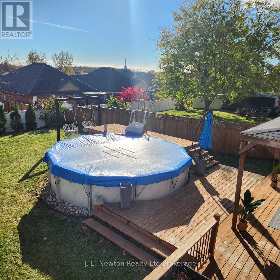 This amazing property comes with a spacious open concept 3 bedroom ranch styled home with double car attached garage on a large 100x150 lot. Designed for comfort, the main floor offers a livingroom/kitchen/diningroom combo with walk out to a multilevel deck with gazebo overlooking the large back yard that comes fully fenced with a six person hot tub, 18 foot above ground pool and enough room for all the kids and pets to play. Downstairs there is a second kitchen, recroom, spare room for office etc., a wood fireplace and a walk out to the back yard. There is many updates including kitchen cupboards, countertop, metal roof and hydro panel. Close to schools, shopping and highway access makes this property highly desirable. Call today for your showing. All measurement and taxes are approximate. (id:64974)