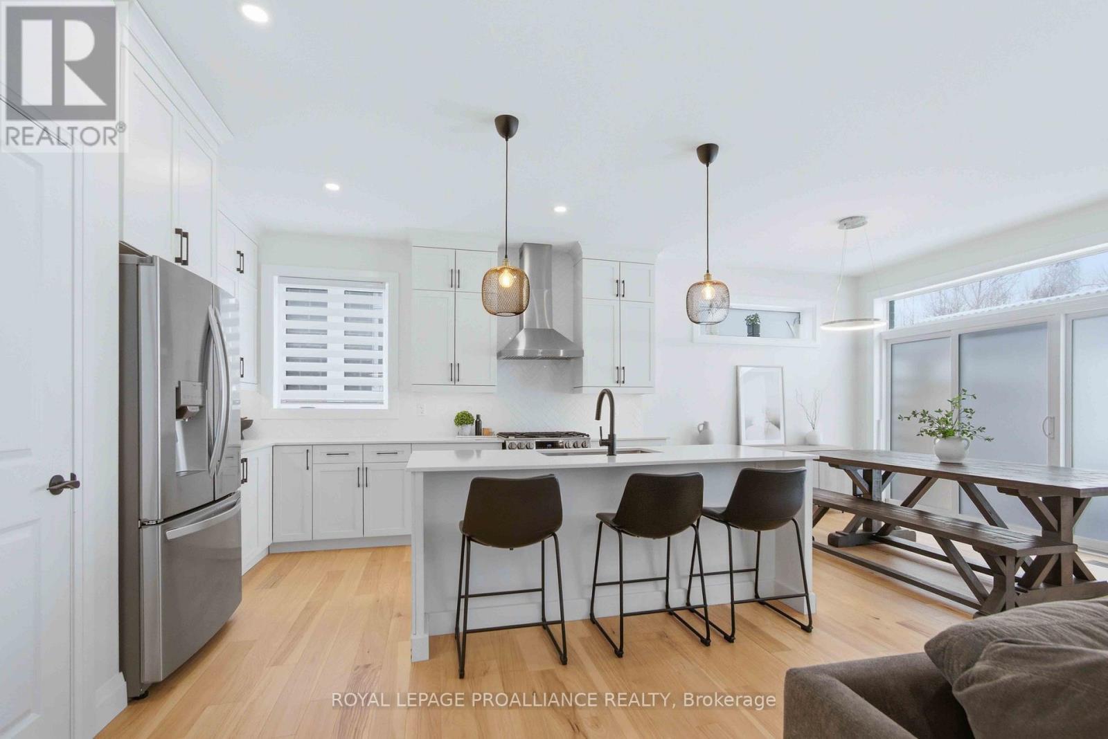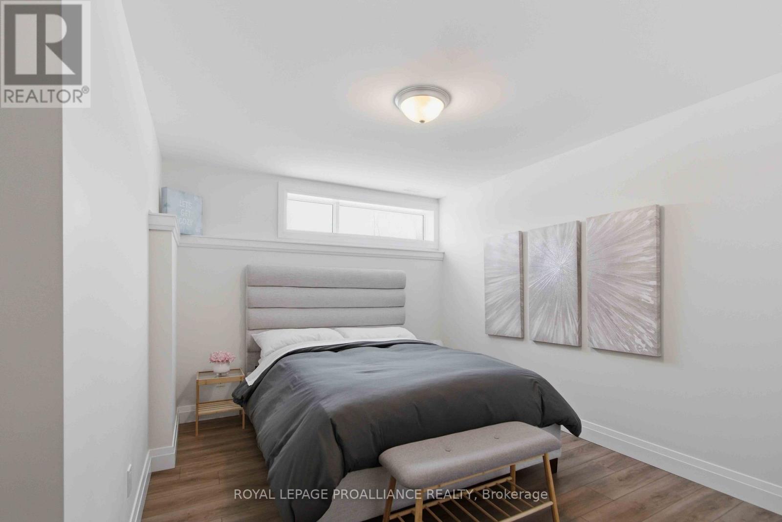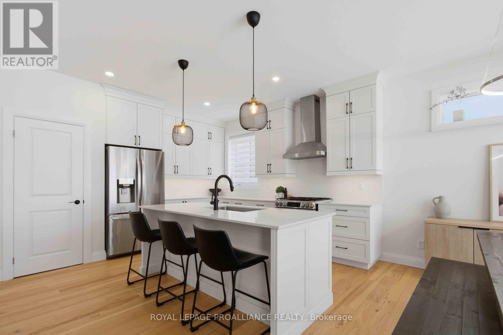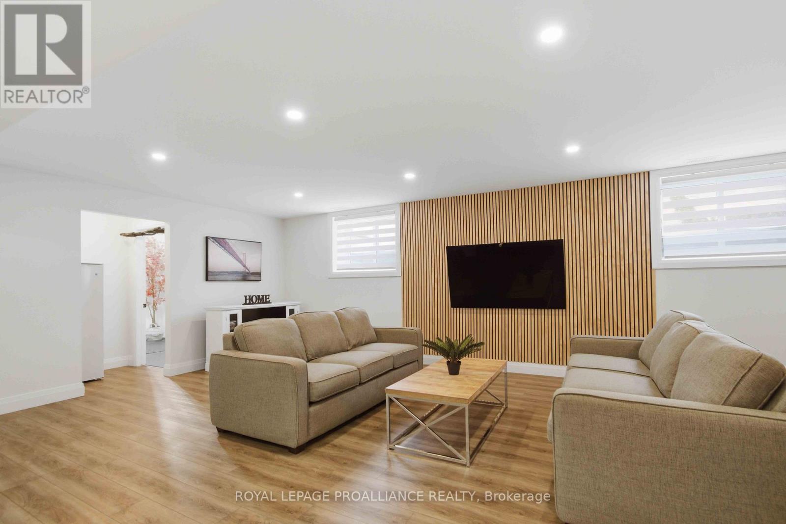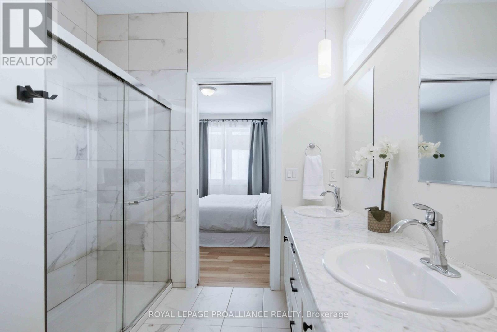 Wow here it is - a spacious home with a fully finished lower level with lots of upgrades and an extra deep lot. From the stately covered front entranceway and oversized foyer the tone is set. Four bedrooms plus an office/exercise room and three bathrooms, a double garage PLUS a mezzanine storage area above. Spacious kitchen with an abundant amount of cabinets to the ceiling with crown moulding, large island with quartz countertops and more storage, backsplash, transom window for more natural light, 9 foot patio door to deck AND a spacious kitchen pantry. Living room with oversized window and electric fireplace is bright and inviting. Primary bedroom easily handles the king size bed with another large window over looking the private backyard. Ensuite bath with glass and tile shower, double sinks in the vanity plus the walk in closet which is also oversized. The lower level boasts a recreation room that could easily fit a large sectional and pool table and it has a beautiful accent wall. Two additional bedrooms plus an exercise room/office area plus the third full bath complete this primeau package. Located in the very desirable Orchard Lane development with its own park but no townhouses or apartments, you are 5 mins to 401/Walmart, 10 mins to YMCA/CFB Trenton, Prince Edward County and Marina. This is the one you have been waiting for. (id:64974)