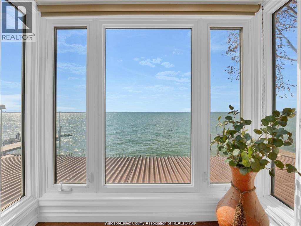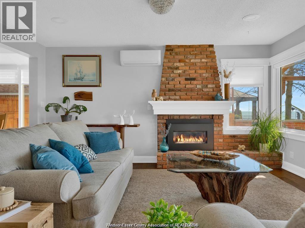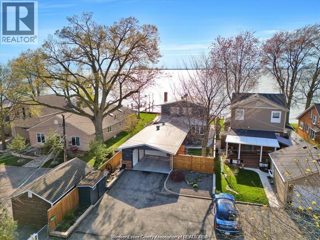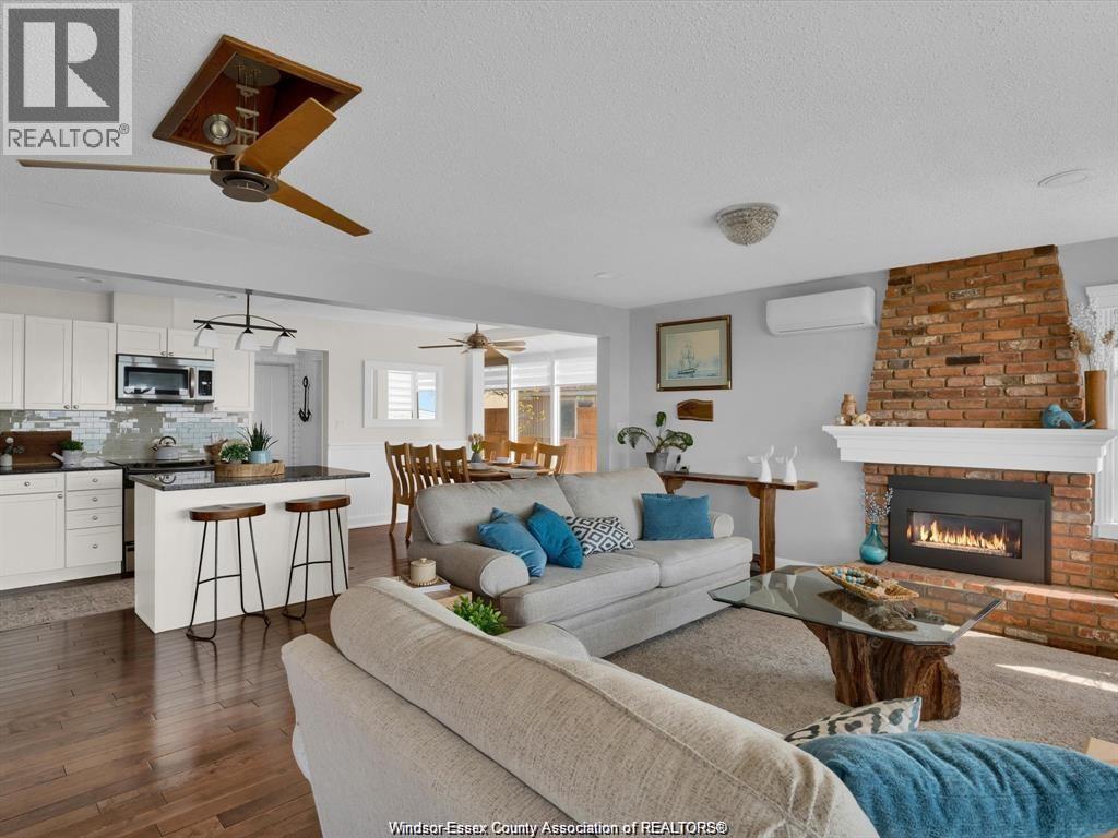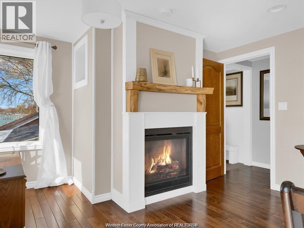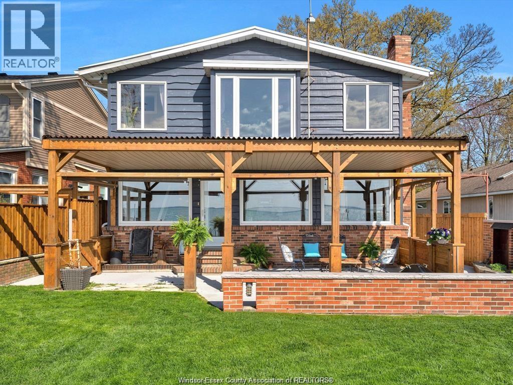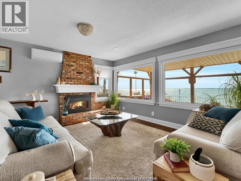 Welcome to 39 Woodbridge! A beautifully renovated waterfront home with unobstructed views where Lake Erie meets the start of the Detroit River. This bright, open concept main floor features a spacious kitchen with quartz countertops and a large centre island overlooking the dining area and living room with a gas fireplace. Patio doors lead to a covered porch with custom blinds, perfect for enjoying panoramic water views. The main floor also offers a versatile den, office nook, 3 piece bathroom, and updated laundry, with hardwood flooring throughout. The upper level features a generous primary bedroom with walk in closet and stunning waterfront views, a second bedroom, and an additional 3 piece bathroom. Enjoy the outdoor space with new decking, cement pad, private fencing, break wall, single car garage with carport, and parking for multiple vehicles. Updates include heat pumps (2021), fireplaces (2019), kitchen and main floor renovation (2017), windows (2021), fencing (2020), and upper level renovation (2018) (all approximate). Call for more info! (id:64974)