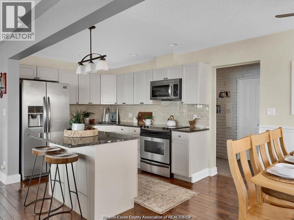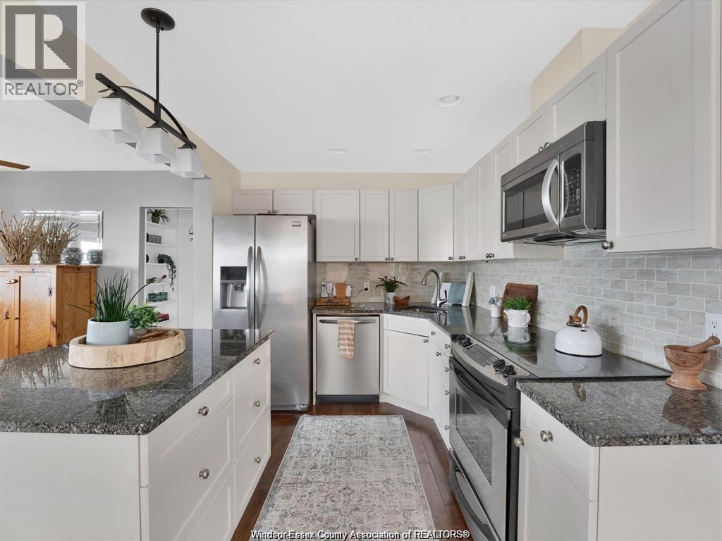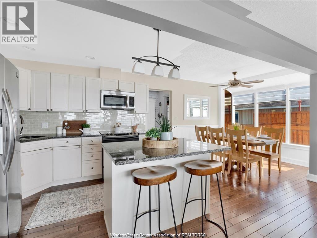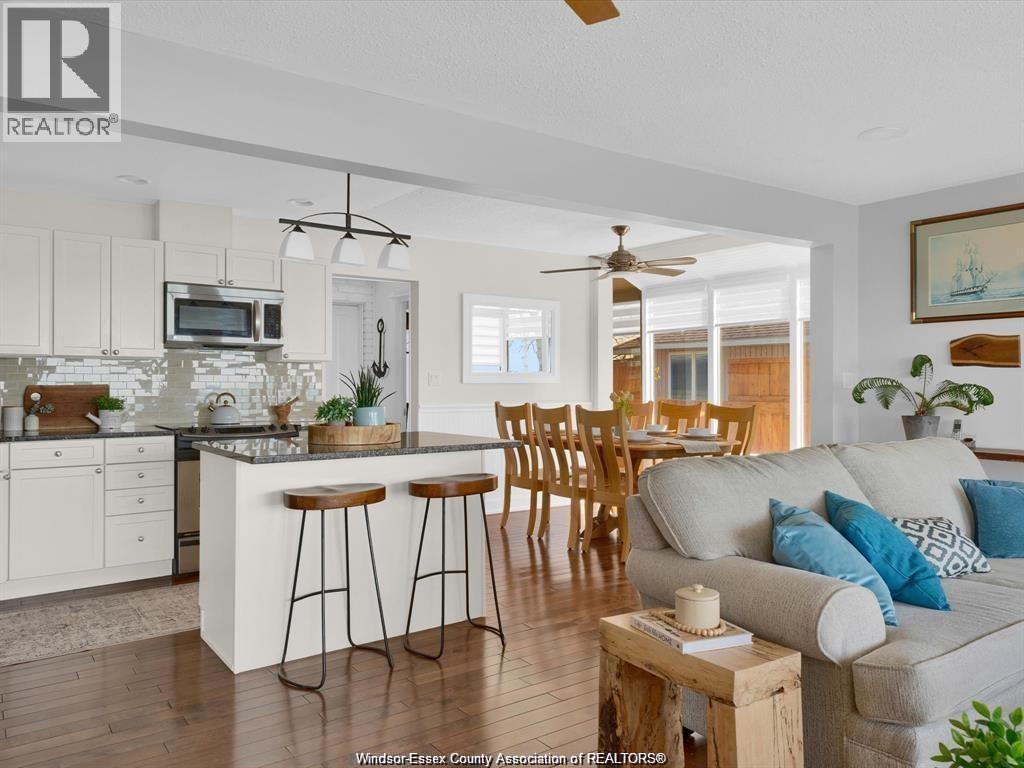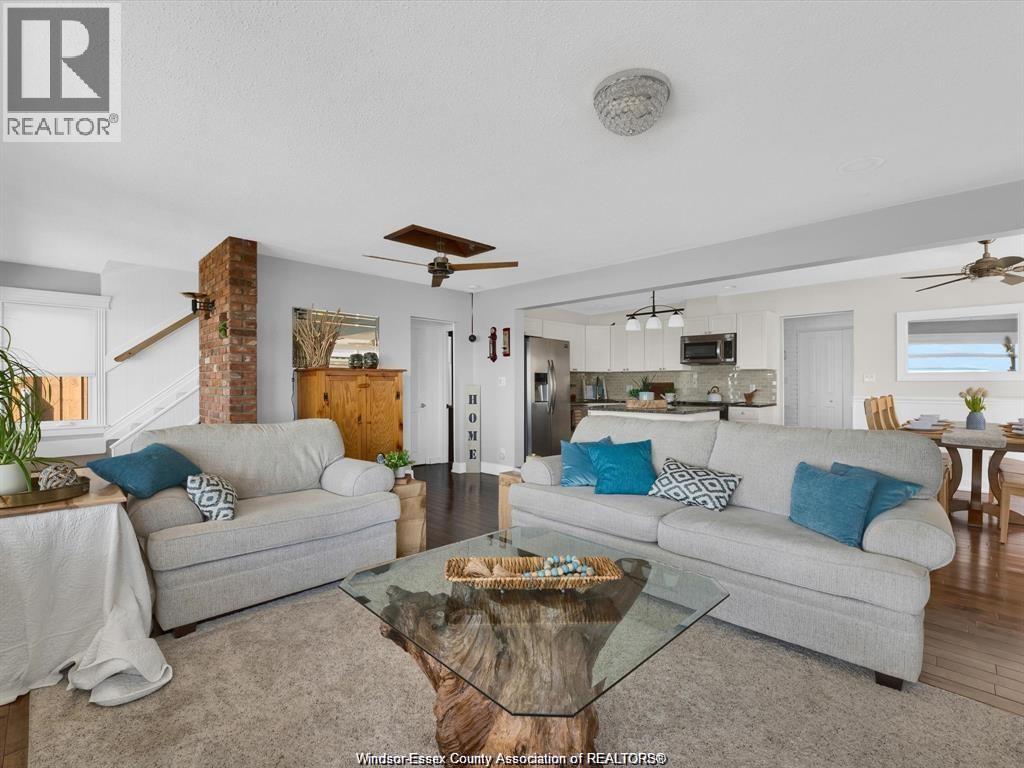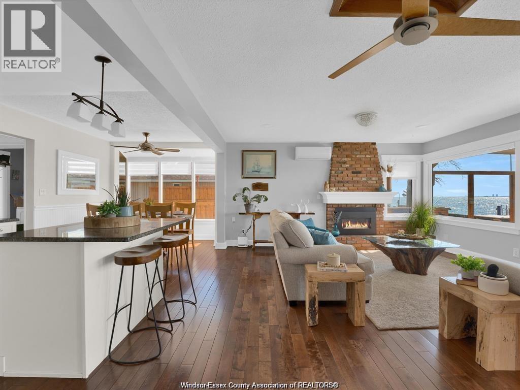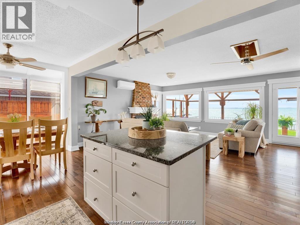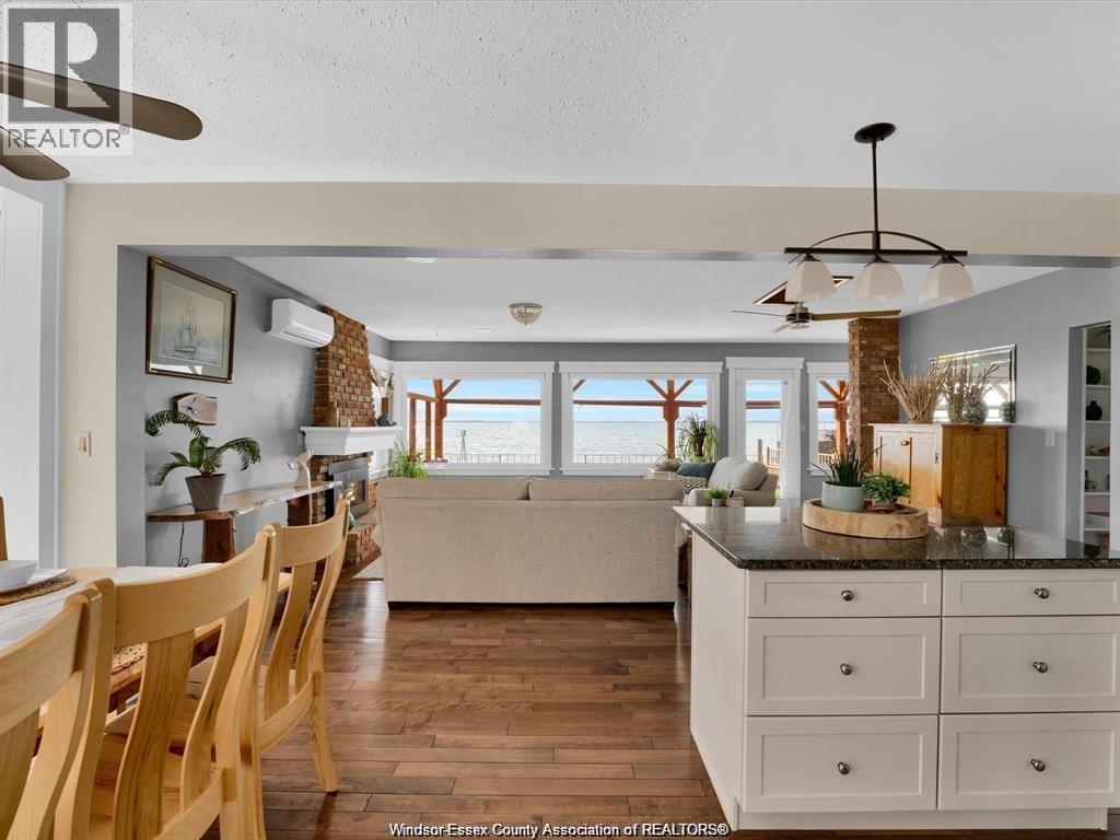 Welcome to 39 Woodbridge! A beautifully renovated waterfront home with unobstructed views where Lake Erie meets the start of the Detroit River. This bright, open concept main floor features a spacious kitchen with quartz countertops and a large centre island overlooking the dining area and living room with a gas fireplace. Patio doors lead to a covered porch with custom blinds, perfect for enjoying panoramic water views. The main floor also offers a versatile den, office nook, 3 piece bathroom, and updated laundry, with hardwood flooring throughout. The upper level features a generous primary bedroom with walk in closet and stunning waterfront views, a second bedroom, and an additional 3 piece bathroom. Enjoy the outdoor space with new decking, cement pad, private fencing, break wall, single car garage with carport, and parking for multiple vehicles. Updates include heat pumps (2021), fireplaces (2019), kitchen and main floor renovation (2017), windows (2021), fencing (2020), and upper level renovation (2018) (all approximate). Call for more info! (id:64974)