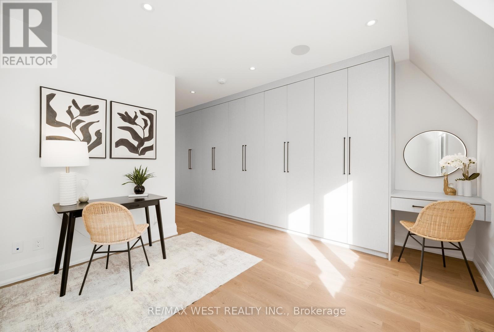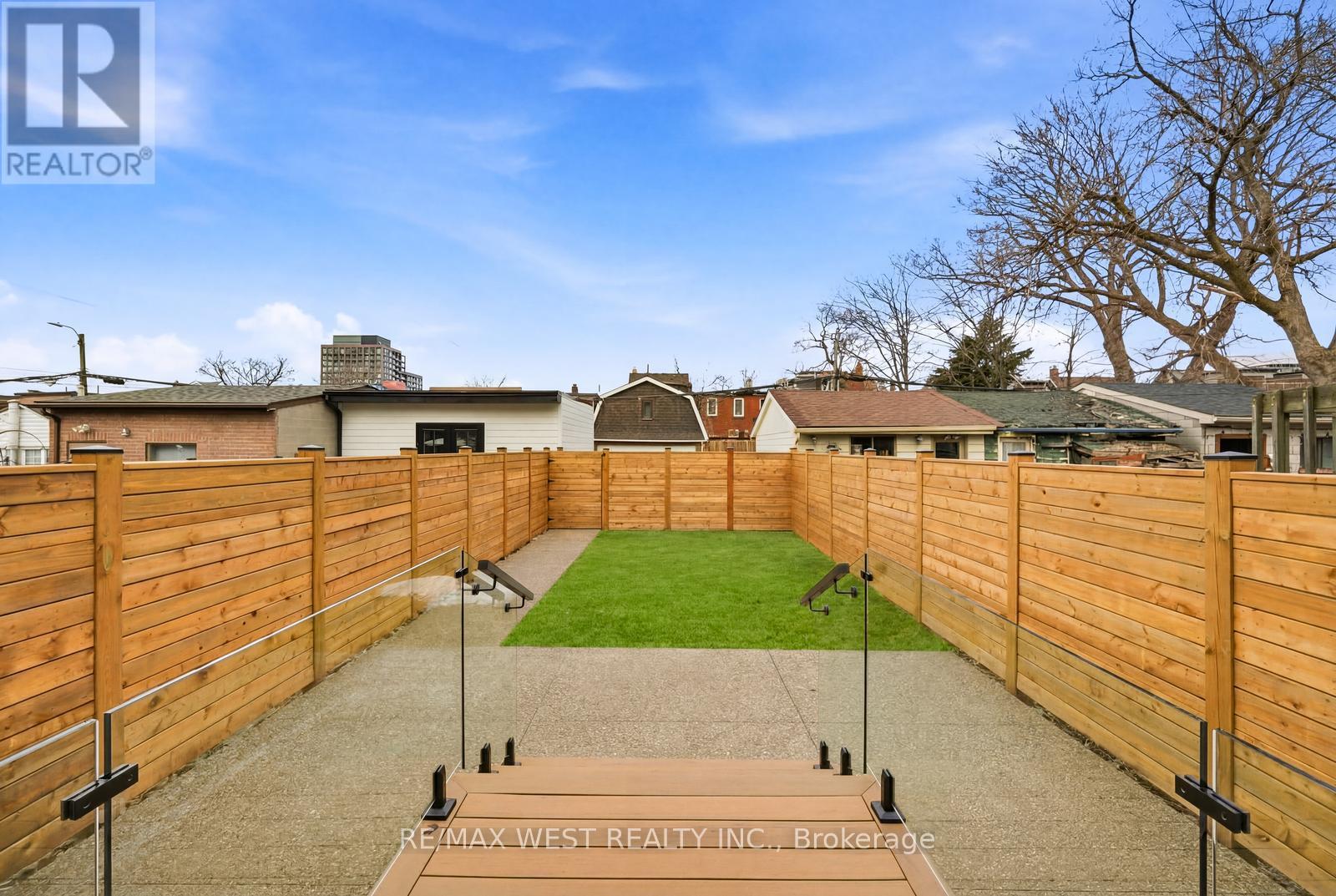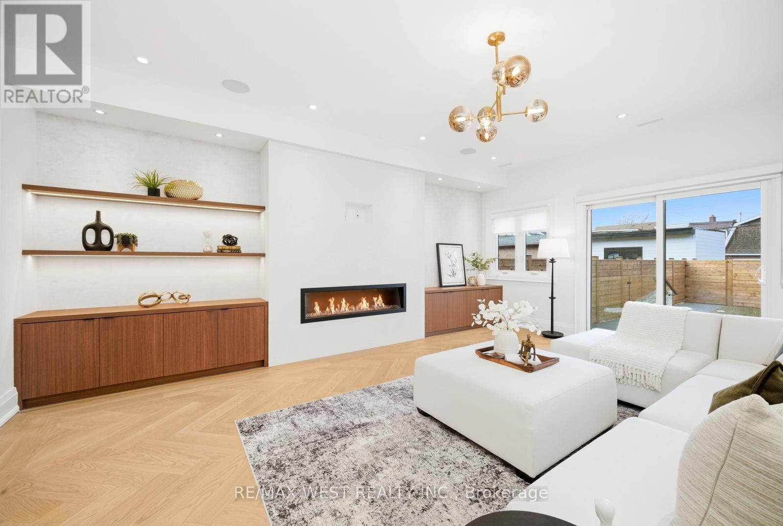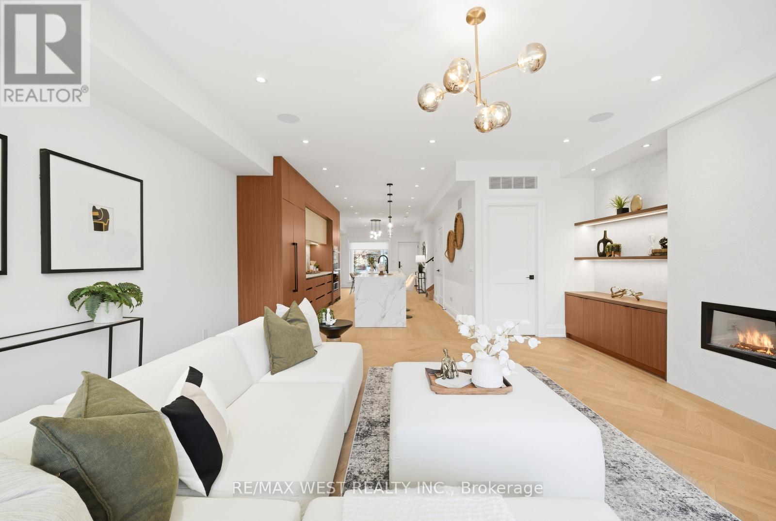 Spectacular State-Of-The-Art Detached Duplex Nestled Away On One Of The Most Prestigious Tree-Lined Streets South Of Bloor, Bespoke with Grandeur and Allure, consists of 3,517.11 sf at all levels. Upper 3 Levels offer 2,855.45 sf, While Lower Level Adds 661.66 sf of Luxury. Loaded with Custom Features Thru-Out. Easy, Simple & Cost-Effective To Convert To Single-Family W Roughed-In Header At Front Entry Interior Wall. Highlighting 9 Ft Ceilings On Mn, 8'6" On 2nd & 3rd, Plus 8'2" Bsmt Height W Sun-Filled Oversized Windows. Luxury Elevated W Transitional Sleek Cabinetry, Custom 'Grigio Statuario Drift' Counters, Stainless & Panelled Appliances Incl Gas Range, B/I Oven, Oversized Island W B-fast Seating. Exceptional Functionality W Open Layout, High-End Lighting & Plumbing Fixtures, 14 Speakers Thru-Out, Spray Foam Insulation , Toto Toilets, Smth Ceils & Pot Lights Galore. Main Flr Features Spacious Living, Linear Cstm Fireplace & Sun-Filled Dining W W/O To Deck & Backyard Oasis W Contemporary Linear Fencing. Upper Level Reveal Unmatched Size & Quality W High-End Finishes, 3 Generous Bdrms, 4-Pc Bath & Zen-Insprd 3-Pc Ensuite W Glass Shwr, Lrge Wndws, W/O To Sun-Filled Deck & Highly Functional 2nd-Fl Lndry W Ample Cnter Space.3rd Floor Hosts An Ultra-Prvte Oversized Dream Retreat Primary Bdrm W Spa-Like 5-Pc Ensuite Featuring Glass Shower, Free-Standing Tub, Heated Flrs, Heated Toilet Seat, Dual Sinks, Extensive Clsd Storage, W/O To Sun-Filled Deck & Cstm Built-Ins W Make-Up/Vanity Area.Bsmt Features High Ceils, Modern Ktchn W B-splsh, Rec Rm, 4-Pc Bth,, Lrge Wndws, W Its Own Sep Entrance & Laundry. Exterior Enhanced W Newer Sleek Landscaping Backyard Setup. Double Car Laneway W Potential For Future Laneway Ste. Prime Location W Top Walk Score-Steps To Transit, Close To Subway, Schools, Parks & Mins To Shops On Bloor & Roncesvalles. (id:64974)