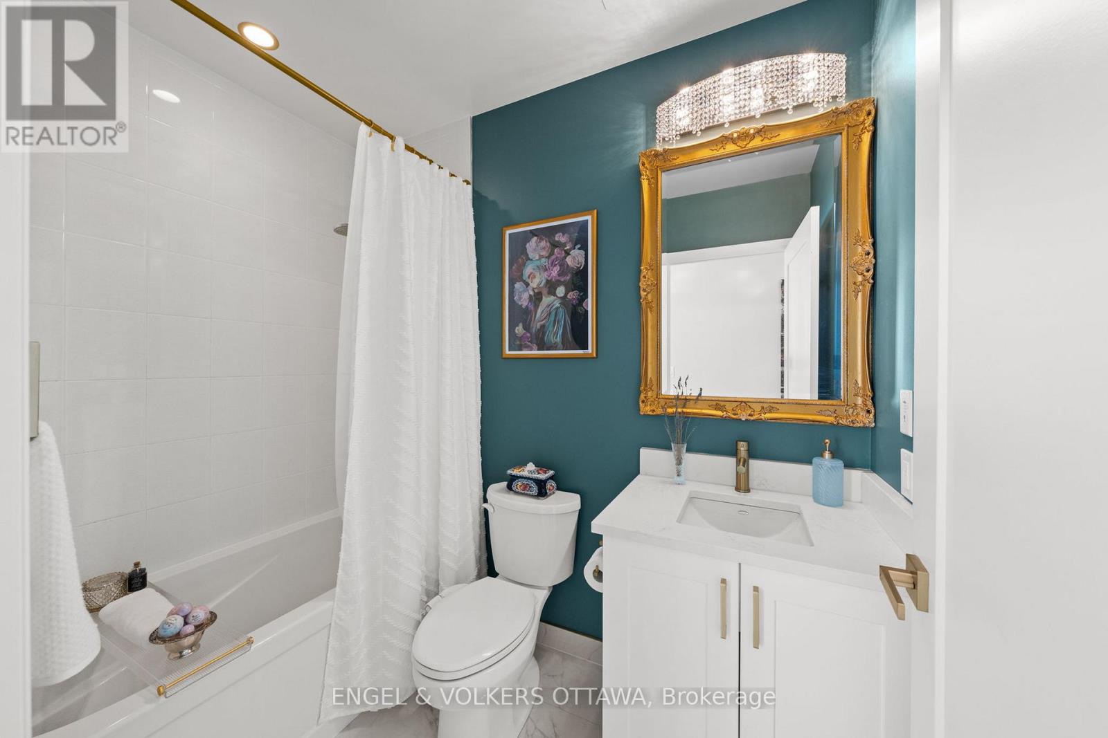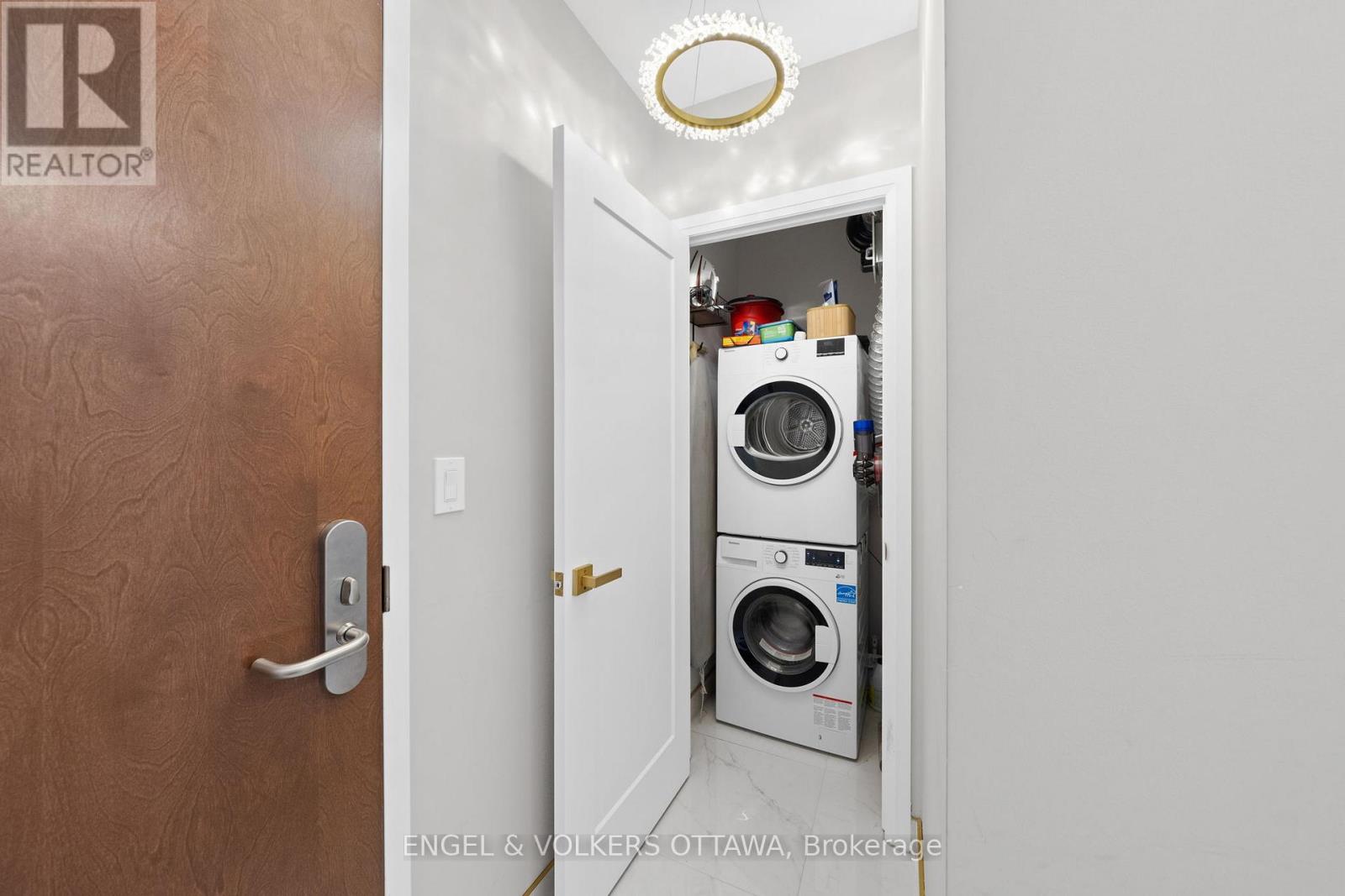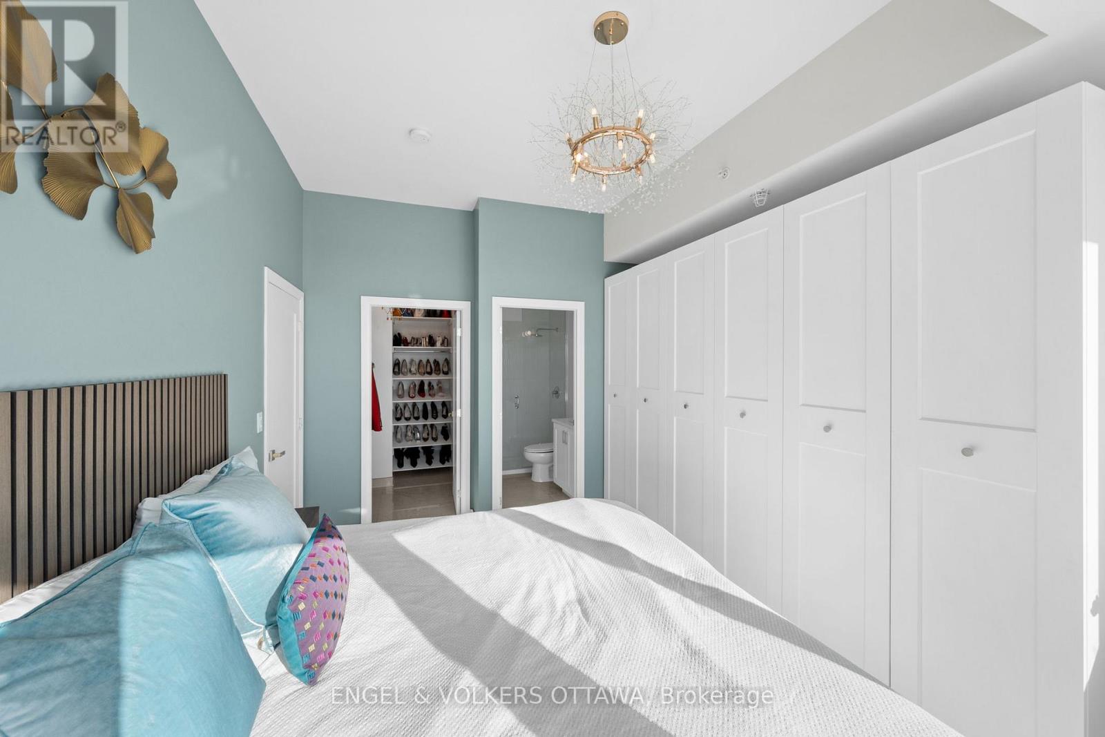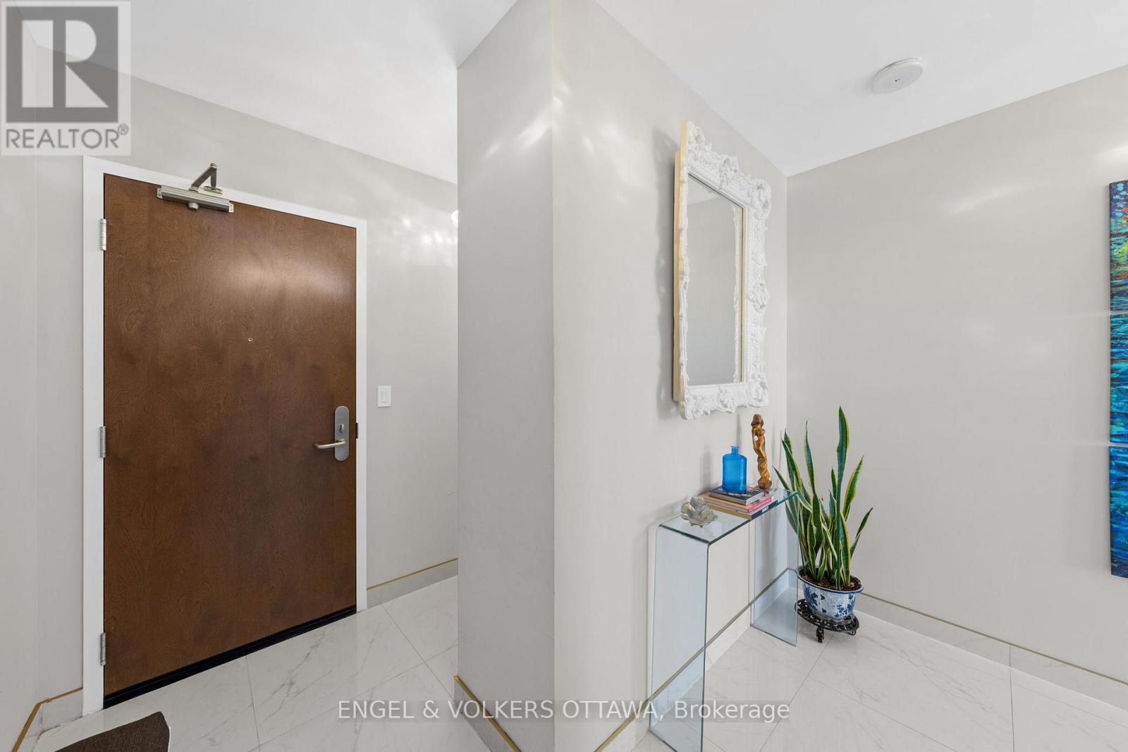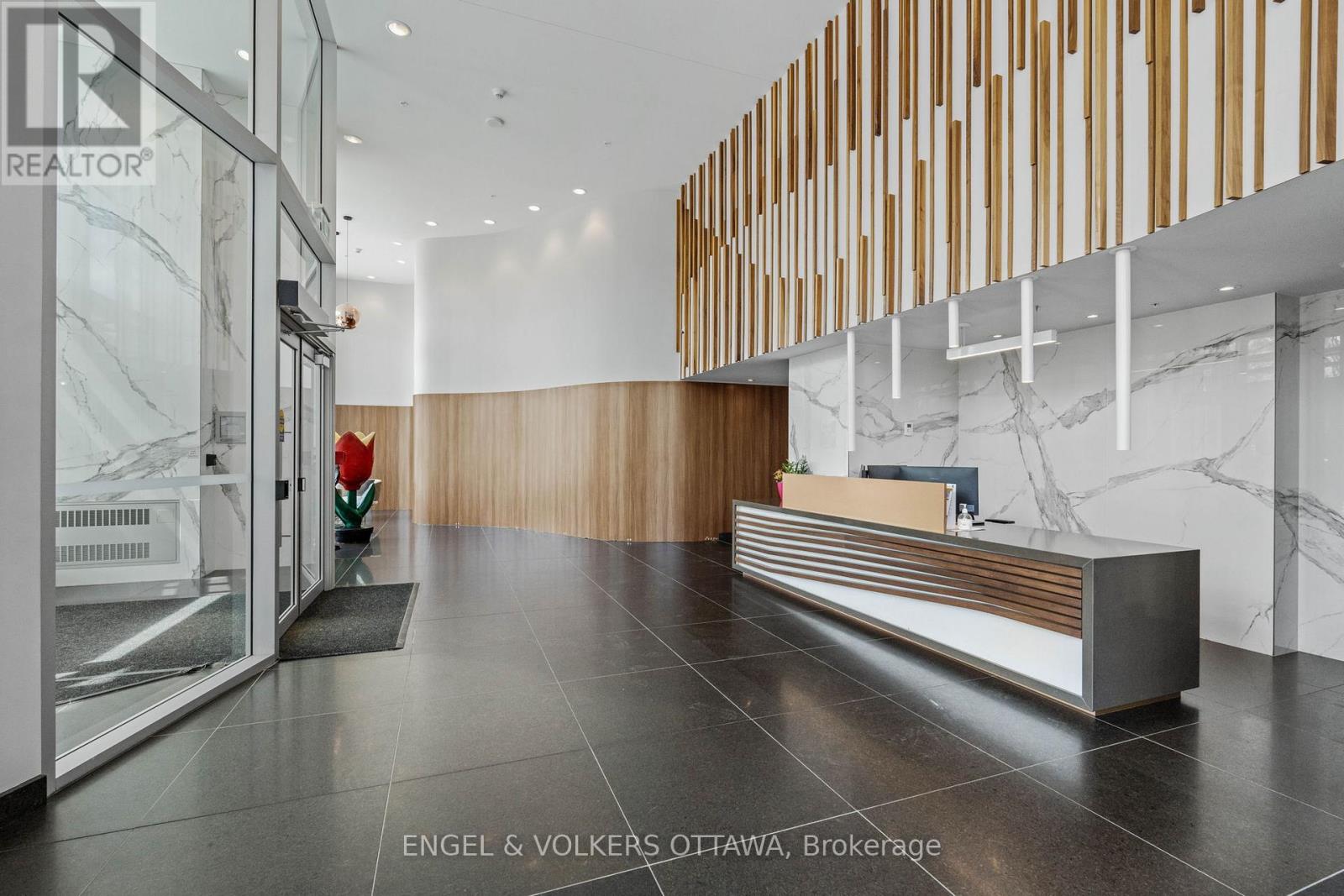 A SKY RESIDENCE ABOVE IT ALL. Perched high above Little Italy in The Icon, this beautiful 1,160 sq.ft. 2-bedroom, 2-bath condo captures breathtaking panoramic views from the Gatineau Hills across Dow's Lake and beyond, with spectacular light from sunrise to sunset. 3 private balconies extend from the principal rooms, creating a sense of openness. Recently reimagined with exquisite porcelain flooring, the interior feels sophisticated and entirely bespoke. A dramatic marble-inspired feature wall anchors the living space, paired with a sleek contemporary fireplace that introduces warmth and striking visual impact. Two imported statement chandeliers bring sculptural elegance and unmistakable glamour. Brushed gold detailing is integrated throughout the main living areas, from custom baseboard trim to upgraded faucets, hardware and kitchen sink, creating an elevated aesthetic. The kitchen is sleek with quartz surfaces and stainless-steel appliances. The primary suite offers a serene retreat with a beautifully designed walk-in closet and an elegant ensuite featuring a glass shower. A well-proportioned second bedroom provides flexibility for guests or a sophisticated home office. A beautifully appointed main 4-piece bathroom completes the home, finished with refined materials and a clean, timeless aesthetic. Electronic sun and heat screens and blackout blinds offer comfort and privacy at the touch of a button. In-unit laundry adds everyday convenience. Included is one of the building's most desirable three-sided parking spaces with two storage units. Life at The Icon places you moments from Dow's Lake, the Rideau Canal, and the restaurants of Little Italy. With a pool, sauna, gym, theatre, and guest suites. The Icon delivers an amenity-rich lifestyle with the feel of an urban resort. An exceptional opportunity to own a meticulously upgraded residence in one of Ottawa's most dynamic neighbourhoods. This is elevated living: Architectural. Intentional. Unforgettable. (id:64974)