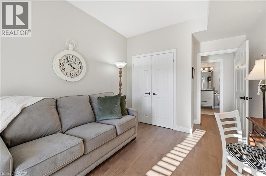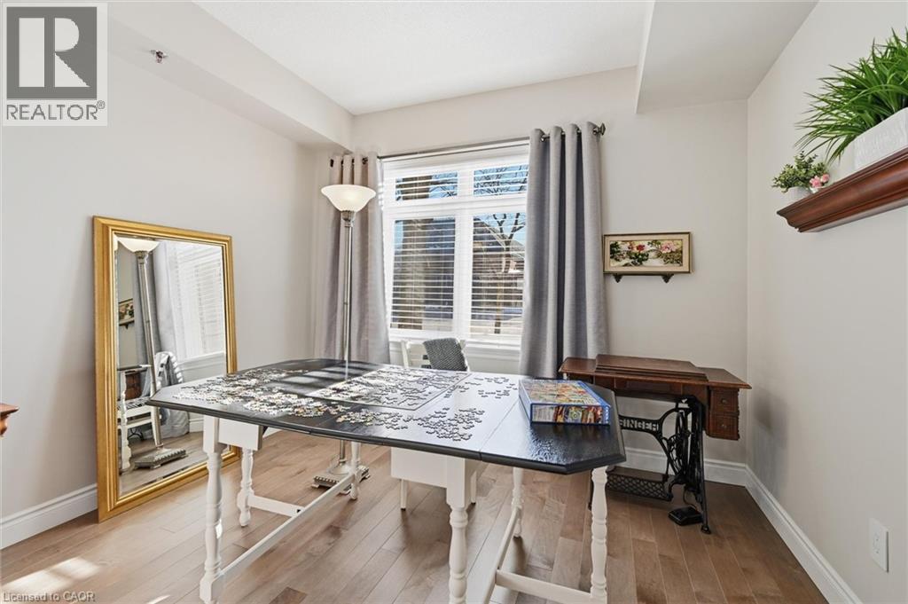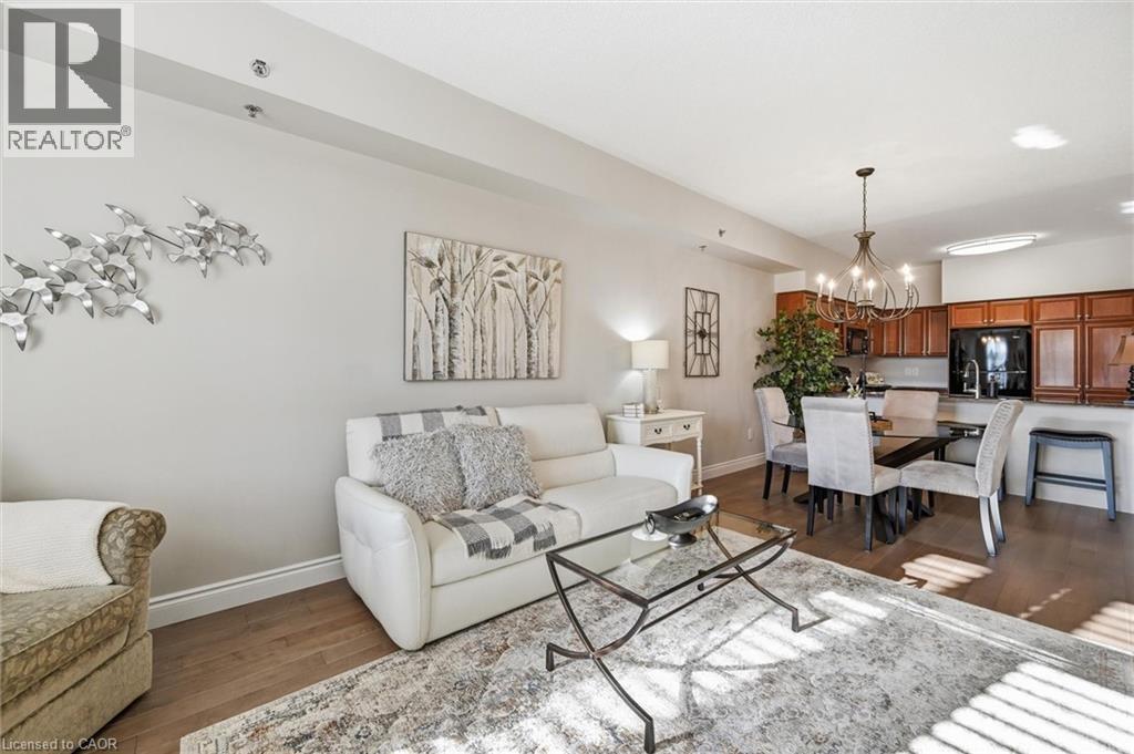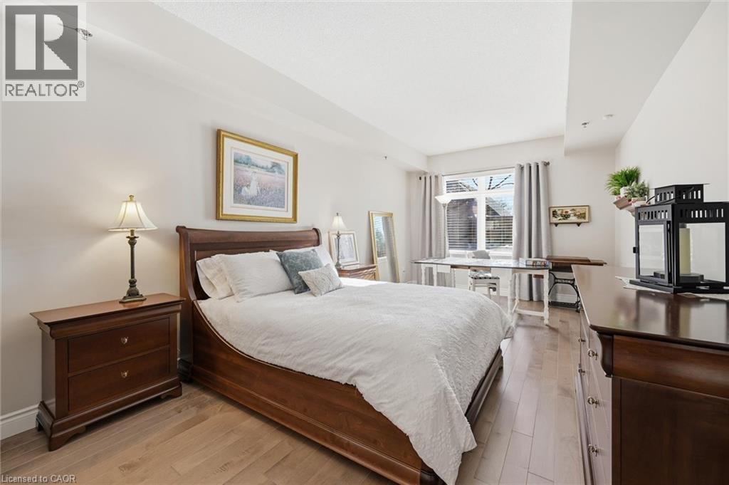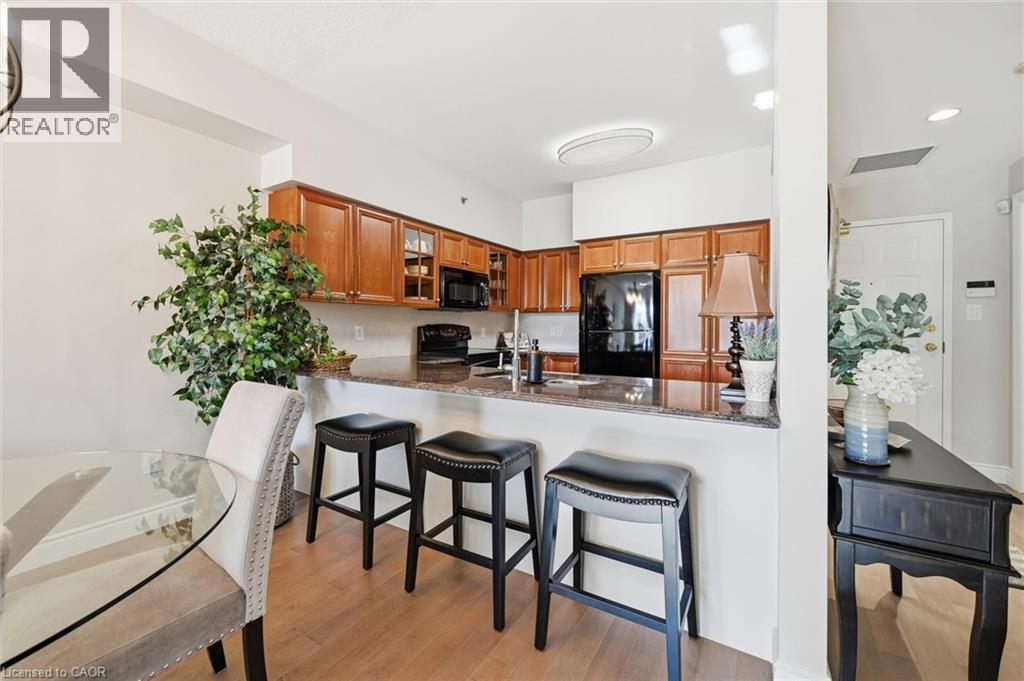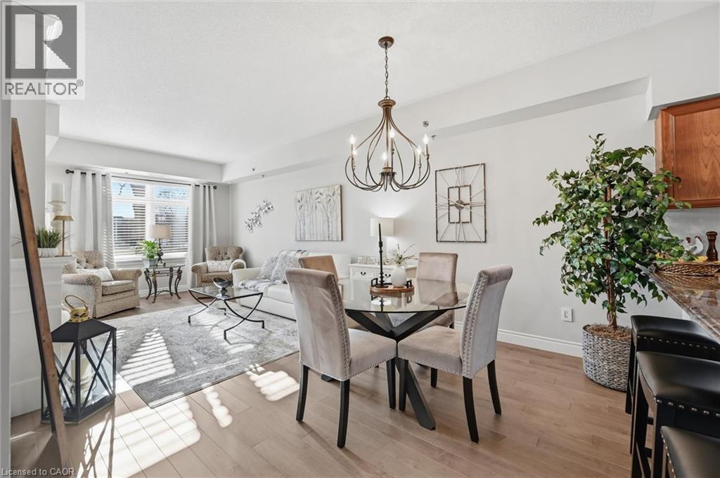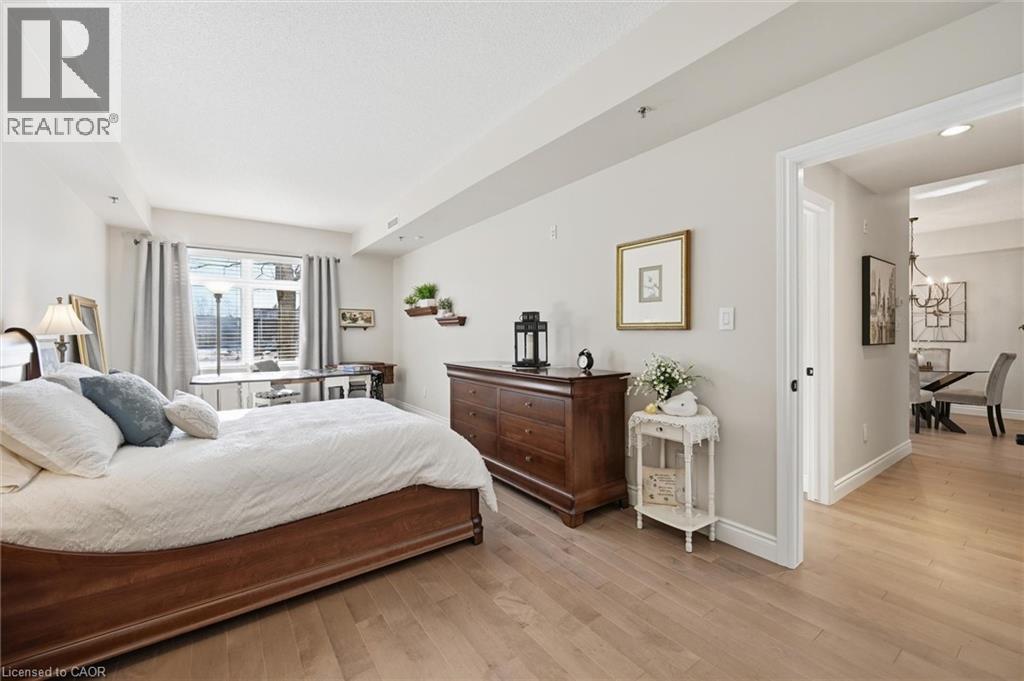 Beautifully updated 2 Bedroom, 2 Bathroom ground floor suite in The Dovercourt offering 1,186 sq ft of bright, functional living space with a private west facing terrace. This thoughtfully upgraded unit features new maple engineered hardwood flooring throughout, upgraded baseboards, modern black door hardware & a sleek electric fireplace with custom mantle. Fresh neutral paint throughout creates a clean, modern feel. The kitchen offers granite counters, upgraded lighting & generous cabinetry including a large pantry with custom pullout drawers designed for maximum organization and ease of access. The open concept living & dining area is filled with natural light from oversized west facing windows & walks out to a private terrace, perfect for relaxing or entertaining. Designed with comfort & ease in mind, the unit features 32 inch doorways & a spacious layout that allows for excellent flow throughout. Thoughtful storage has been incorporated into every closet, maximizing functionality without sacrificing space. A separate laundry room adds rare convenience along with additional storage, a feature not often found in condo living. The main bathroom has been updated with a new vanity & refreshed jetted tub, while the primary bedroom offers excellent closet space, a private ensuite & plenty of room for your favourite hobby, whether it’s puzzles, sewing, or a serene space for your morning yoga. Includes 2 parking spaces and 1 storage locker. One above ground parking space is ideal for quick trips or overnight guests. The second underground space is conveniently located close to the elevator with a 4ft x 9ft locker directly behind it for convenient everyday access. Well maintained low rise building in a prime Burlington location close to the GO Station, QEW, Royal Botanical Gardens, Burlington Golf & Country Club & everyday amenities. An exceptional opportunity for those seeking space, privacy, accessibility & convenience in a sought after community. (id:64974)