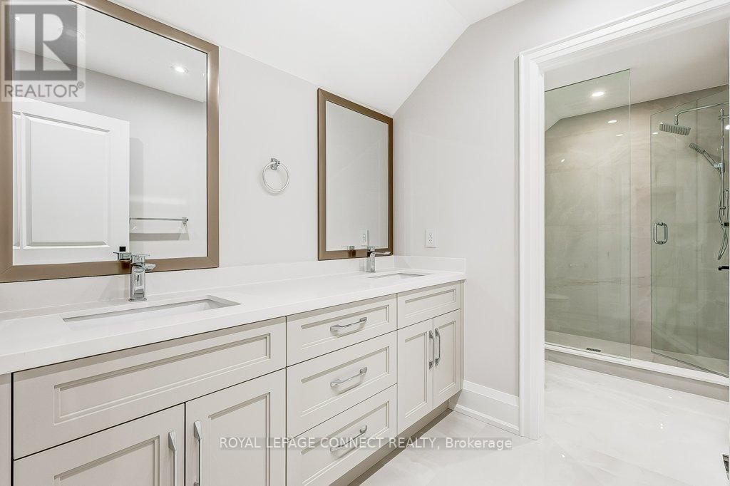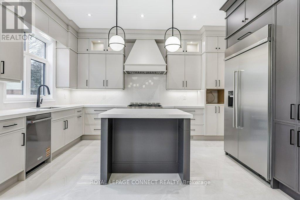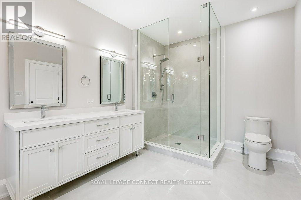 Designed for long-term family living, 393 Rosebank is a newly completed residence by Highglen Homes, a provincially registered builder with over 35 years of experience, including 20 custom homes completed across Pickering since 2010. Backed by a full 7-year Tarion warranty, this home offers buyer confidence and enduring value. With 4,251 sq. ft. of above-grade living space plus 956 sq. ft. of finished basement, this 5+1 bedroom home includes a lower-level in-law or nanny suite, well suited for multi generational households, extended family, or guests. The layout is efficient and well balanced, with a thoughtfully designed floor plan and generously sized bedrooms. The main floor is bright & open, with predominantly 10' ceilings & a layout designed for everyday comfort & entertaining. Finishes include herringbone hardwood flooring, solid wood casings around doors & windows, extra-tall solid wood baseboards, custom built-in storage, & upgraded lighting. Featuring chefs kitchen with large breakfast area & walk-out to rear yard, as well as an attached servery & plenty of storage with walk-in pantry. The dining space easily accommodates a full-size dining table. The second floor features a spacious primary bedroom with two walk-in closets fitted with custom millwork & soft-close drawers, & a 5-piece ensuite. Two additional bedrooms on this level each include a walk-in closet & private ensuite, along with the second-floor laundry. The third level offers two large rooms, both with walk-in closets & a shared bathroom, well suited as bedrooms, flexible living space, or dedicated a home office. Ceiling heights remain generous throughout, with 9' ceilings on the second floor & 8' ceilings on the third. Floor plans, appliance list, & a full features sheet are available. Measurements are based on plans & subject to construction variances. Taxes not yet assessed. (id:64974)