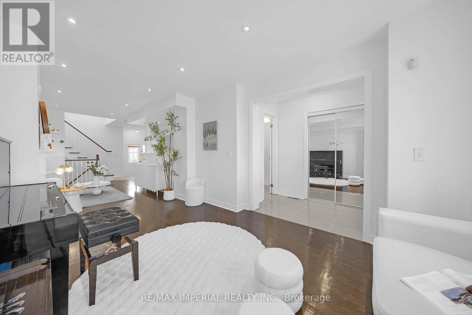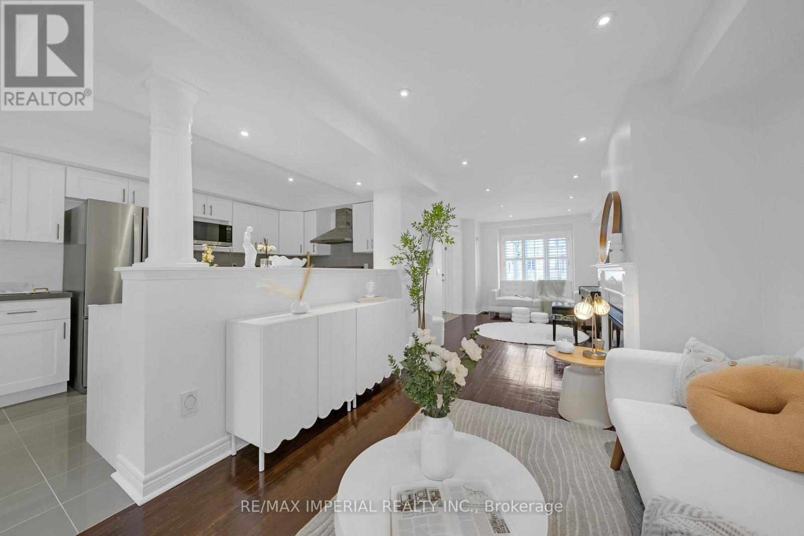 Welcome to Berczy Village - one of Markham's most sought-after neighbourhoods. Within minutes, you'll find restaurants, supermarkets, Markville Mall, and easy access to both Highway 404 and 407. Parks throughout the community make it ideal for families. Top-ranked schools include Stonebridge P.S. (Fraser Score 9.1, Rank #97) and Pierre Elliott Trudeau H.S. (Fraser Score 9.5, Rank #6). The open-concept main floor seamlessly connects the living and family rooms, anchored by a cozy gas fireplace. The upgraded kitchen features quartz countertops, an extended island, full backsplash, newer appliances, and a sight line to the backyard - perfect for keeping an eye on the kids. Pot lights throughout. Fresh paint on both levels. Direct garage access. Three bedrooms and four bathrooms across a well-laid-out floor plan suited for growing families and entry-level buyers alike. The fully finished basement adds valuable living space, complete with a new laundry room. A turnkey home in a community that truly has it all. (id:64974)