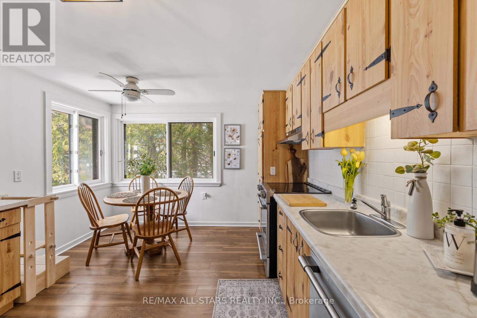 A rare opportunity to own a waterfront escape on beautiful Four Mile Lake. This unique property features a year-round 3-bedroom, 2-bath home with an attached yet self-contained 3-bedroom, 1-bath cottage-ideal for extended family, guests, or added rental income.Turn the key and step inside to bright, refreshed interiors designed for effortless, year-round living. Every space is thoughtfully updated to offer comfort, functionality, and a true lakeside feel. Outdoors, enjoy a prime stretch of crystal-clear shoreline with a sandy, rock-bottom entry and shallow, wade-in access-perfect for swimming, relaxing, and making lasting family memories at the water's edge. Western exposure provides breathtaking sunset views over wide, open water, creating a stunning backdrop from afternoon into evening. Ideally located just 30 minutes to hospital and urgent care, and approximately 1.5 hours from the GTA, offering the perfect blend of peaceful waterfront living and convenient access to amenities. Notable updated kitchens, flooring, fresh paint (2021/2022), and new appliances (2024). A must see property. (id:64974)