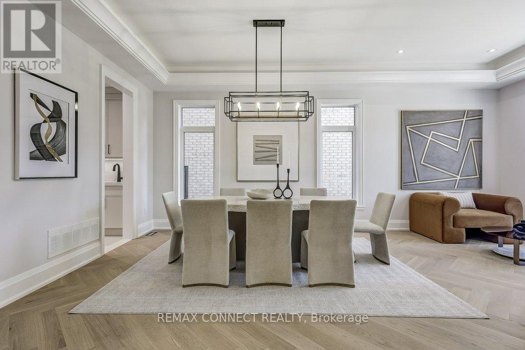 NOW READY TO MOVE IN! Be the first to live in this brand new custom home built by Award Winning Highglen Homes -over 35 years in the business! This 5+1 bedroom home, with lower level in-law suite, comes with a full 7-year Tarion warranty from a provincially registered builder. Buy with confidence! This double car garage home spans 4,251 square feet of above grade living space & 956 square feet of finished basement. An open concept design built with quality craftsmanship, the details throughout this home show the experience of the builder: upgraded lighting package, custom built-in storage, herringbone on the main floor, solid wood door & window casings, as well as solid wood extra tall baseboards. Predominantly 10' ceilings on the main floor, 9' on the second, and 8'on the third. Featuring chefs kitchen and appliance package with large breakfast area and walk-out to rear yard, as well as an attached servery and walk-in pantry. Large, combined dining/living room comfortably seats an 8-person dining table if desired. There are a total of 5 bedrooms upstairs, where the 2nd level has the primary bedroom with 2x walk-in closets, each complete with custom built-in millwork and soft close drawers, and a 5pc ensuite bath along with 2 additional bedrooms, each with their own walk-in closet and ensuite, as well as the 2nd floor laundry. The third floor comes with 2 more generously sized bedrooms with their own walk-in closets and shared bathroom. Check out the attached floor plans, appliance package, and complete features list -- too many to list here. Measurements are based on plans and subject to construction variances. (id:64974)
