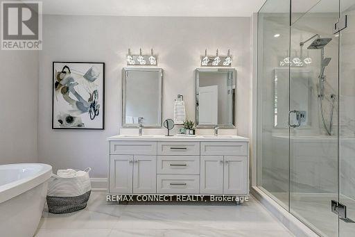 NOW READY TO MOVE IN! Be the first to live in this brand new custom home built by Award Winning Highglen Homes -over 35 years in the business! This 5+1 bedroom home, with lower level in-law suite, comes with a full 7-year Tarion warranty from a provincially registered builder. Buy with confidence! This double car garage home spans 4,251 square feet of above grade living space & 956 square feet of finished basement. An open concept design built with quality craftsmanship, the details throughout this home show the experience of the builder: upgraded lighting package, custom built-in storage, herringbone on the main floor, solid wood door & window casings, as well as solid wood extra tall baseboards. Predominantly 10' ceilings on the main floor, 9' on the second, and 8'on the third. Featuring chefs kitchen and appliance package with large breakfast area and walk-out to rear yard, as well as an attached servery and walk-in pantry. Large, combined dining/living room comfortably seats an 8-person dining table if desired. There are a total of 5 bedrooms upstairs, where the 2nd level has the primary bedroom with 2x walk-in closets, each complete with custom built-in millwork and soft close drawers, and a 5pc ensuite bath along with 2 additional bedrooms, each with their own walk-in closet and ensuite, as well as the 2nd floor laundry. The third floor comes with 2 more generously sized bedrooms with their own walk-in closets and shared bathroom. Check out the attached floor plans, appliance package, and complete features list -- too many to list here. Measurements are based on plans and subject to construction variances. (id:64974)