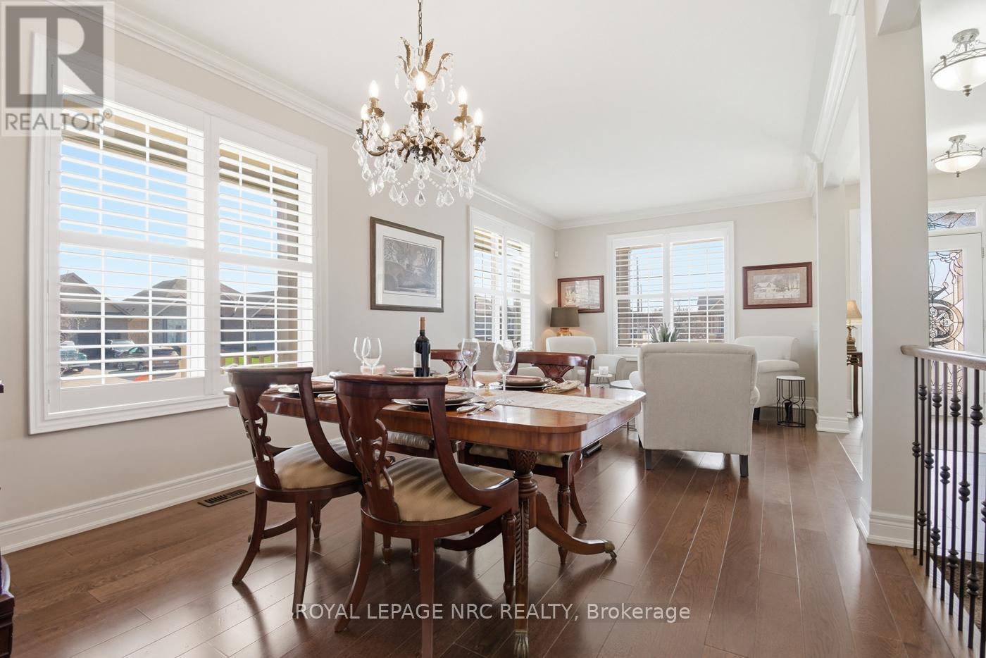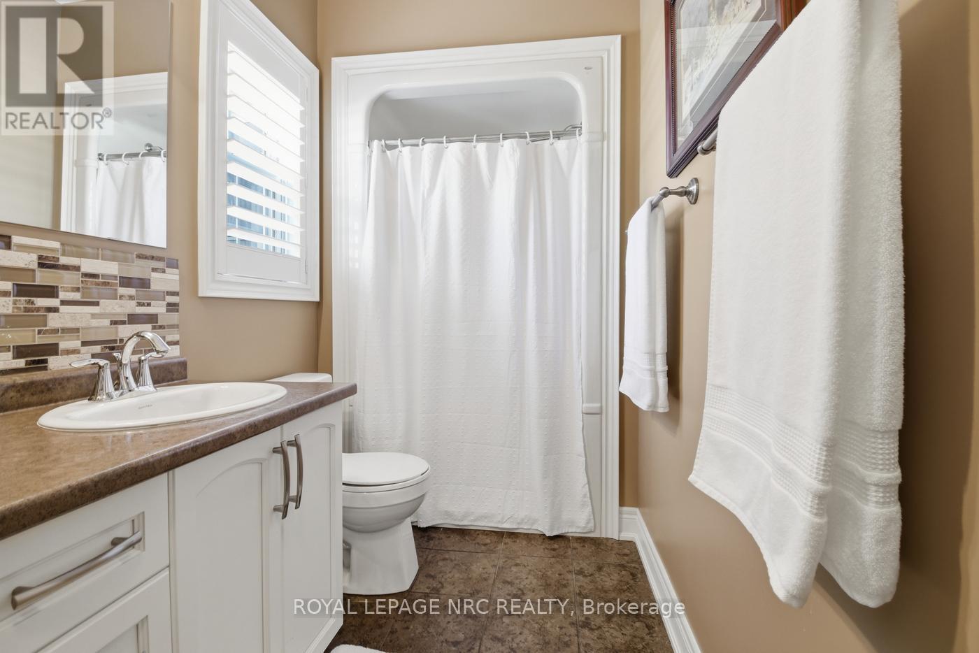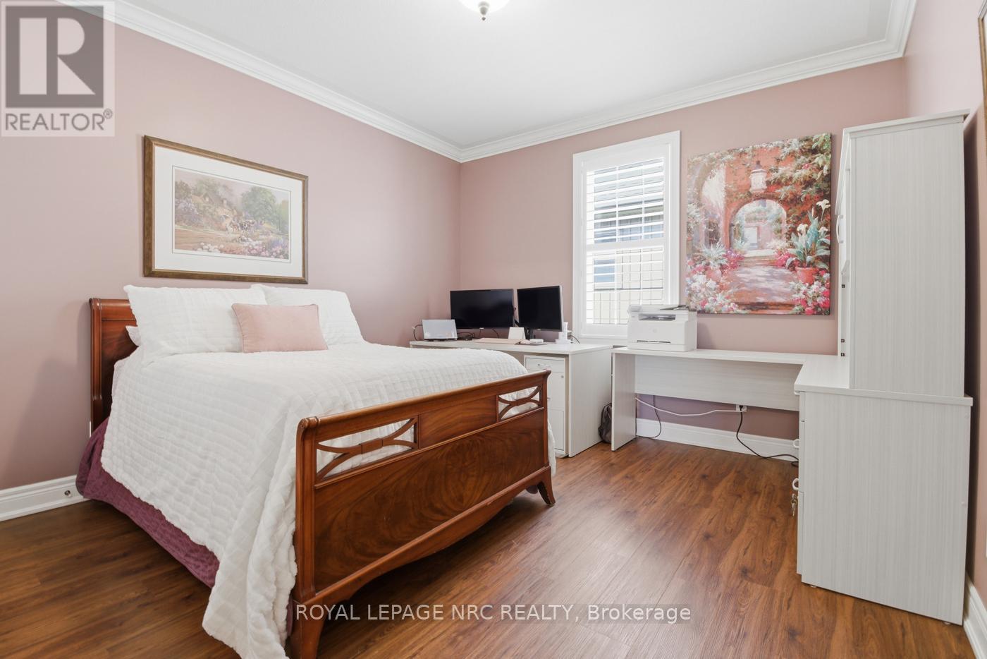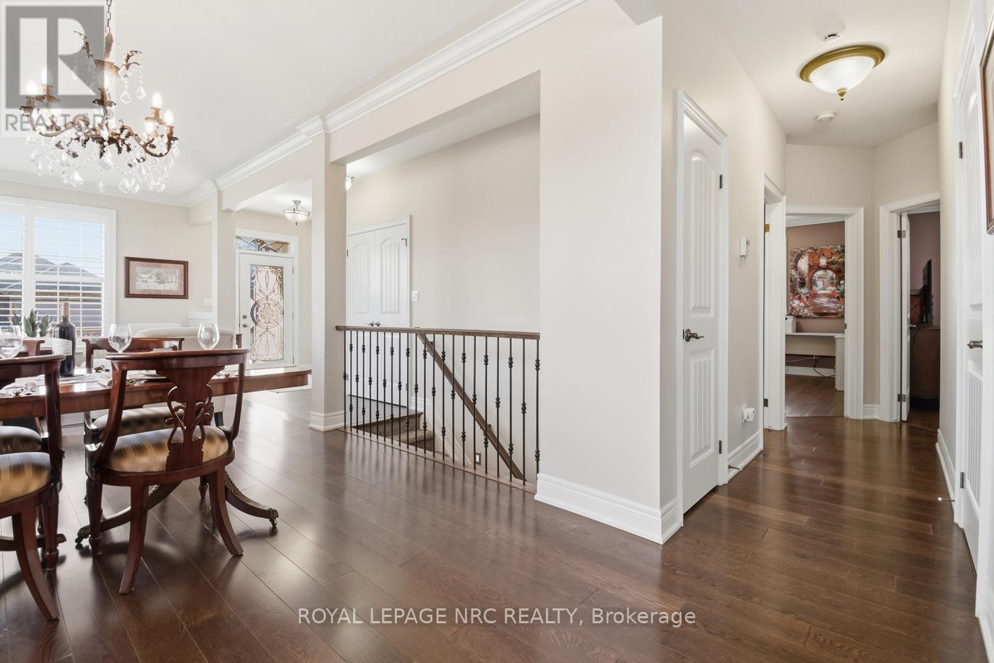 Prepare to be captivated by this stunning, professionally-appointed 3-bedroom, 3-bathroom bungalow, offering a truly luxurious and turnkey lifestyle.The main floor boasts high-end finishes, including exquisite crown molding, elegant engineered hardwood, and upgraded rod iron stair railings with integrated lighting. The magnificent chef's kitchen is a culinary dream, featuring a gas stove, large island, and a show-stopping illuminated 160-bottle wine fridge. Enjoy seamless indoor-outdoor living from the spectacular three-season sunroom (prewired for sound/TV, speakers/blinds included), which leads to a private, beautifully appointed rear yard sanctuary. This outdoor oasis features a hot tub area (with box, LED pathway lighting, and fire-retardant blankets) and a charming fire pit area for added ambiance. The main floor is completed by a primary suite with a walk-in closet and beautiful ensuite, a large second bedroom, a second four-piece bath, main floor laundry, and elegant California shutters throughout. Modern convenience is ensured with complete Ethernet jacks, an integrated cell signal booster, and an internet access point. The fully finished basement is an entertainer's dream, built on a dry core subfloor. It features a welcoming rec room pre-wired for 6.1 surround sound and a custom-built designer bar room with a full-size bar fridge and dimmer-controlled pot lights. The lower level also includes a third bedroom, a third bathroom, and a generous gym area, alongside tons of storage. The exterior offers professionally landscaped perennial gardens, a 6-zone app-remote irrigation system, an aggregate driveway, and an attached double car garage. Inclusions abound, such as a gas BBQ/bib, a large lion head garden urn, and professional lawn/fertilizer services paid for 2026. Close to walking trails, beaches, the casino, and wineries, this home delivers tranquility and entertaining at its best. This is more than a home; you are buying a lifestyle. Check out inclusions. (id:64974)