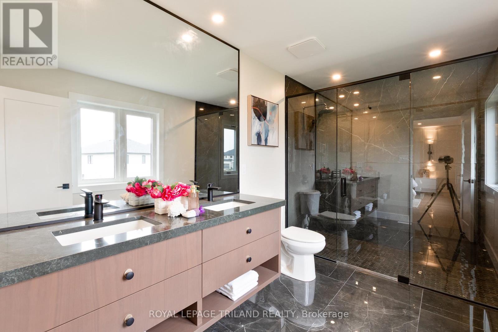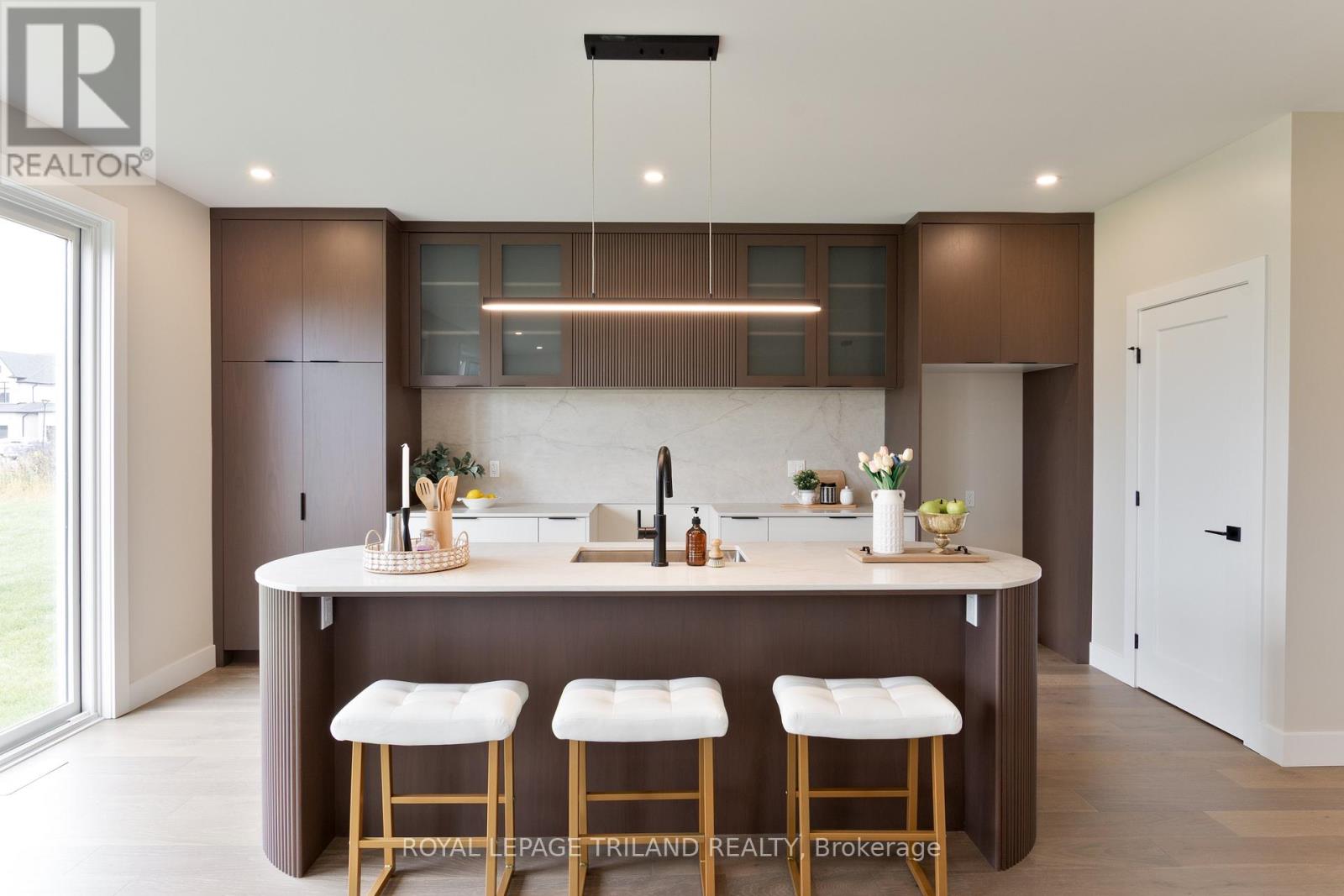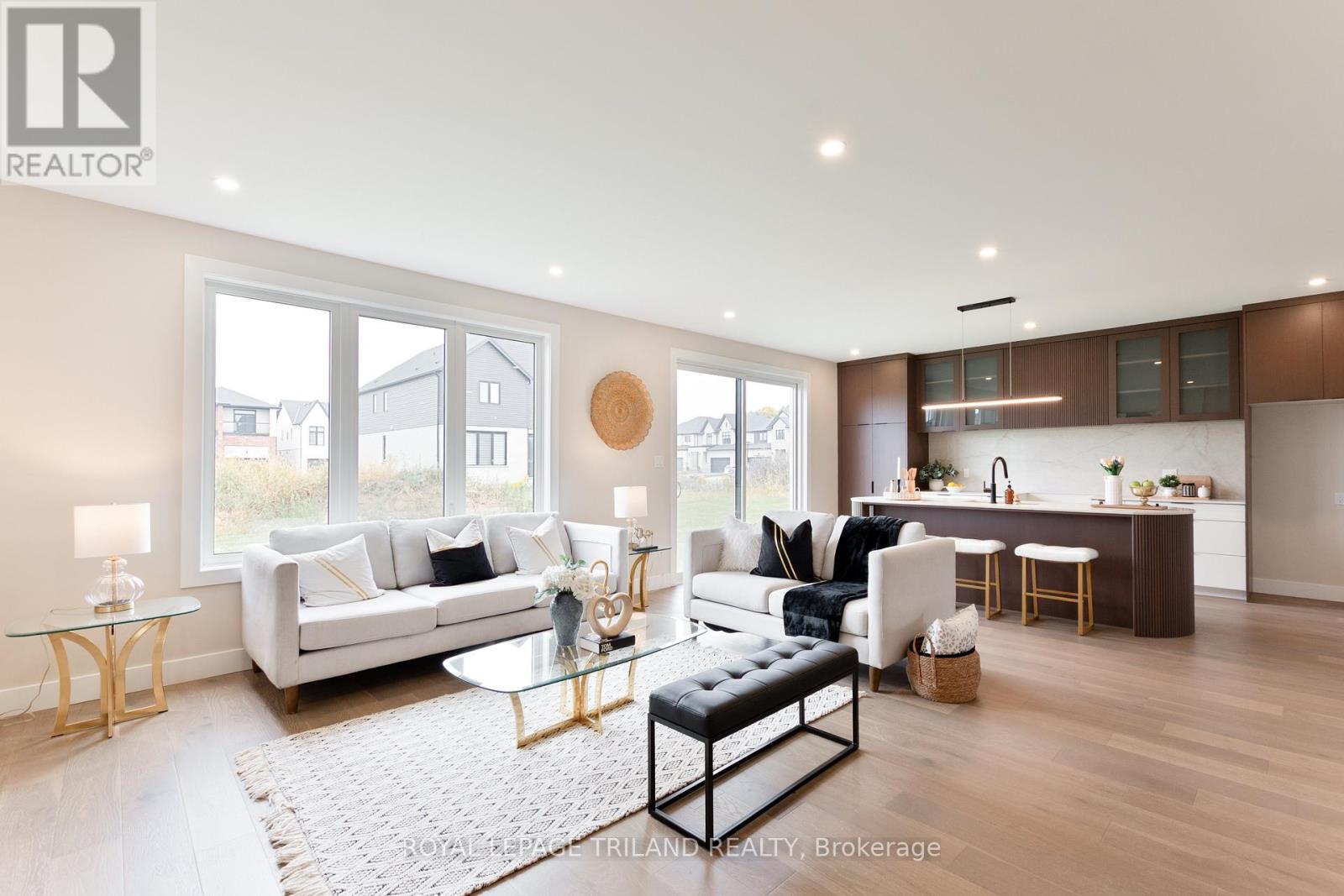 Introducing the newest MODEL HOME by Springfield Custom Homes, perfectly located in desirable South West London's Magnolia Fields community. This home showcases quality craftsmanship, thoughtful design, and modern elegance at every turn. Step inside and be greeted by the soaring double-volume ceilings in the front foyer, creating a bright and grand first impression. The home offers a functional 4-bedroom layout above grade, complete with 3 full bathrooms and a main floor powder room, making it perfect for families of all sizes. The main floor features a seamless flow with upgraded finishes throughout, including: Striking stone façade at the front - An upgraded, modern kitchen designed to impress -Carpet-free living with stylish, durable flooring - Spacious open-concept living and dining areas. The basement is roughed-in for a basement apartment, offering endless potential for an in-law suite, rental income, or additional family living space, ready for your personal touch. This property is the perfect blend of luxury, function, and future potential. Truly, you have to see it to appreciate it. (id:64974)