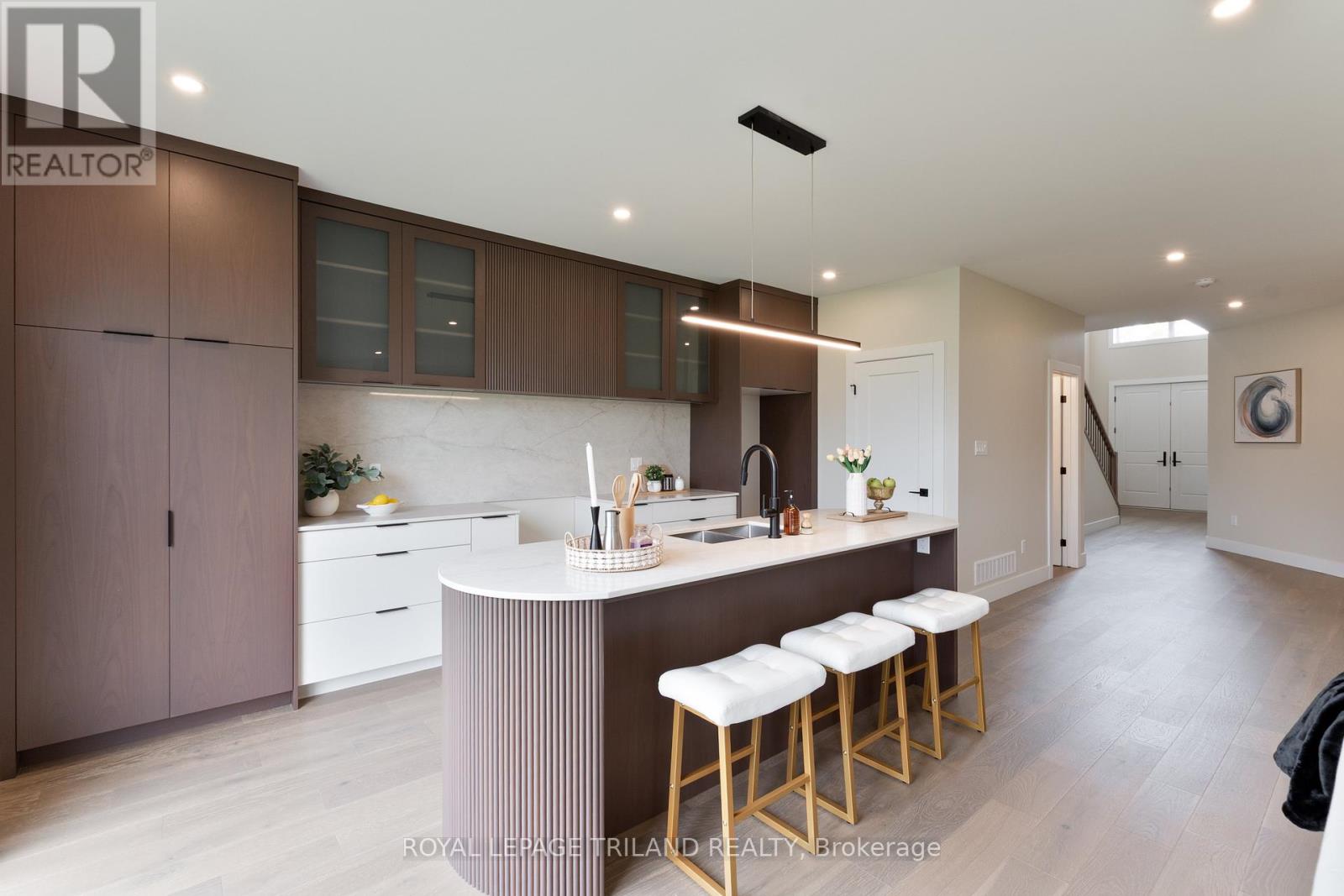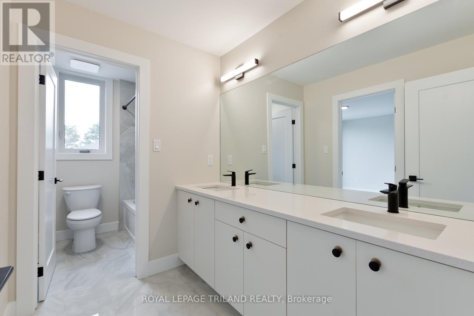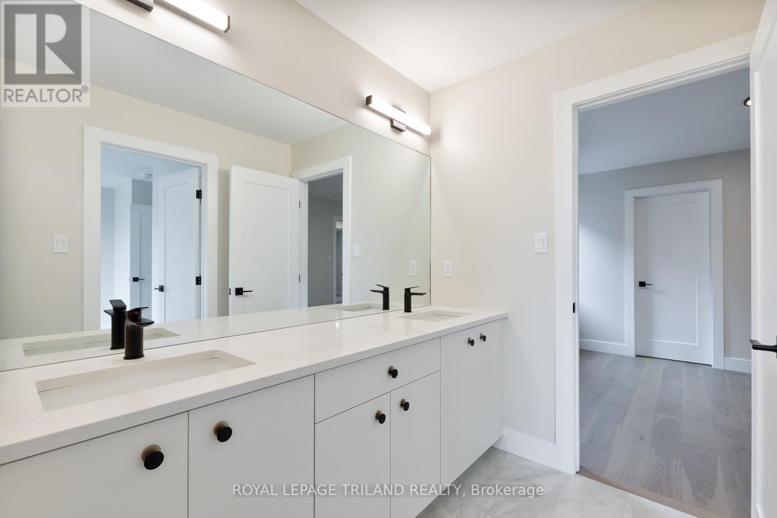 Introducing the newest MODEL HOME by Springfield Custom Homes, perfectly located in desirable South West London's Magnolia Fields community. This home showcases quality craftsmanship, thoughtful design, and modern elegance at every turn. Step inside and be greeted by the soaring double-volume ceilings in the front foyer, creating a bright and grand first impression. The home offers a functional 4-bedroom layout above grade, complete with 3 full bathrooms and a main floor powder room, making it perfect for families of all sizes. The main floor features a seamless flow with upgraded finishes throughout, including: Striking stone façade at the front - An upgraded, modern kitchen designed to impress -Carpet-free living with stylish, durable flooring - Spacious open-concept living and dining areas. The basement is roughed-in for a basement apartment, offering endless potential for an in-law suite, rental income, or additional family living space, ready for your personal touch. This property is the perfect blend of luxury, function, and future potential. Truly, you have to see it to appreciate it. (id:64974)