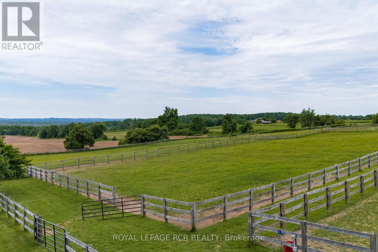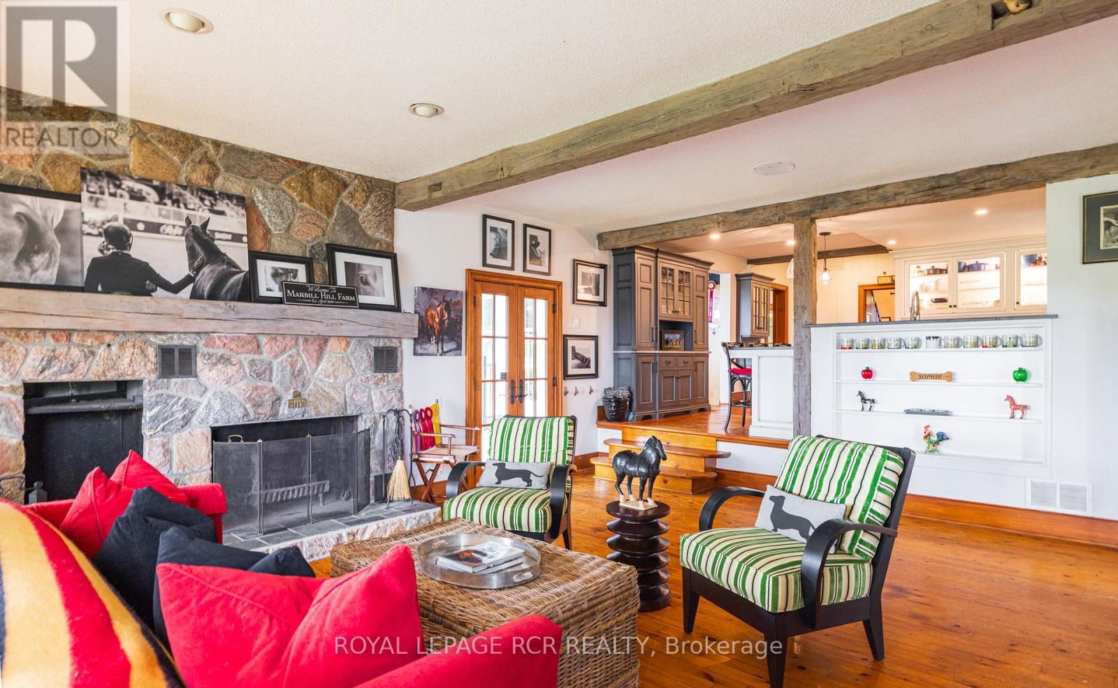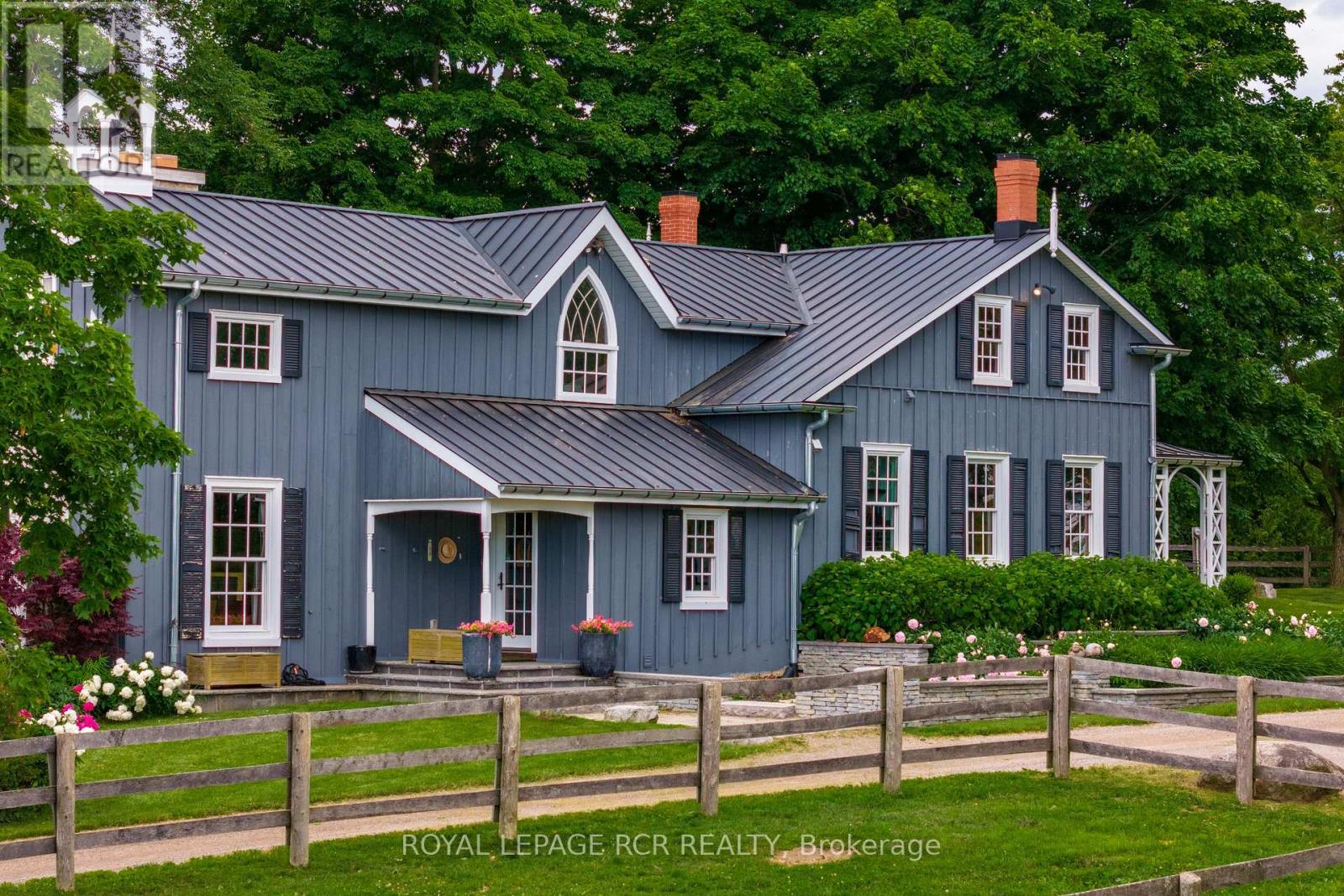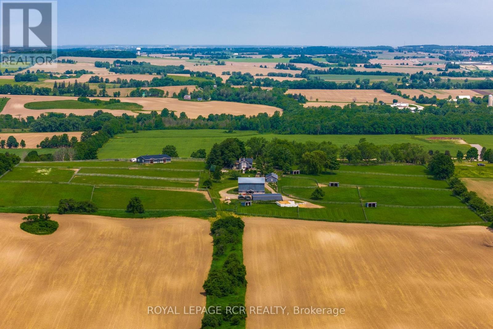 Nestled on 99 acres of countryside, this extraordinary estate offers a perfect blend of functionality, and natural beauty. Designed with the horse enthusiast in mind, this property boasts an elegant century home built in 1864, 3 barns and breathtaking landscapes from every sight line. Whether you're an equestrian, a hobbyist, or simply seeking a serene retreat, this estate has everything you need and more. From its sloping roof and inviting porch to its quaint shutters and whimsical details, the house exudes charm and character at every turn. Step inside, and you'll find a large stone fireplace, hardwood floors, and cozy nooks that invite you to relax and unwind. A beautifully designed main floor featuring high ceilings, hardwood floors, and custom finishes throughout. A chef's dream kitchen with soapstone countertops, top-of-the-line appliances, and a spacious island, perfect for entertaining. The main floor is complete with formal dining room, large living area, and an inviting family room with views from all angles. Upstairs features 3 bedrooms including a spacious primary suite with a private balcony, walk-in closets, and an ensuite bathroom with panoramic views from each window. Spanning across acres of paddocks, this horse farm boasts a meticulously designed layout that harmonizes with both the natural surroundings and the needs of its equine residents. Impeccably constructed stables equipped with modern amenities and spacious stalls, your horses will feel right at home. Ample oak board paddocks and lush pastures offer substantial space for your horses to roam, graze, and exercise freely. Located in a countryside setting yet just a short drive away from urban amenities, (Approx. 7km to grocery, restaurants and schools in Schomberg, and less than 10 minutes to Highway 400) this property offers the perfect balance of seclusion and convenience. **EXTRAS** Water lines to paddocks, buried 400 amp service ,new drilled well(2016),kitchen reno(2018). (id:64974)