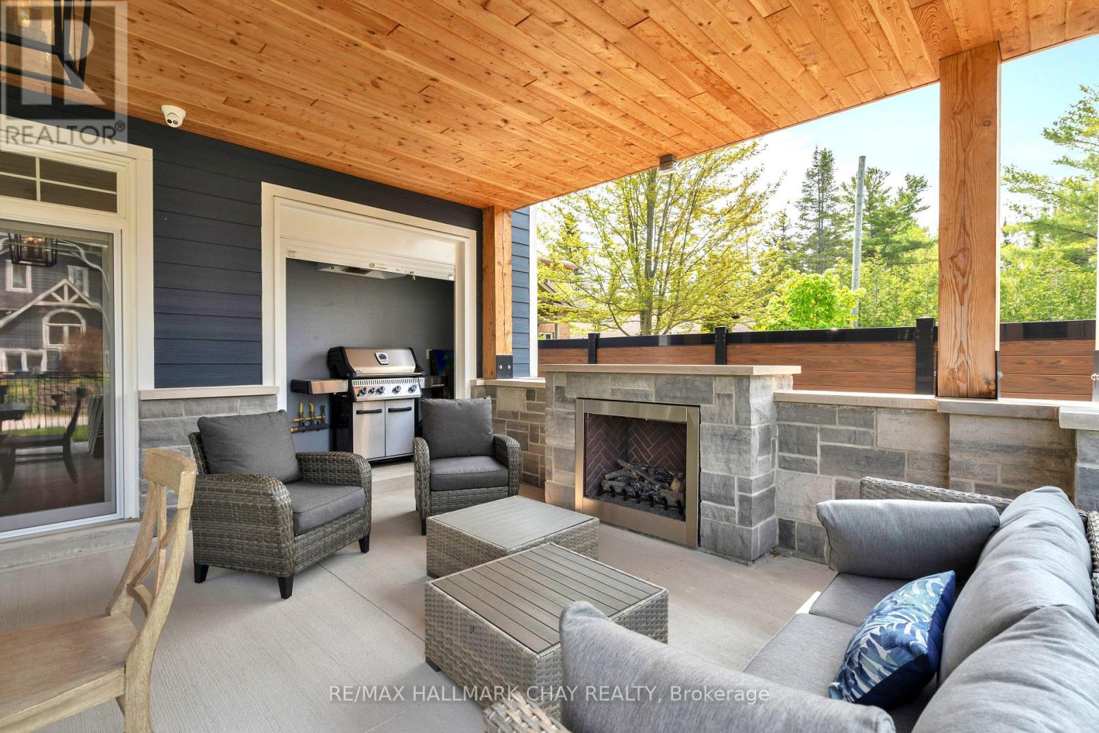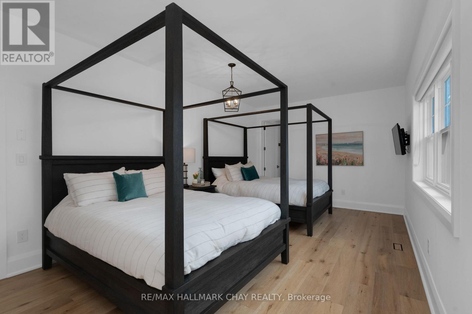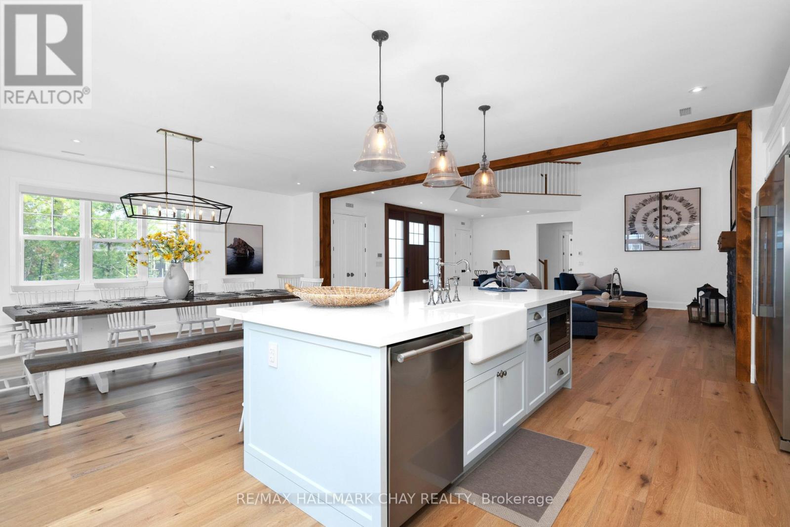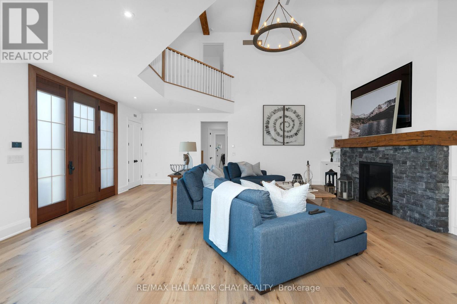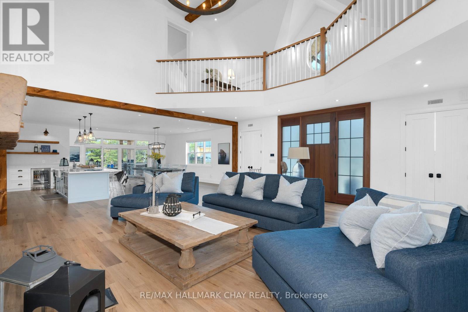 Impressive waterfront living on the shores of Georgian Bay with a westerly view to the water! This newer custom-built home exudes outstanding craftsmanship and superior quality finishes throughout. A thoughtful open concept design creates an ideal beach house retreat within a one minute walk to the sandy shores. Exceptionally well constructed. Over 4,400 sq ft with 4 bedrooms and 4 1/2 baths. Luxury kitchen offers quartz countertops with heated island top and high-end stainless appliances. The dining area provides ample space for the largest of gatherings. Walk-out to a large covered patio with outdoor gas fireplace, BBQ garage w/exhaust fan, and sunset views. The great room boasts soaring ceilings and an oversize gas fireplace with rustic timber mantel. 8 inch oak plank hardwood flooring thru-out. Heated floors. The second level offers a private primary suite with large W/I closet, gorgeous ensuite with steam shower and clawfoot tub and walk-out to secluded covered deck. At the opposite end of the upper hallway are 3 huge family/guest bedrooms each with their own ensuite. Every detail has been considered. ADDITIONAL FEATURES: Triple garage w/heated floor, Outdoor shower room, Full monitored security system, Inground sprinklers, Heated concrete driveway and sidewalks, Tile roof, Spray foam insulation, Gas and water line for outdoor kitchen. Stunning home or cottage within 5 min of Wasaga amenities. Truly a must see! (id:64974)