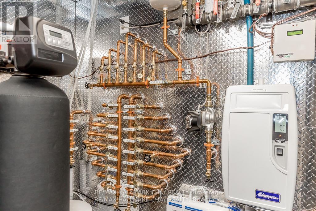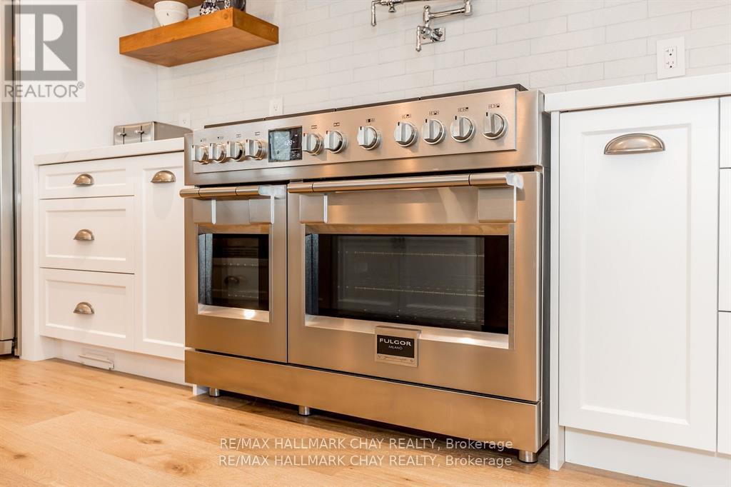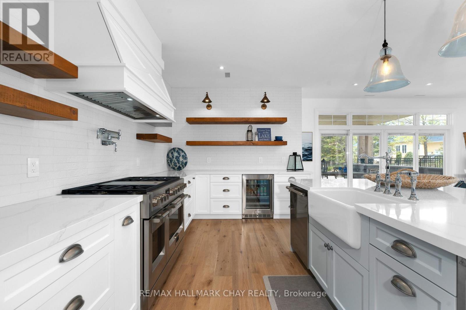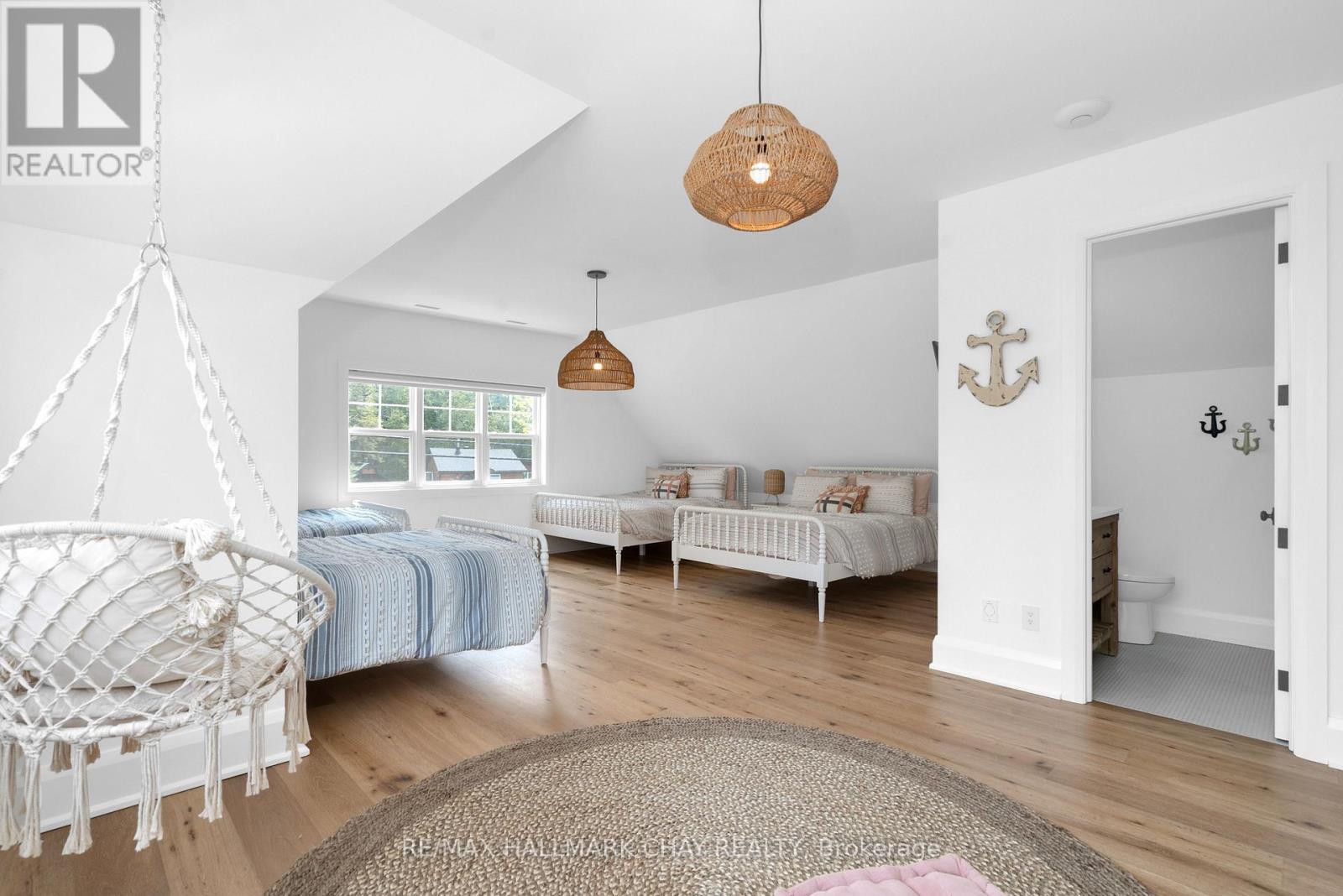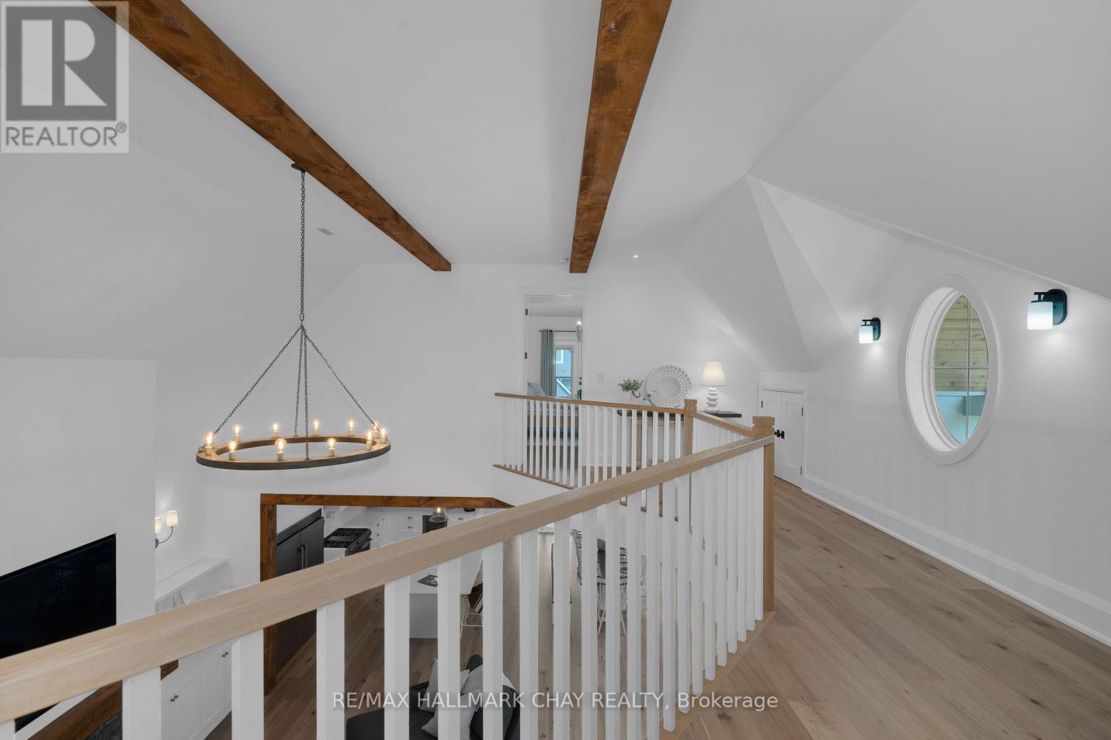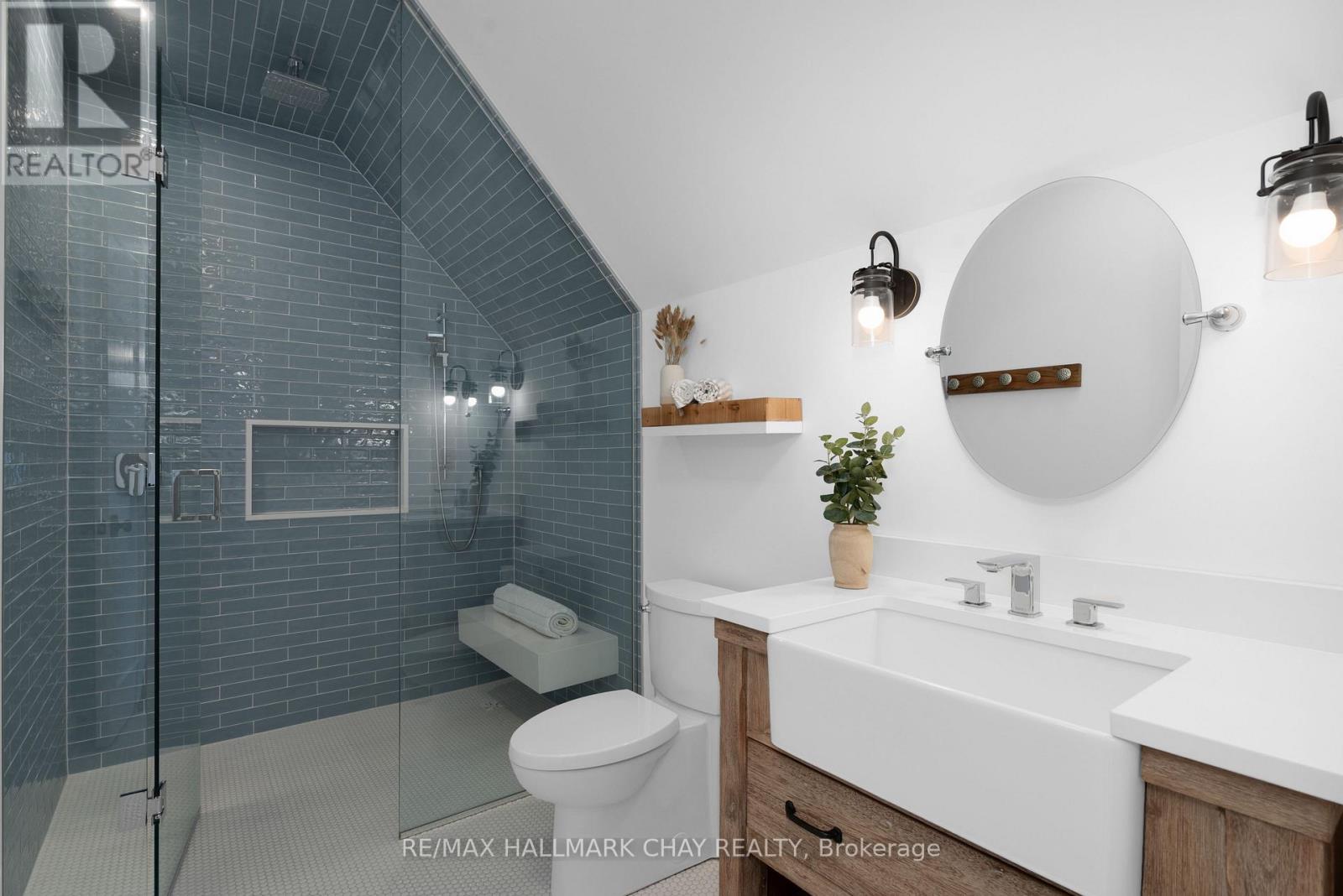 Impressive waterfront living on the shores of Georgian Bay with a westerly view to the water! This newer custom-built home exudes outstanding craftsmanship and superior quality finishes throughout. A thoughtful open concept design creates an ideal beach house retreat within a one minute walk to the sandy shores. Exceptionally well constructed. Over 4,400 sq ft with 4 bedrooms and 4 1/2 baths. Luxury kitchen offers quartz countertops with heated island top and high-end stainless appliances. The dining area provides ample space for the largest of gatherings. Walk-out to a large covered patio with outdoor gas fireplace, BBQ garage w/exhaust fan, and sunset views. The great room boasts soaring ceilings and an oversize gas fireplace with rustic timber mantel. 8 inch oak plank hardwood flooring thru-out. Heated floors. The second level offers a private primary suite with large W/I closet, gorgeous ensuite with steam shower and clawfoot tub and walk-out to secluded covered deck. At the opposite end of the upper hallway are 3 huge family/guest bedrooms each with their own ensuite. Every detail has been considered. ADDITIONAL FEATURES: Triple garage w/heated floor, Outdoor shower room, Full monitored security system, Inground sprinklers, Heated concrete driveway and sidewalks, Tile roof, Spray foam insulation, Gas and water line for outdoor kitchen. Stunning home or cottage within 5 min of Wasaga amenities. Truly a must see! (id:64974)