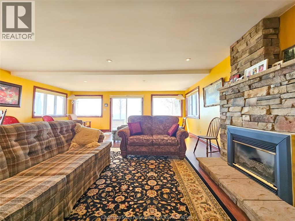 Experience breath taking nightly sunsets for this exceptional lake fronting property located in the desirable Erie Beach of SouthWestern Ontario. Pride of ownership is evident both inside and out with approximately 2456 square feet of finished living space suitable for full time living or a luxury vacation retreat, or a high end short term rental. The spacious living room with gas fireplace and expansive lake facing windows that frame exquisite sunset views. Step directly on the porch to enjoy the outdoors. The home includes three bedrooms with newer pine flooring and cedar lined closets plus two full baths, a large and modern kitchen with dedicated dining area plus an office setting for work or quiet reading. Comfort is ensured year round with economical forced air natural gas heating plus central air. The exterior is designed for low maintenance and features durable lifetime aluminum shingles providing longterm peace of mind. A rare opportunity to own a beautifully maintained lakefront property...truly an impressive package awaits the new owner. Should a buyer be introduced to the property by an Excel agent, a 30 percent Buyer commission holdback will be applied upon completion. (id:64974)