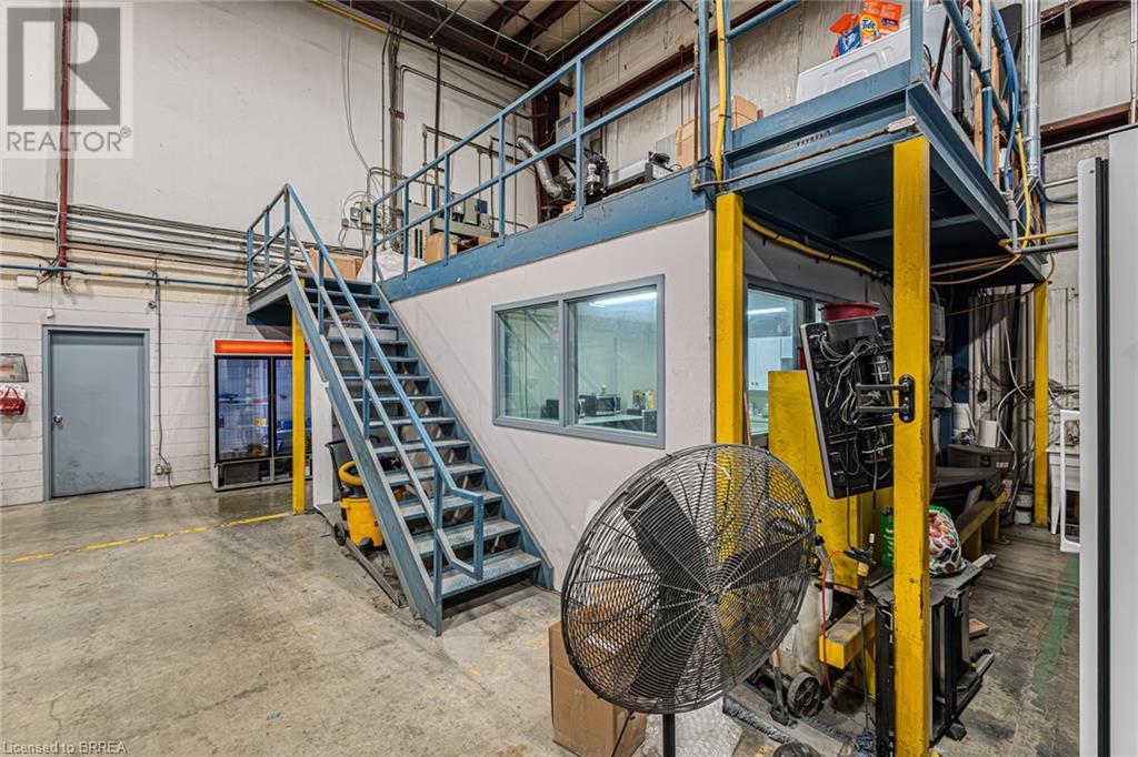 20,000sf industrial space, 1.2 kms from Highway 403 Garden Ave interchange. Sprinklered 24’8 height under beam warehouse with two dock doors and one 14ft tall drive-in door. Radiant tube heaters at docks doors and forced air blower in warehouse. Finished area includes: Open Reception/ bull pen area, small 2nd floor private office, 2 shop offices, female bathroom, lunchroom with kitchenette, male washroom (2 stalls, 1 urinal). Flexible, General Employment zoning. (id:65010)