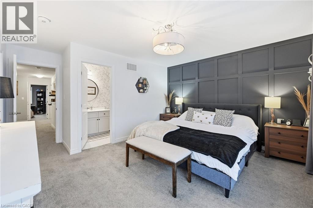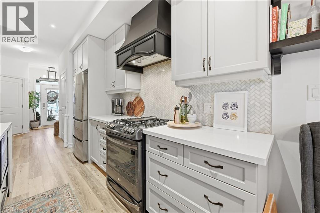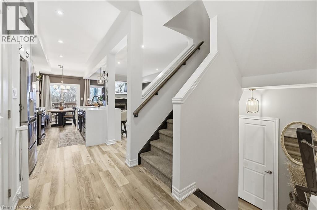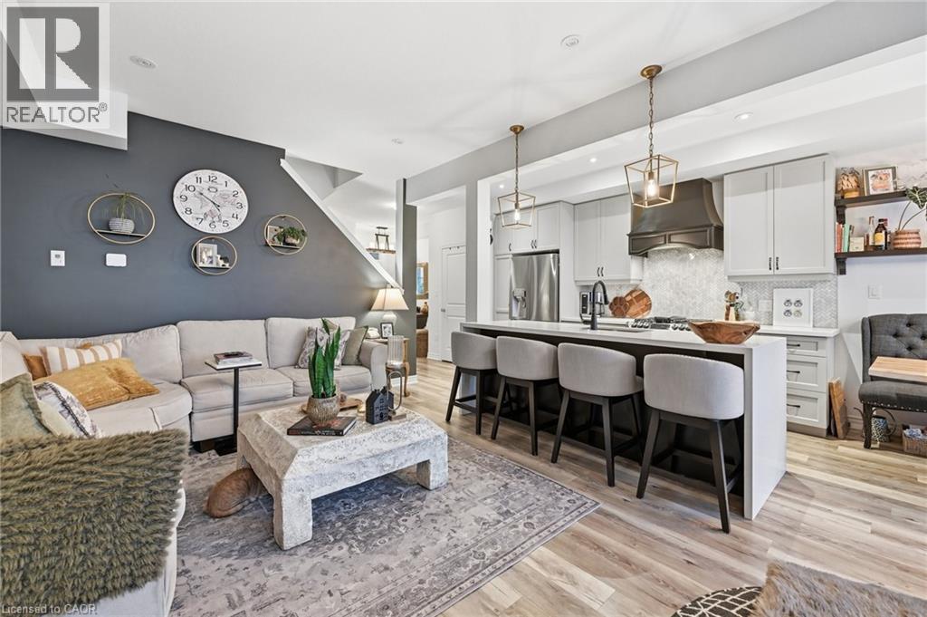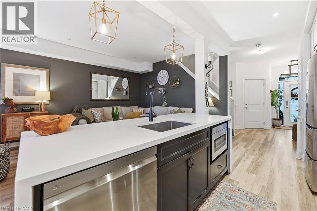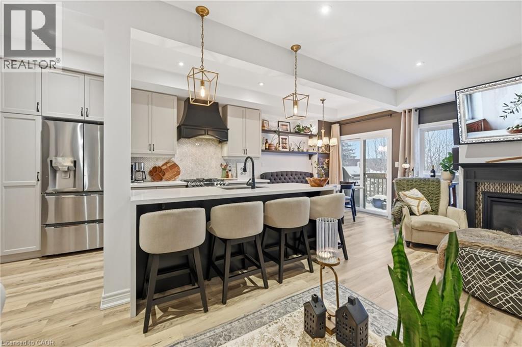 This stunning freehold townhome offers style, space, and sophistication throughout. The open-concept main floor features 9-foot ceilings, pot lighting, a cozy gas fireplace, and a walkout to a private deck perfect for entertaining. The gourmet upgraded kitchen is a showstopper, complete with a waterfall island and high-end finishes. Upstairs, the massive primary bedroom includes a walk-in closet and a luxurious en-suite. Two additional spacious bedrooms, a full bathroom, and a versatile bonus area ideal for a home office or reading nook complete the upper level. The fully finished walkout basement adds even more living space, with a bright recreation area, den, and access to the backyard. 1.5 car garage and driveway with side-by-side parking. No car shuffling!!! A truly exceptional home in a desirable Lincoln location! (id:64974)