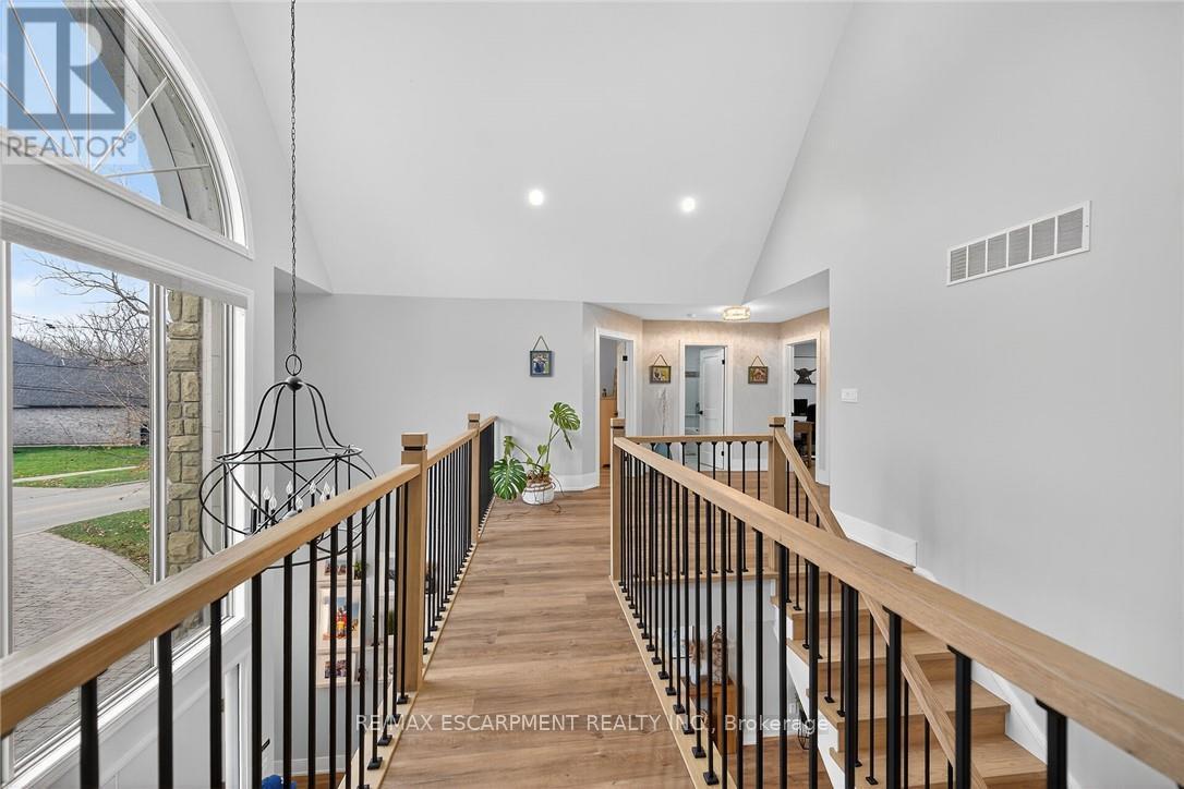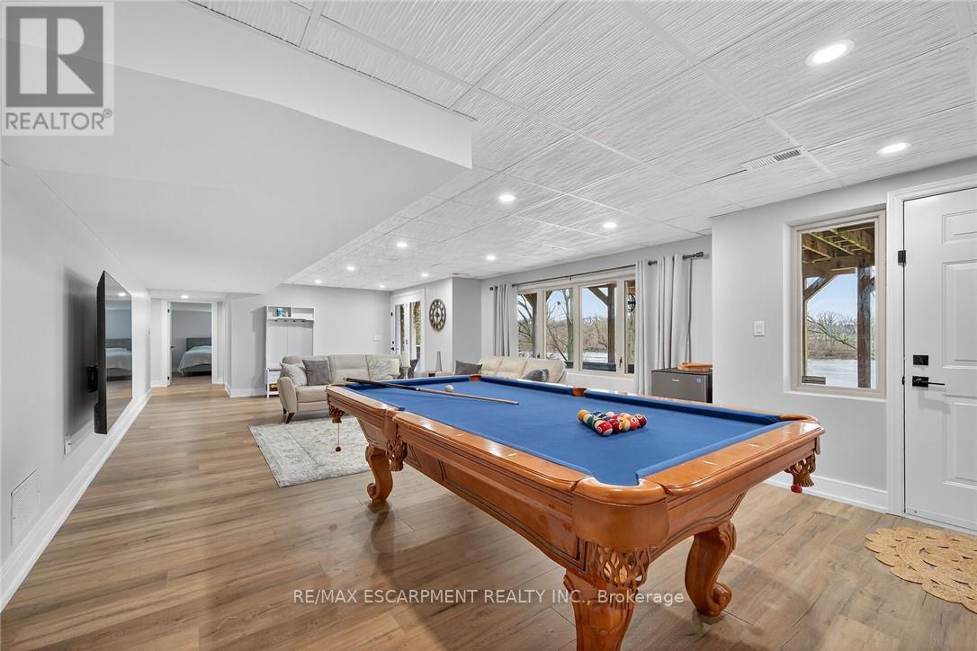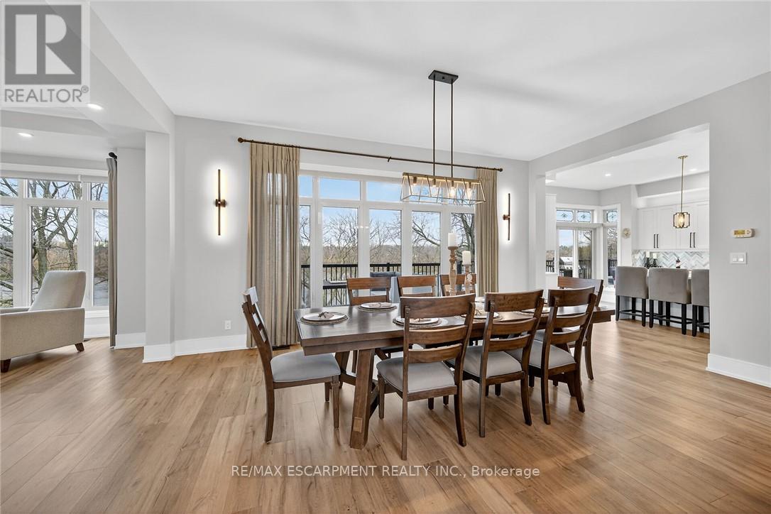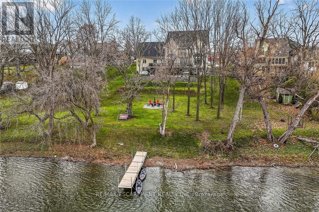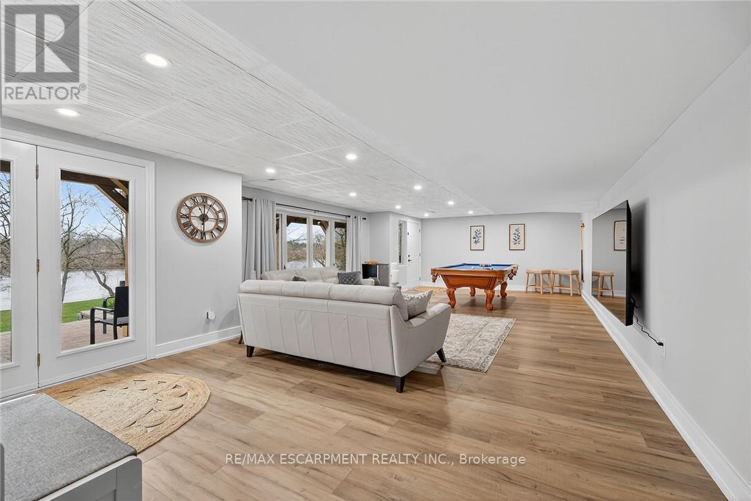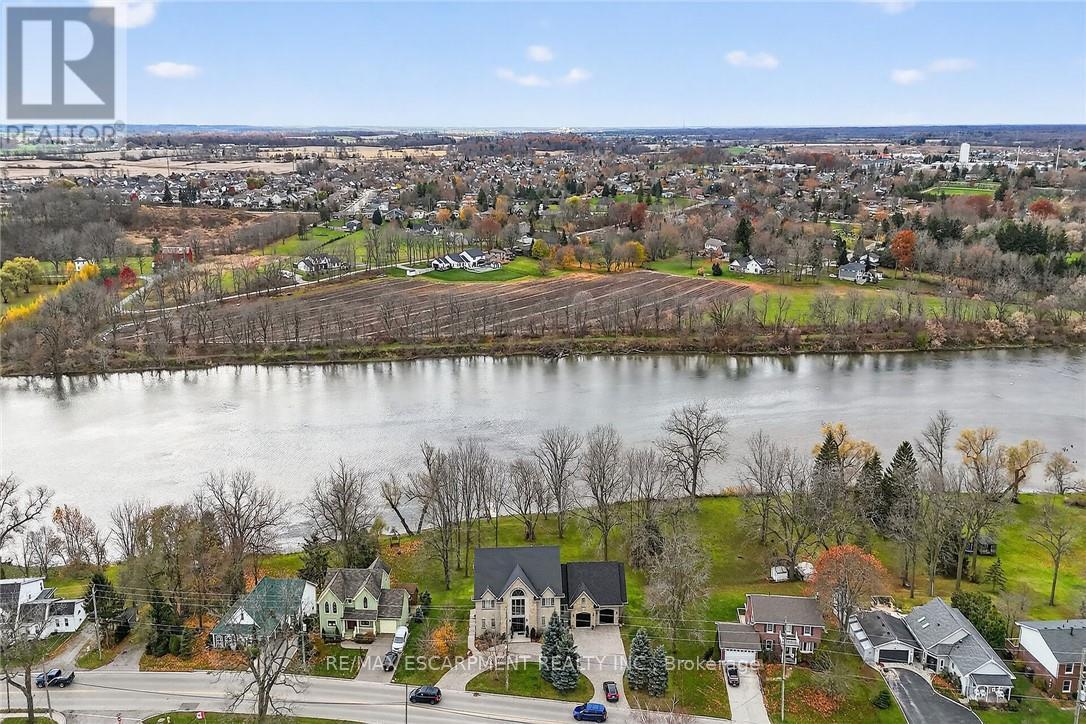 This stunning home backing onto the Grand River has been completely renovated from top to bottom! This beautiful home sits on a double lot with over 5000 sq ft of living space. Amazing curb appeal with a circular driveway big enough for 10 cars and an oversized double garage. A grand foyer welcomes you to the spacious main level with 10' ceilings. You will notice the amazing nature light from the front foyer window and a wall of windows along the back of the home. A cozy living room awaits you with a gas fireplace leading to a lovely dining room perfect for meals with family and friends and an amazingly large functional kitchen with cabinets galore and a 10' island. Patio doors from the kitchen open to an upper deck with stunning views of the Grand River, an expansive backyard with a firepit and a 30' dock, you'll will feel like you're on vacation everyday. The main level also includes an office/bedroom off the front foyer, a 2 piece bathroom, laundry room and automatic blinds on the front foyer window, living room and dining room windows. Moving up to the 2nd floor, you will find a gorgeous primary bedroom with a walk in closet, a spa like ensuite with a walk in shower and soaker tub, also 3 generous sized bedrooms and a 4 piece bathroom. All bedroom closets have closet organizers. The expansive lower level includes a large family room with pool table, 3 more bedrooms and a bright 3 piece bathroom. The lower level family room leads you to a covered patio with an 8 person Beachcomber hot tub, enjoy peaceful evenings star gazing and river views. In addition to the oversized double garage, there is a utility garage at the back of the house which is perfect for your riding lawnmower and anything other landscaping equipment. Country feels with all the amenities near by! Don't miss out on this wonderful family home! Luxury Certified. (id:64974)