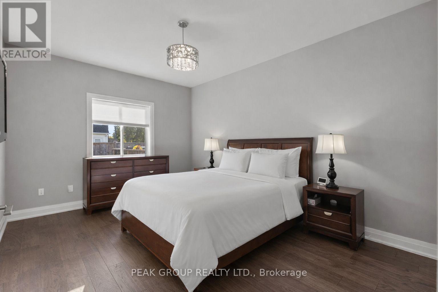 Welcome to the raised bungalow you've been waiting for! Built in 2019 this home comes equipped with 5 bedrooms, 3 bathrooms and over 2600 square feet of living space. Situated in one of North Welland's most desirable neighbourhoods, you're just seconds from Niagara Street adding the convenience of nearby grocery stores, banks, restaurants, pharmacies, shopping, schools, parks, walking trails, and quick highway access to the entire Niagara Region. From the moment you arrive, pride of ownership is unmistakable. A manicured lawn, landscaped gardens, concrete driveway, and a striking stone-and-siding façade create an inviting first impression. The 1.5 garage includes a side entrance and direct walk-in access to the basement an ideal setup for those seeking in-law potential, rental income, or investment opportunities. Step inside to an open-concept main floor filled with natural light. Cathedral ceilings in the living and dining areas create a bright, spacious feel, while the modern kitchen shines with quartz countertops, a matching backsplash, stainless-steel vent hood, and a walkout to the backyard deck perfect for outdoor cooking and entertaining. The main level features three generously sized bedrooms, each with large closets, including a primary suite complete with a private 4-piece ensuite. Quality finishes are evident throughout: engineered hardwood flooring, pot lights, upgraded trim and hardware, double-pane Pollard windows, and an elegant oak staircase with steel spindles. The fully finished basement is an entertainers dream, offering 9-foot ceilings, oversized windows, a large recreation room, two additional bedrooms, a 3-piece bathroom with a tiled glass shower, plus storage, laundry, and utility space. This move-in ready home combines location, style, and functionality an incredible opportunity in North Welland! (id:64974)
