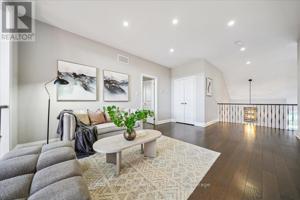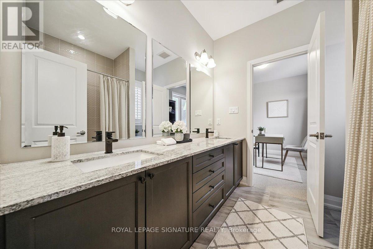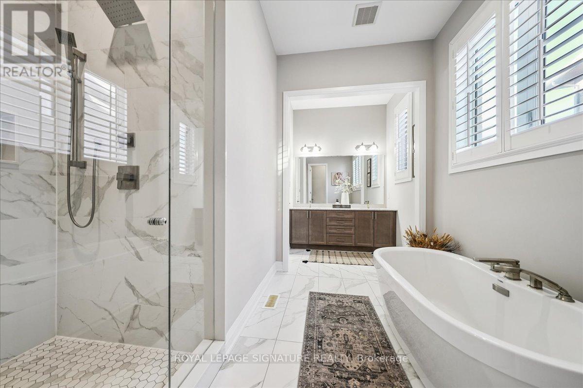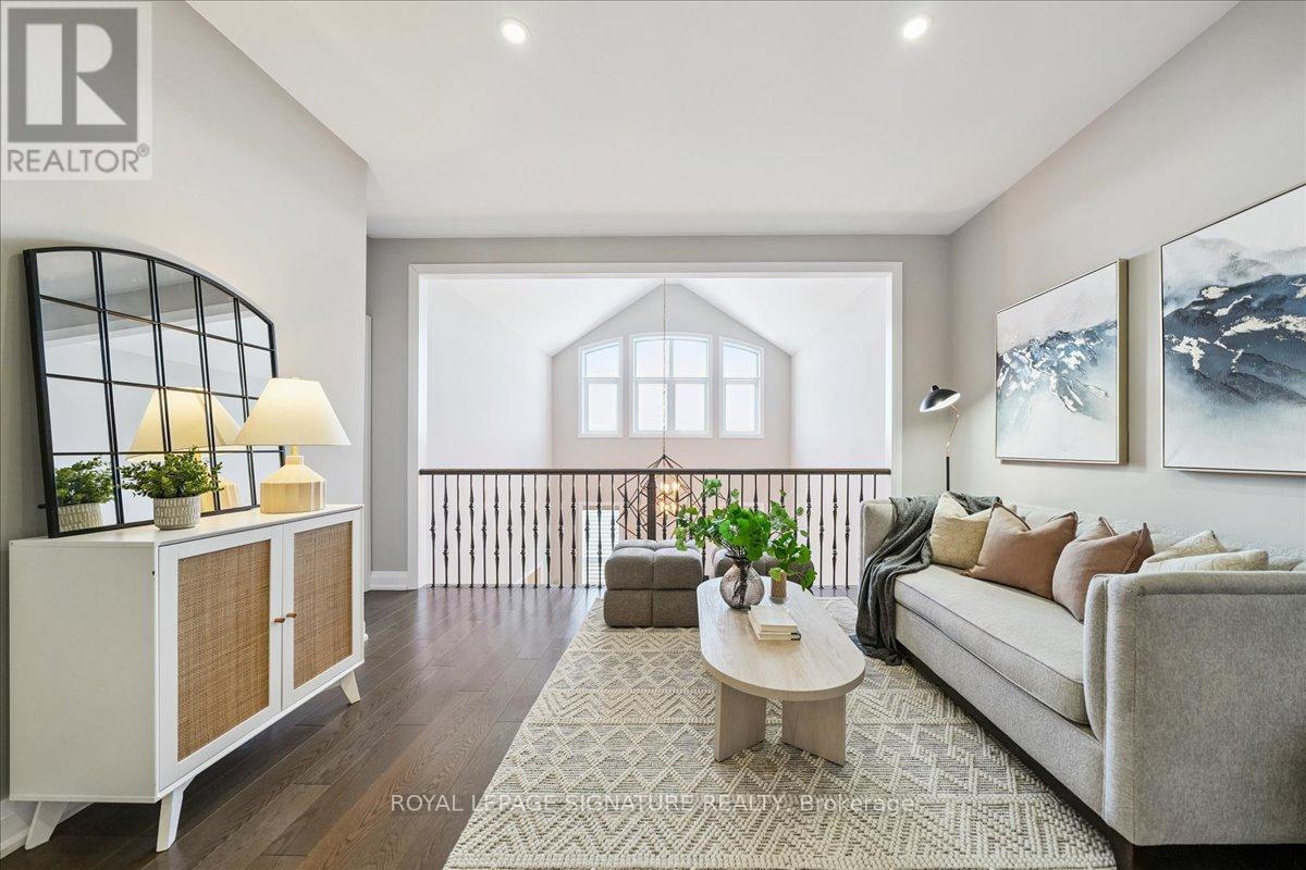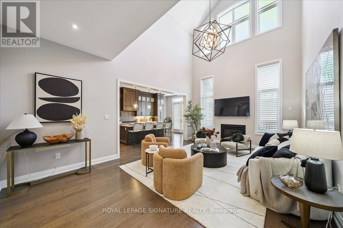 A rare opportunity to own one of Pickering's most distinctive executive bungalofts - offering dramatic 23-foot double-height ceilings, an impressive 100-foot rear lot width, and premium upgrades throughout. If you've been searching for more space without sacrificing convenience, 398 Frontier delivers the upgrade. Tucked on a quiet court in prestigious Rosebank, this home is thoughtfully designed for modern family living and seamless entertaining. Soaring ceilings elevate the foyer, living room, great room, and main-floor primary suite, while 10-foot ceilings continue upstairs for a grand, open feel throughout.The versatile layout includes two primary suites - a luxurious main-floor retreat and a private upper-level suite - plus two additional bedrooms connected by a Jack & Jill bath and a generous loft bonus space. All bathrooms are upgraded with granite counters throughout and frameless glass showers. The chef-inspired kitchen features an oversized granite island, extended cabinetry with valance lighting, walk-in pantry, servery, and premium Bosch appliances including double ovens and gas cooktop. Rich oak hardwood flooring and upgraded lighting enhance the principal spaces.The pie-shaped lot widens to over 100 feet at the rear, offering exceptional privacy with no rear neighbours and rare flexibility to create a future resort-style backyard retreat. Approximately 1,500 square feet of unfinished basement space with a three-piece rough-in provides excellent potential for recreation or extended living. Minutes to Hwy 401, Rouge National Urban Park, waterfront trails, and top-tier amenities - ideal for executive commuters and Toronto buyers seeking space, finish, and connectivity. A refined luxury offering in one of Pickering's most established communities. (id:64974)