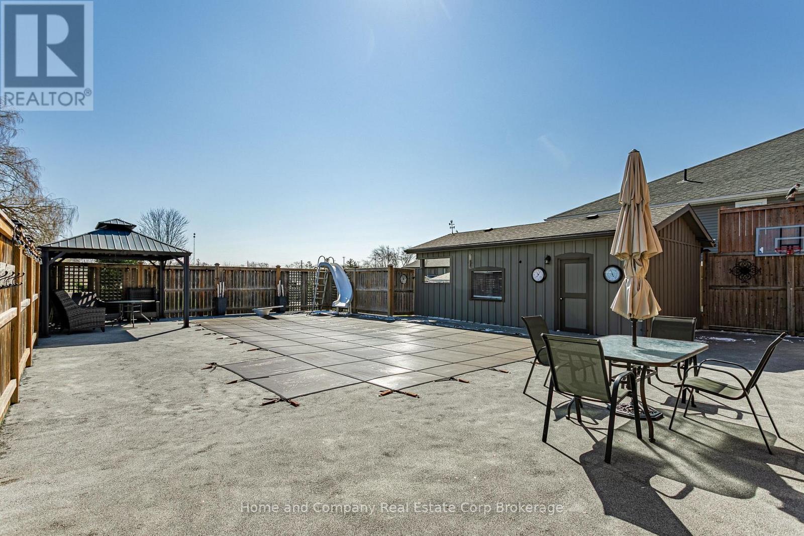Welcome to 3981 James Street, in the heart of the charming, historic Village of Shakespeare, founded in 1832. This impeccably maintained, classic 3-bedroom Ranch Style, brick bungalow offers the perfect blend of comfort, contemporary design and great outdoor living. Set on a wonderful 264 Ft. deep lot, backing onto green space, offering room to play, or perfect for the avid gardener. The finished lower level, offers optional use, and excellent comfort with a gas fireplace, and spacious 3pc. Bathroom with heated floors. Walk-out basement to a sparkling, solar-heated inground 16'x32' inground pool (with auto-cleaner and new solar-blanket) that invites effortless entertaining, or a spot to simply unwind. The main floor was updated to create an open-concept Kitchen and dining room, which flow seamlessly into the living room, overlooking the pool and grounds. The main floor laundry, is currently located in the 3rd bedroom. Single car garage (with direct access to the home, plus updated epoxy floor), newer windows, beautiful paving stone walkway to front entrance. Updated furnace and AC. An exceptional home! (id:64974)