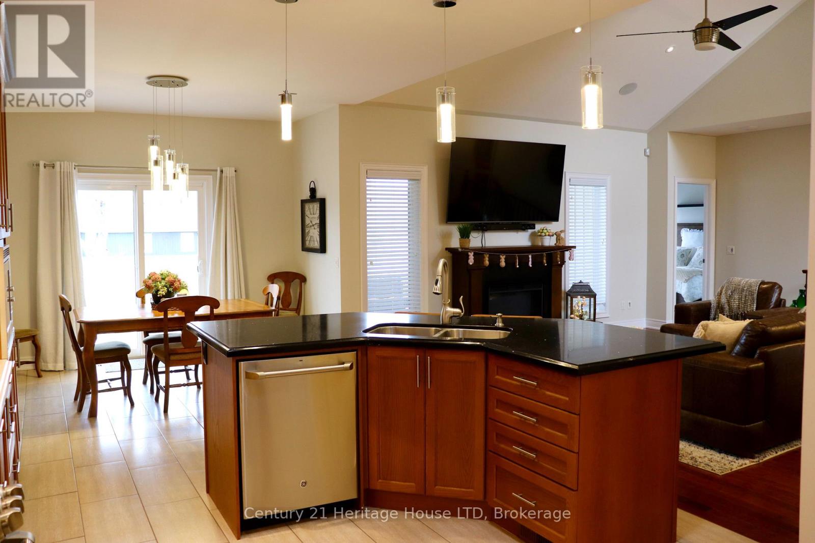 All Brick 9 yr old Luxury Bungalow! Over 3000 sq ft of Total Finished Quality Living Area. Cathedral ceilings, open concept family room/kitchen. Breakfast area to private deck and patio. Spacious master retreat on main floor with patio doors to private covered patio. High end ensuite with glass/tile shower and private toilet area. 2nd bedroom or office on main floor. Professionally finished basement with 2 additional bedrooms and 3rd full bath, rec room and storage. Private fenced backyard with patio/deck/shed and landscaping. You will be impressed! (id:64974)