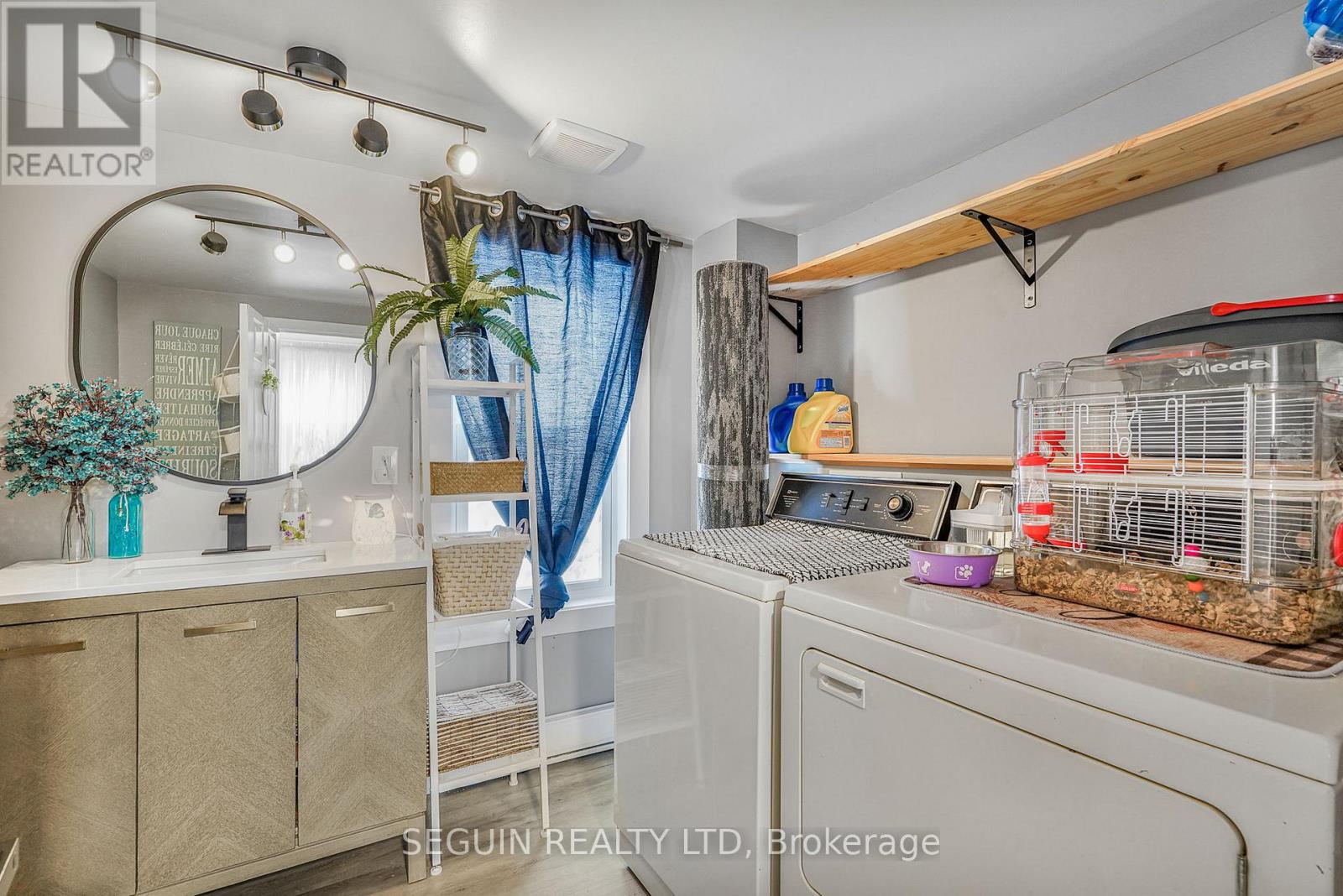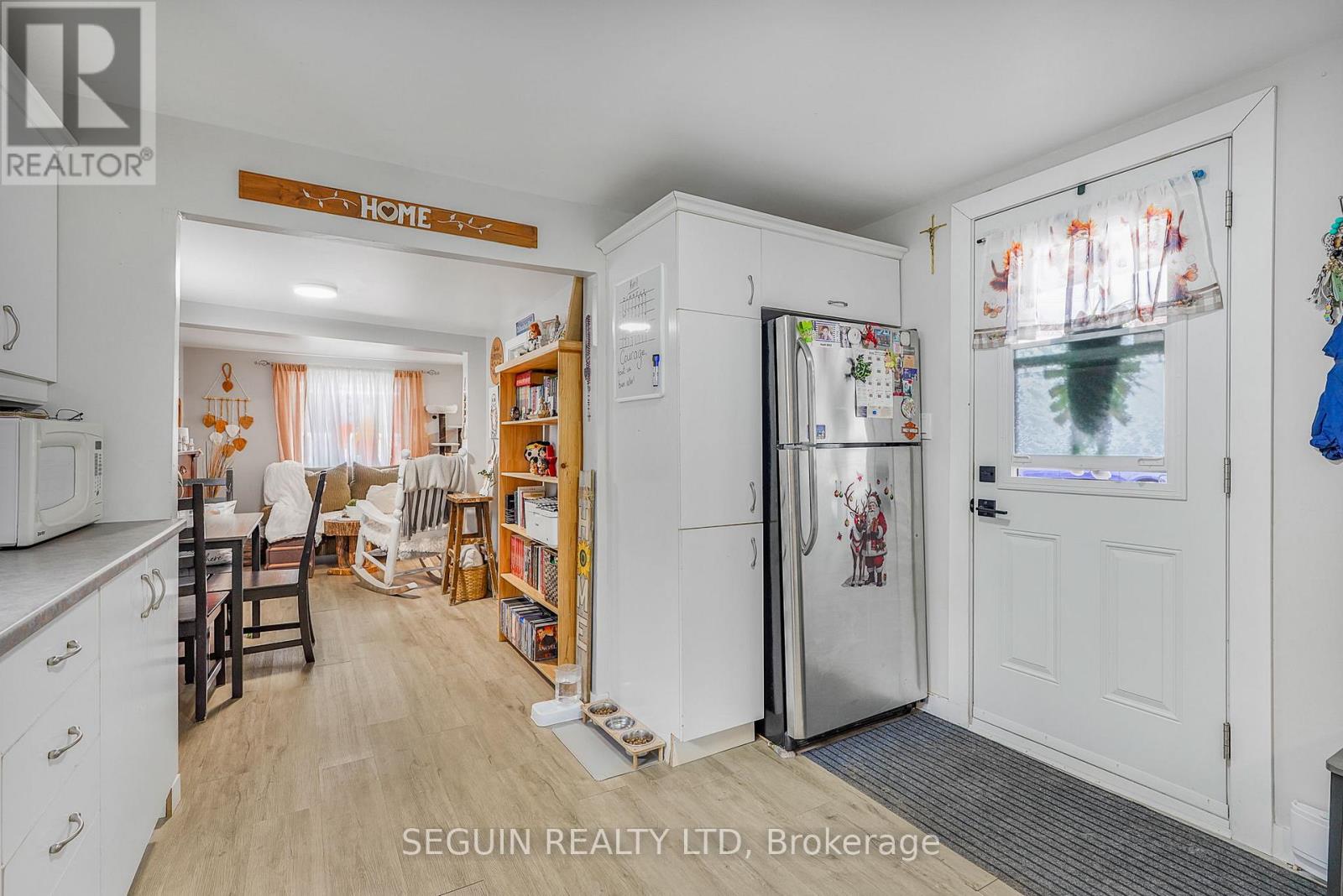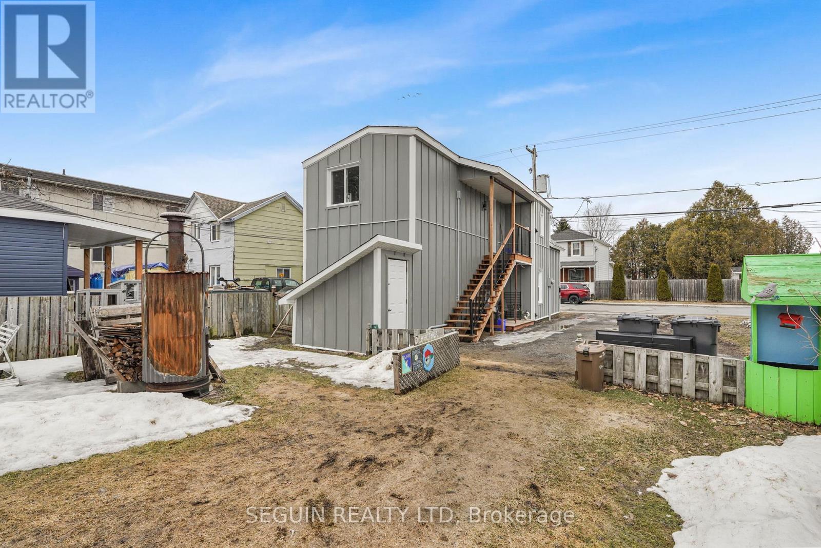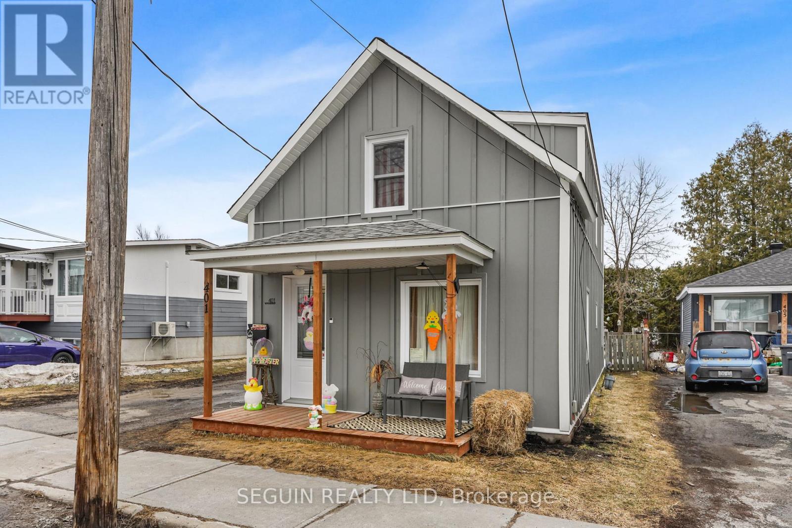 RENOVATED DUPLEX IN HAWKESBURY! Excellent opportunity for first-time home buyers looking to live in one unit while generating additional income to help cover property expenses, or for investors looking to expand their real estate portfolio. Ideally located close to schools, gyms, shopping, and other amenities in Hawkesbury.This property features two 1-bedroom units. Unit 401 Kitchener (lower level) was fully renovated in 2023 and is currently rented on a month-to-month basis at $865/month plus heat and hydro. Unit 399 Kitchener (upper level) is rented to a long-term tenant at $680/month, heat and hydro included. The property offers two separate hydro meters.Recent upgrades include all windows and doors (2023), decks (2023), roof updates, exterior cement board siding, hot water tanks, and more, making this a sure investment. (id:64974)