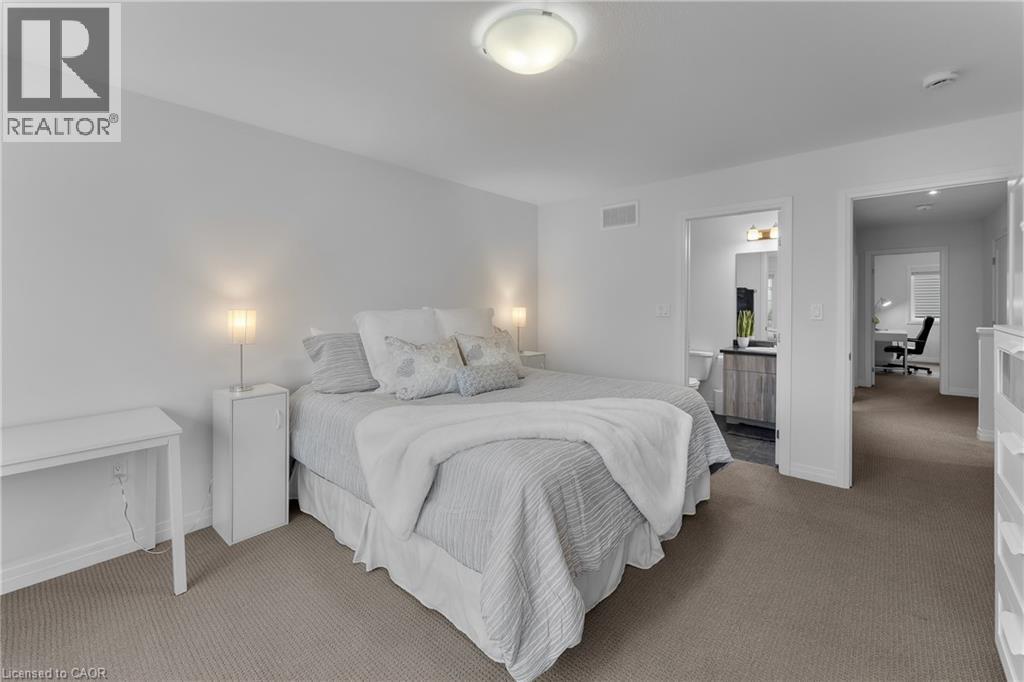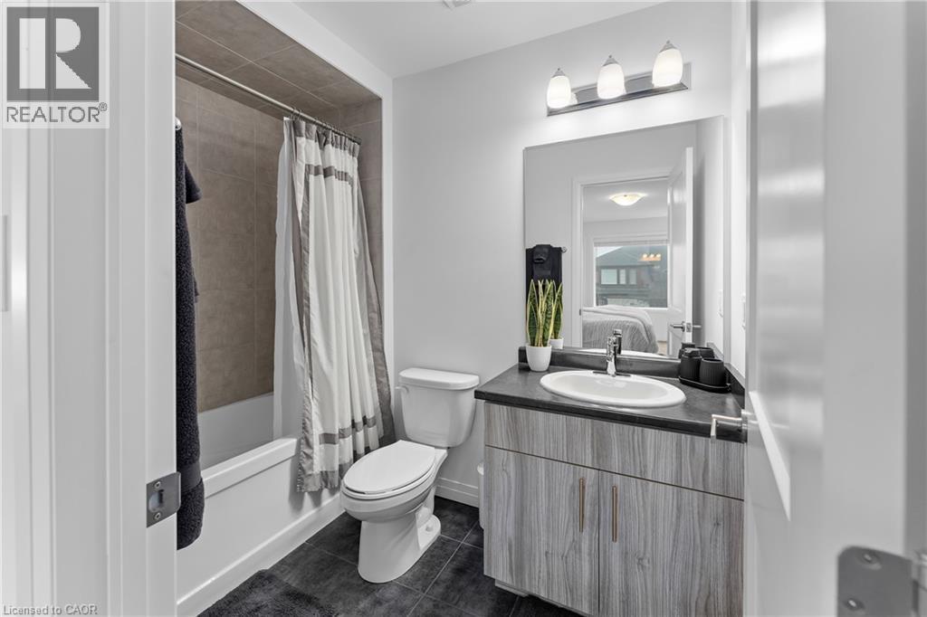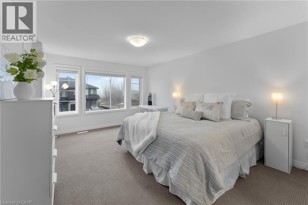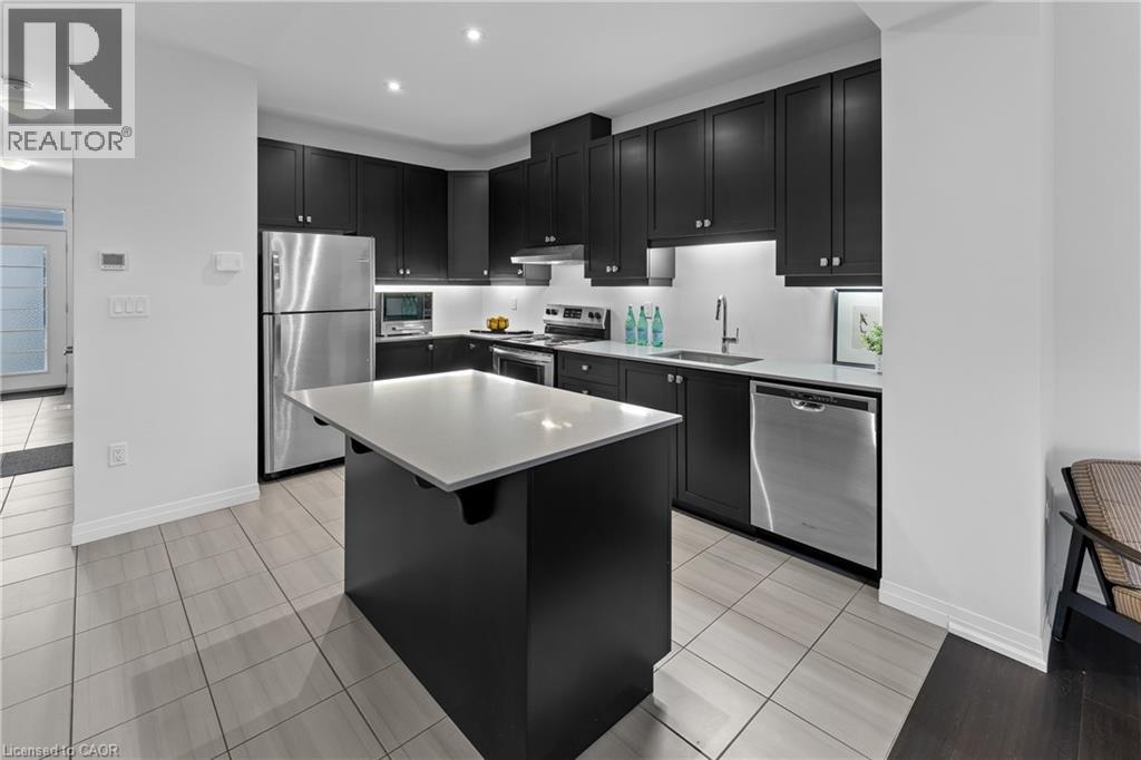 Welcome to this Losani-built freehold townhome in the highly desirable Vista Ridge community of Beamsville, offering nearly 1,500 sq ft of modern living space with no condo fees. Perfect for first-time buyers, young families, or professionals commuting to Hamilton or the GTA, this 3-bedroom, 3-bathroom home features a bright open-concept main floor with 9-foot ceilings, hardwood flooring, and a stylish kitchen with quartz countertops, a large breakfast island, extended cabinetry, under-mount lighting, and pot lights. Upstairs you'll find three spacious bedrooms including a primary suite with walk-in closet and ensuite bath, plus convenient bedroom-level laundry. The unfinished basement provides excellent potential for future living space, while the attached garage offers inside entry for everyday convenience. Ideally located just minutes from local schools, parks, shops, restaurants, Niagara wine country, and quick QEW access, this home delivers the perfect balance of comfort, lifestyle, and commuter convenience in one of Beamsville's most sought-after neighbourhoods. (id:64974)