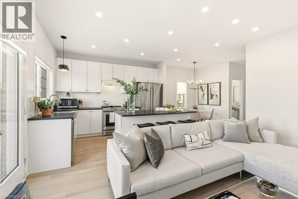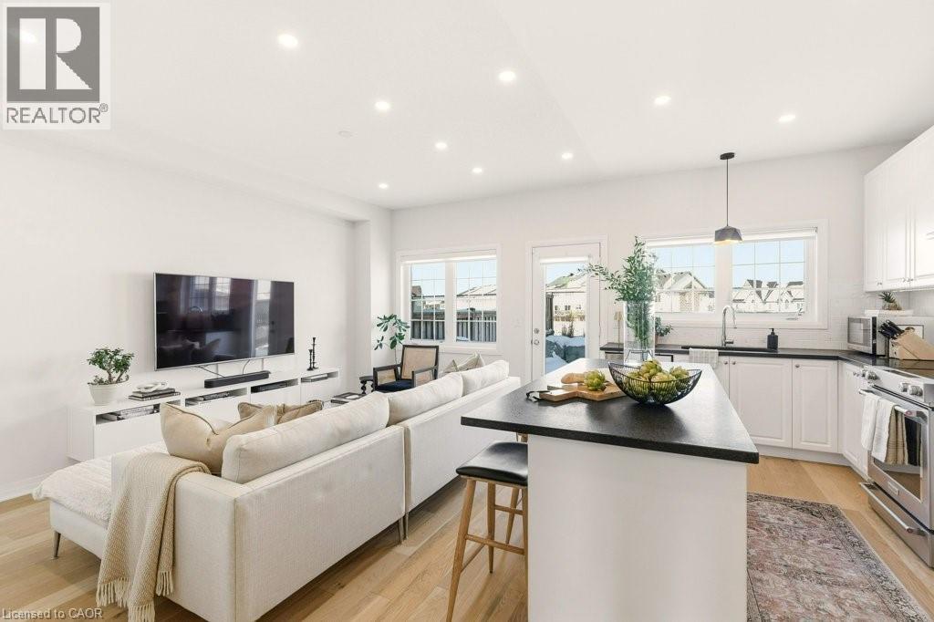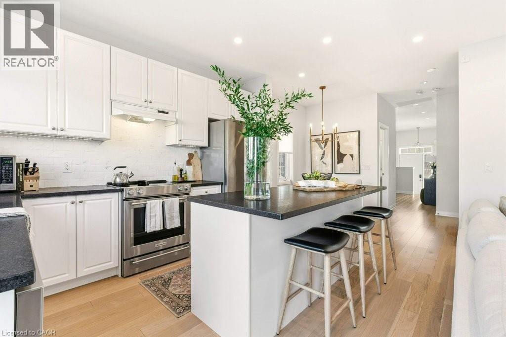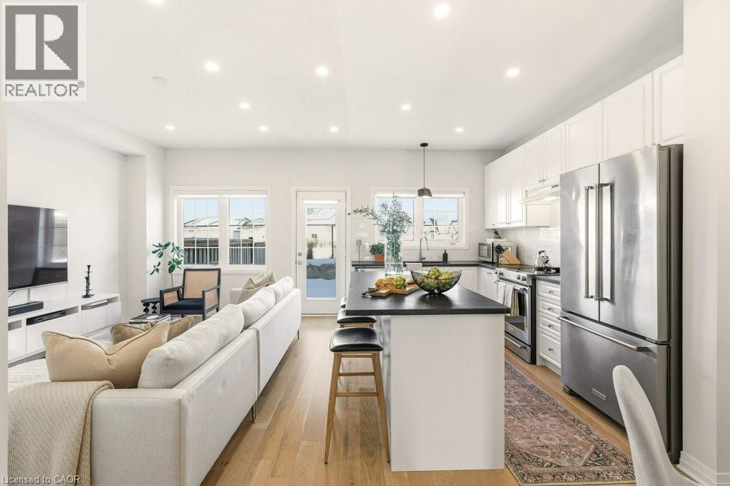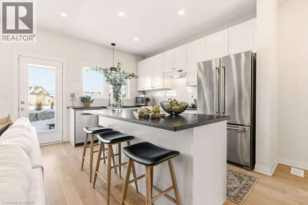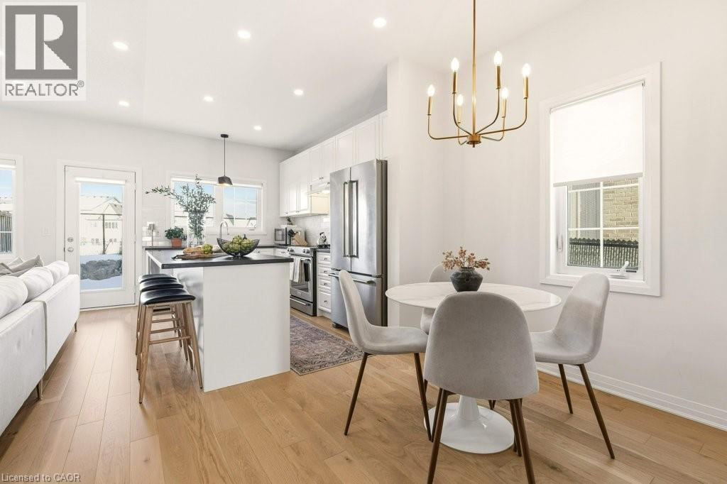 Welcome to this beautifully designed 3 bedroom, 3 bath freehold townhouse offering two storeys of stylish living. The open concept kitchen and dining space showcases a center island, stainless steel appliances, and is perfect for entertaining. Upstairs, the primary retreat features a luxurious spa-like ensuite, along with two additional generous bedrooms and second floor laundry for everyday convenience. Stunning new floors throughout. Step outside to a private backyard with patio and fenced green space, ideal for relaxing or hosting. (id:64974)