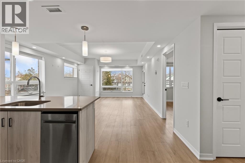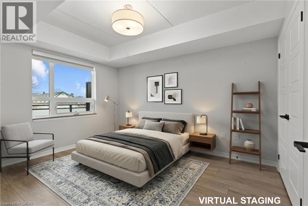 Situated in the heart of Vineland, Adelaar is a modern four-storey condominium crafted by Lincoln Construction. Surrounded by award-winning wineries, acclaimed restaurants, and charming boutique shops. With Jordan Marina just an 8-minute drive away, this condo offers a lifestyle rooted in both convenience and character. With the local library, grocery store, and many more everyday essentials located within 1 km, everything you need is comfortably close. This bright and inviting second-floor corner suite features 1 bedroom and a well-appointed four-piece bathroom, thoughtfully designed for everyday comfort. The standout feature of this unit is its coveted corner position, allowing for additional windows, abundant natural light, and picturesque views of the surrounding area. Details that truly elevate the living experience. With the open-concept design, this unit feels warm, airy, and exceptionally welcoming. Inside, the finishes strike a perfect balance between style and practicality: luxury vinyl plank flooring, hard-surface countertops, upgraded lighting and pot lights, and a full suite of in-unit appliances including an in-suite washer and dryer. The unit also features its own dedicated water heater, offering added efficiency and peace of mind. Every element contributes to a clean, modern, move-in-ready space ideal for those seeking low-maintenance living without compromising quality. Residents enjoy a thoughtful collection of amenities, including a versatile lounge and family room with kitchenette and a large harvest table. Perfect for hosting gatherings or extending your living space. Additional features include a private fitness room for residents and a beautifully designed lobby with soaring ceilings and comfortable seating areas. This location blends modern comfort with walkable, small-town charm. An appealing choice for first-time buyers, couples, and those looking to downsize into a stylish, easy-care home. Come home to the charm of Vineland living. (id:64974)