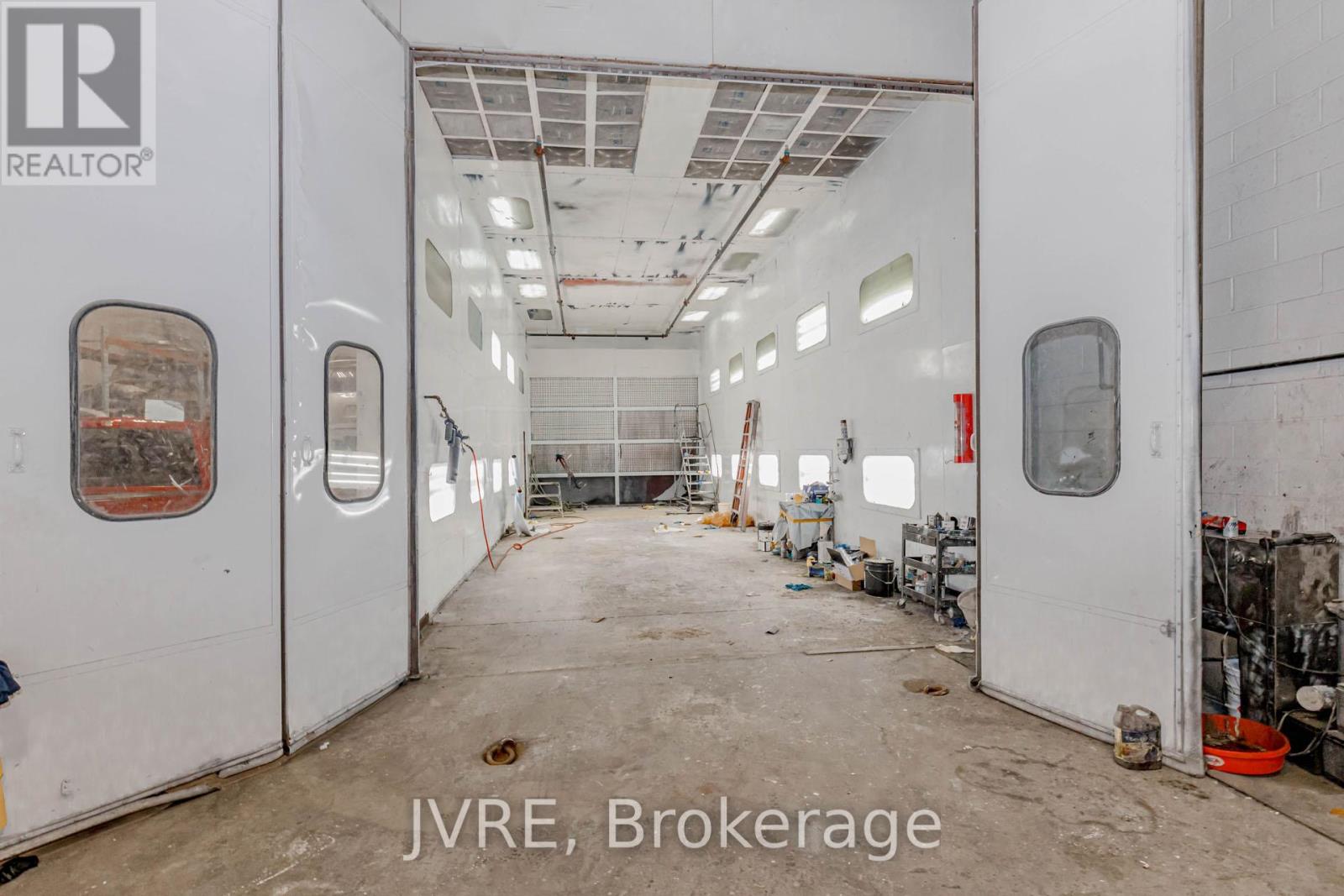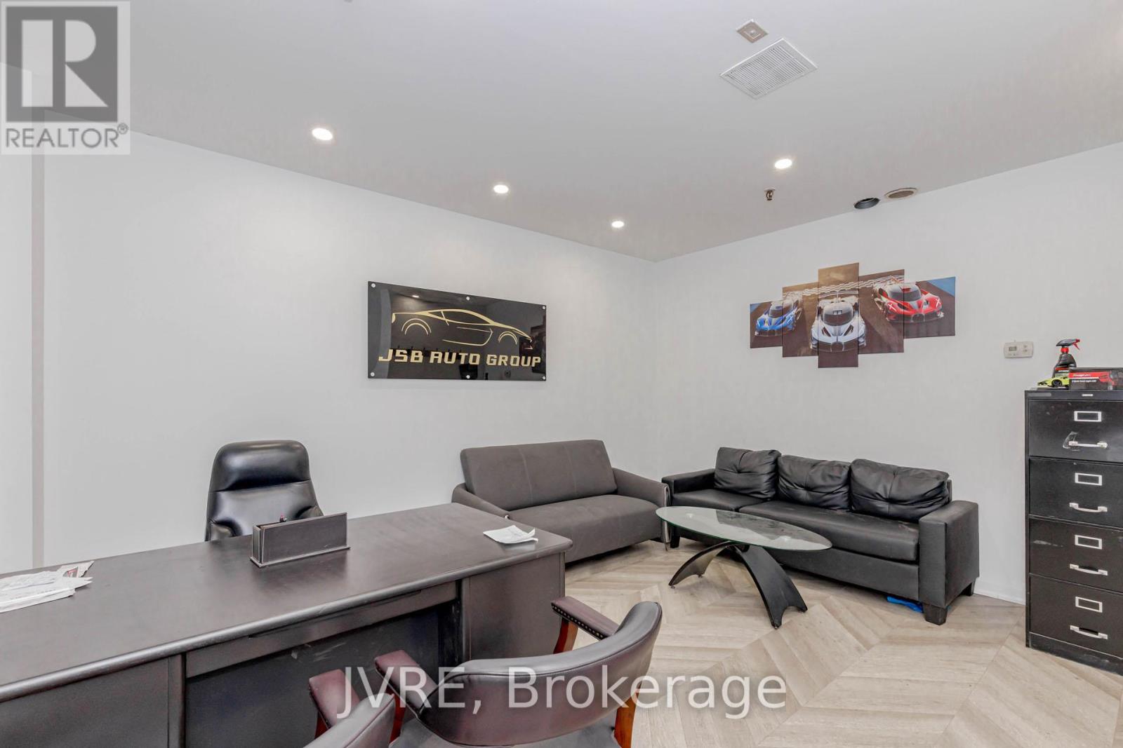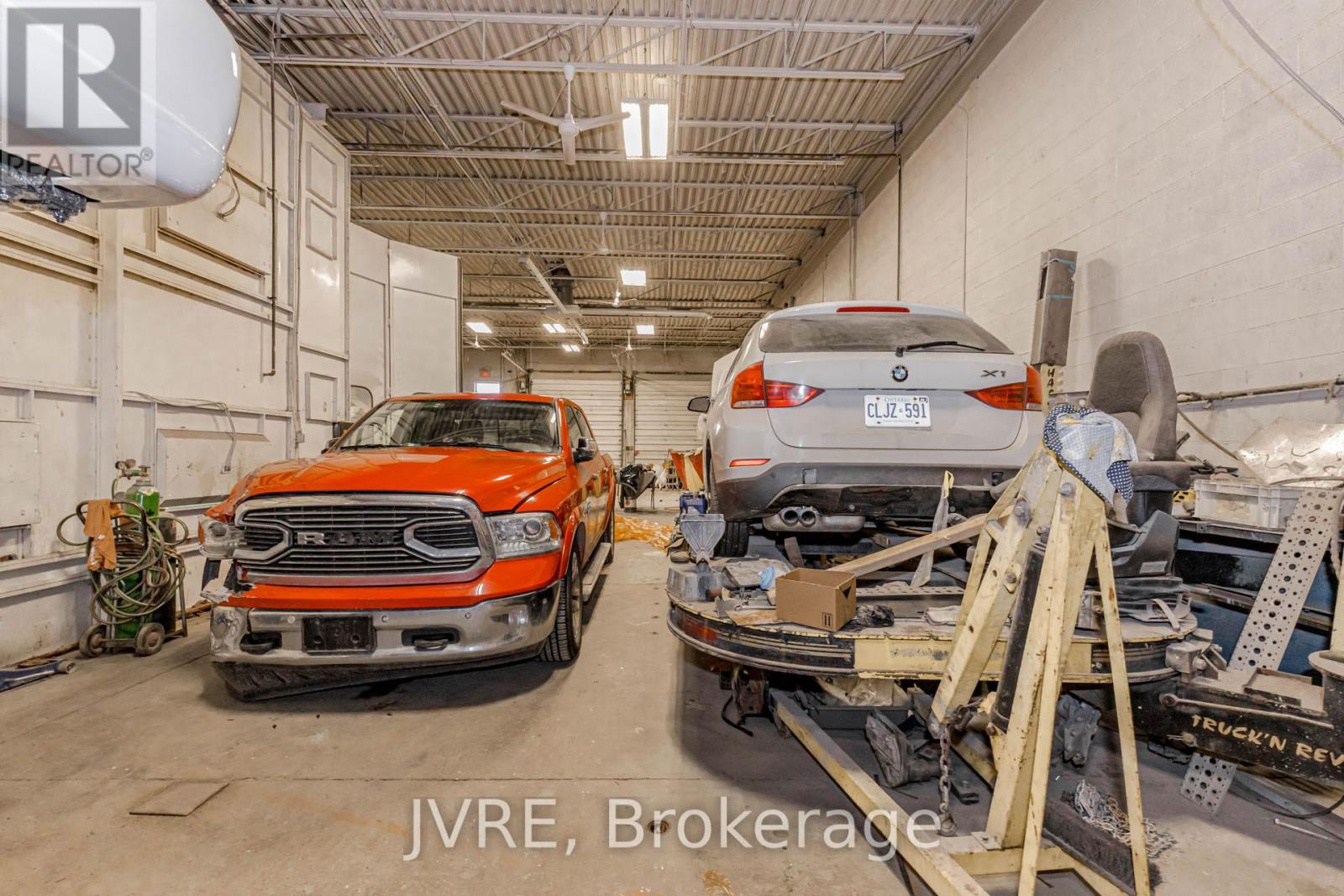 Well-located industrial condominium unit in Etobicoke steeles and Hwy 27, offering approximately 5,800 sq. ft. with a functional mix of office and industrial space. The unit forms part of a professionally managed industrial condo complex and was utilized for truck/cars body shop, a use that is in limited supply within comparable industrial condominium stock. The property features approximately 34% office area over two floors (approx. 2,000 sq. ft.), 18 ft clear height, and is serviced by two (2) drive-in shipping doors. Ground-floor office improvements were completed in in last 1-4 years. The unit is equipped with rooftop HVAC units, wet sprinkler system, and 600V / 200-amp power. 14 surface parkings available within the complex with the unit. Excellent connectivity to Highway 427, 407 and Highway 27, with strong access to surrounding employment and service amenities. Zoning is E1 - Employment Industrial, permitting a broad range of industrial and employment uses, including vehicle-related uses, subject to City of Toronto by-law regulations. Seller is willing to transfer all the permits, clientele and vendor list he has in his possession. The business chattels and equipments are included. (id:64974)