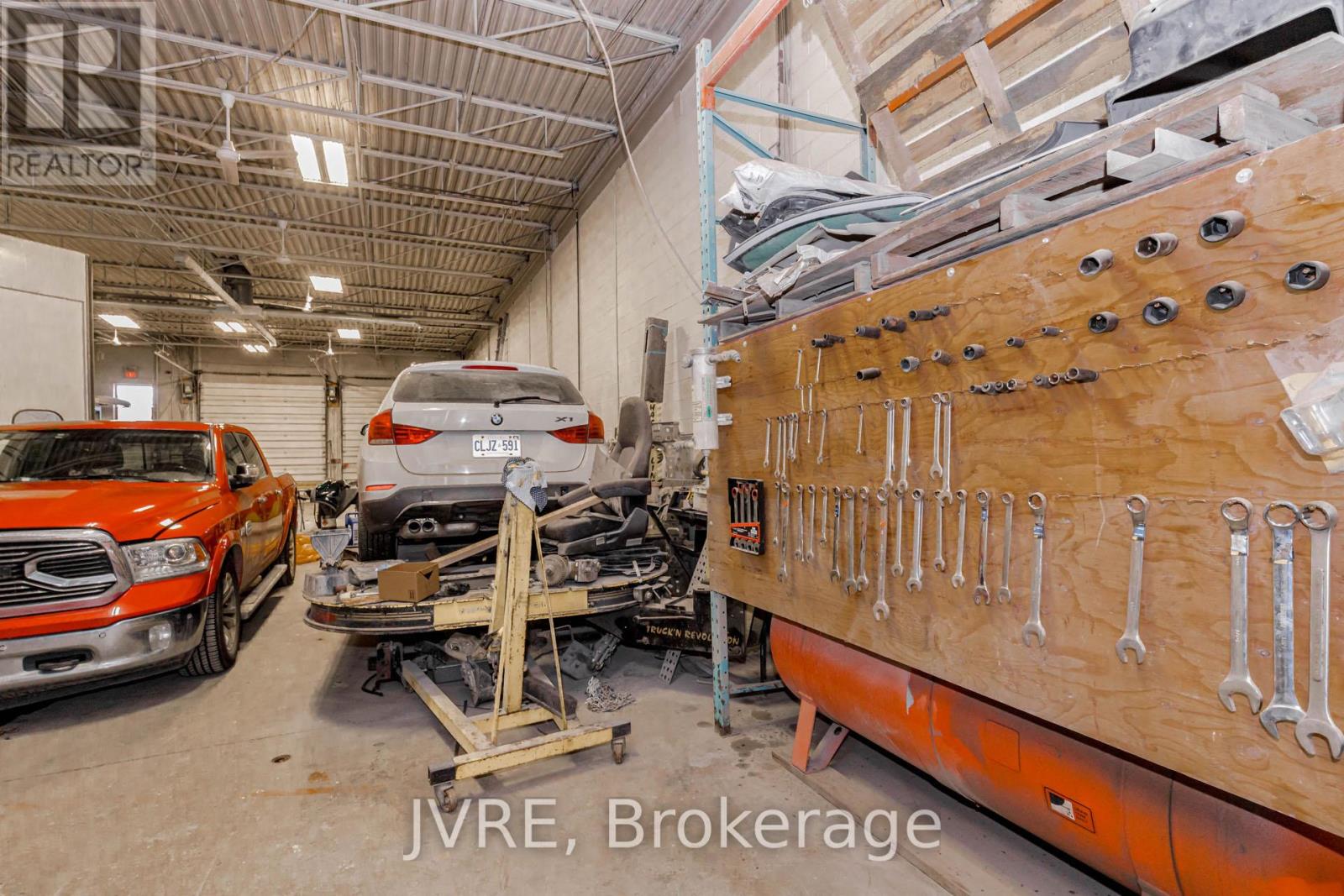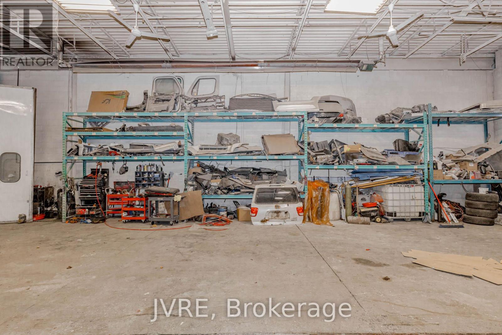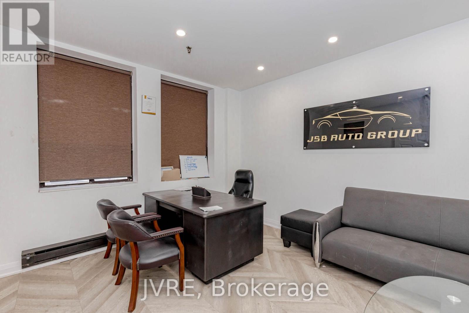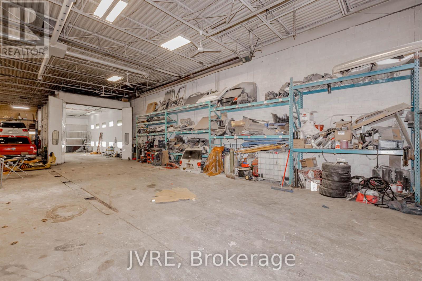 Well-located industrial condominium unit in Etobicoke steeles and Hwy 27, offering approximately 5,800 sq. ft. with a functional mix of office and industrial space. The unit forms part of a professionally managed industrial condo complex and was utilized for truck/cars body shop, a use that is in limited supply within comparable industrial condominium stock. The property features approximately 34% office area over two floors (approx. 2,000 sq. ft.), 18 ft clear height, and is serviced by two (2) drive-in shipping doors. Ground-floor office improvements were completed in in last 1-4 years. The unit is equipped with rooftop HVAC units, wet sprinkler system, and 600V / 200-amp power. 14 surface parkings available within the complex with the unit. Excellent connectivity to Highway 427, 407 and Highway 27, with strong access to surrounding employment and service amenities. Zoning is E1 - Employment Industrial, permitting a broad range of industrial and employment uses, including vehicle-related uses, subject to City of Toronto by-law regulations. Seller is willing to transfer all the permits, clientele and vendor list he has in his possession. The business chattels and equipments are included. (id:64974)