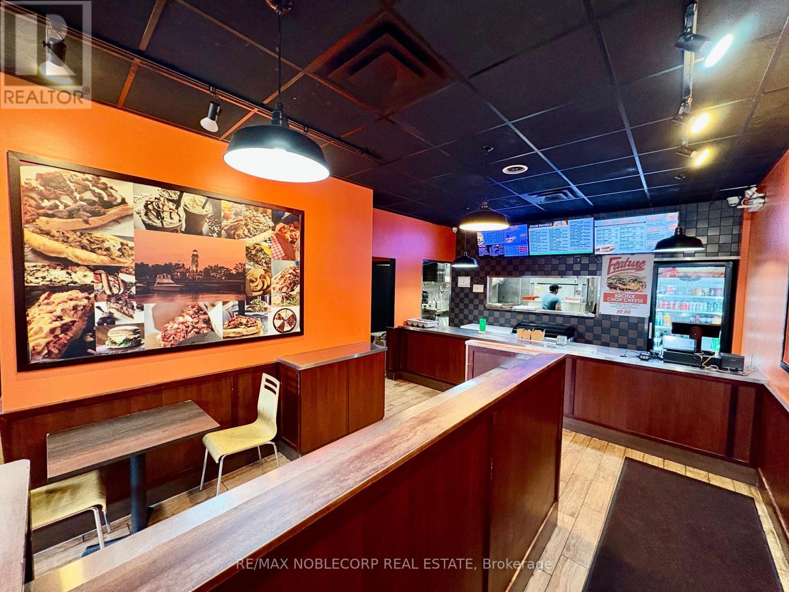 An exceptional rebrand restaurant opportunity with great curb appeal and plenty of public parking behind the unit. This 1,200+ sq. ft. space is fully outfitted with all essential kitchen equipment, highlighted by a newly installed10-ft commercial hood w/ walking cooler and 2 freezers. The restaurant comfortably accommodates20+ guests. Backed by a loyal clientele, the business delivers consistent revenue with strong upside potential. Located in a busy, high-visibility area, the space offers flexibility to continue the existing concept or rebrand to virtually any cuisine. Offered at an attractive rent of $6,893/month (including TMI and HST), this is outstanding value for a location of this size. With 4.5 + 5 years additional remaining on the lease, this opportunity provides long-term security and peace of mind. A turnkey operation ready for its next owner. (id:64974)