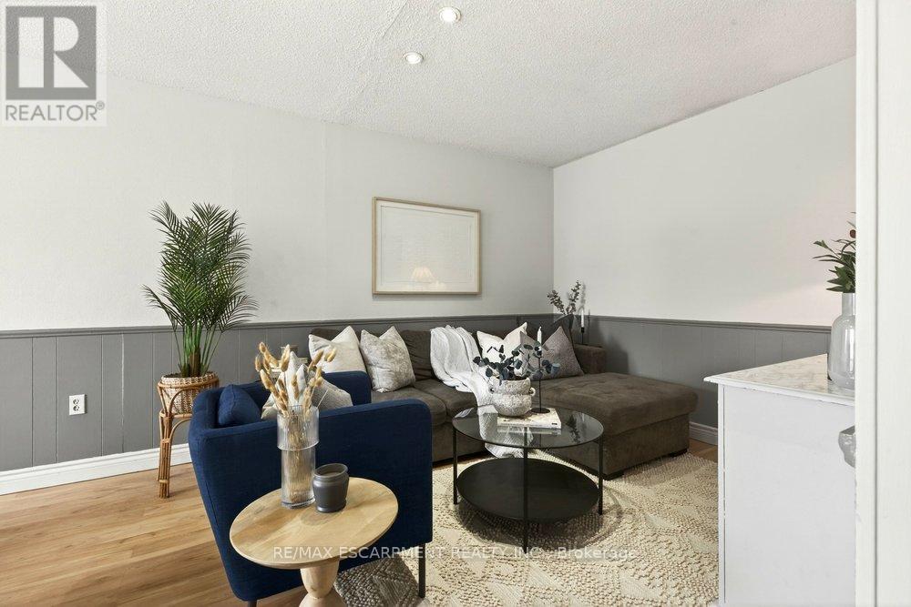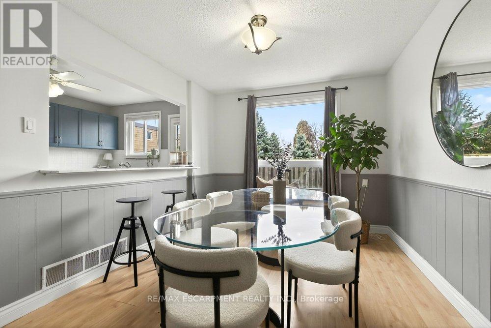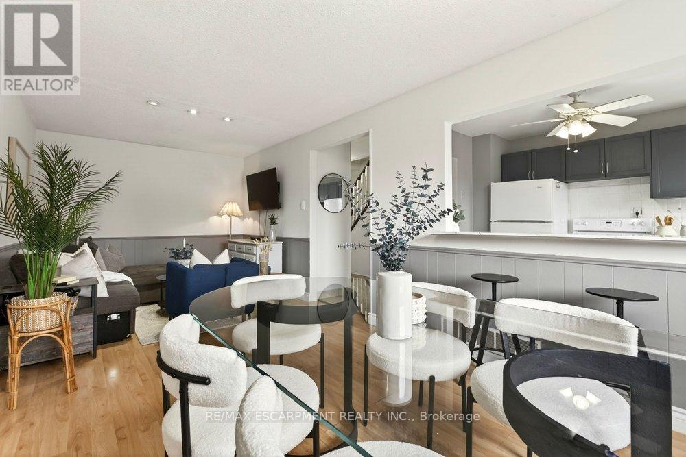 Move-in ready 3-bedroom townhome with garage and finished basement on Hamilton's desirable East Mountain! Welcome to #4-1350 Limeridge Road East, located in a quiet, family-friendly townhome community directly across from Mohawk Sports Park with green space, sports fields and walking trails, and just minutes to schools, Albion Palls, shopping and highway access. The main floor offers a bright and functional layout with a spacious living and dining area and a kitchen with breakfast bar, ideal for everyday living and entertaining. Upstairs you'll find three generously sized bedrooms and a full bathroom, offering comfortable space for families or first-time buyers. The finished basement adds valuable living space and features new vinyl flooring, perfect for a family room, home office or play area. The home has also been freshly painted, giving it a clean, updated feel throughout. Enjoy the convenience of an attached single garage (compact) plus private driveway parking and a fully fenced, low-maintenance backyard with patio backing onto the complex playground and greenspace. This well-maintained community offers a family-friendly setting just steps from Mohawk Sports Park. Low condo fees include water, basic cable, high-speed internet and exterior maintenance, offering excellent value and truly low-maintenance living. A great opportunity for first-time buyers, downsizers or investors looking for value in a well-connected East Mountain neighbourhood. (id:64974)