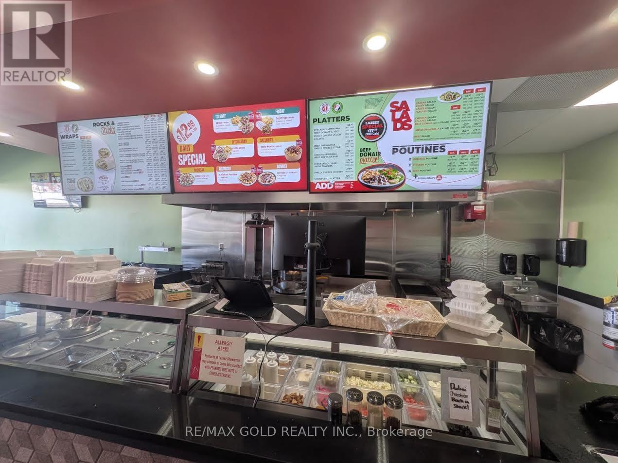 Excellent opportunity to acquire a well-established and fully operational Lazeez Shawarma location in a high-traffic area. This turnkey business offers consistent monthly sales, an established customer base, and significant potential for future growth through extended hours, catering, and delivery platforms. The premises feature a spacious layout designed for efficient operations, including a large main service area and a basement that provides additional storage and operational flexibility. The business is fully equipped with all necessary chattels and equipment, allowing a new owner to seamlessly take over operations. As part of a recognized and trusted franchise brand, the buyer will benefit from ongoing franchisor support, established systems, and strong brand recognition in the marketplace. This is an ideal opportunity for owner-operators or investors looking to step into the thriving quick-service restaurant industry. (id:64974)