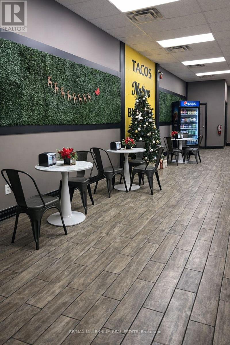 Strong-performing ice cream and dessert section with consistent customer demand anchors this established Mexican franchise opportunity in Hamilton. Located in a high-traffic plaza surrounded by schools, gyms, factories, offices, and popular branded restaurants, ensuring steady foot traffic throughout the day.Serving authentic Mexican favorites including burritos, nachos, and specialty desserts such as ice creams, milkshakes, and cheesecakes. Fully licensed kitchen with all equipment and franchise-approved setup included. Excellent growth potential with the opportunity to expand menu offerings or add beverages/alcohol (subject to approval).Motivated seller relocating - competitively priced for a quick sale. Strong brand recognition and loyal customer base. Motivated seller relocating - competitively priced for a quick sale. Low rent includes HST and TMi (id:64974)