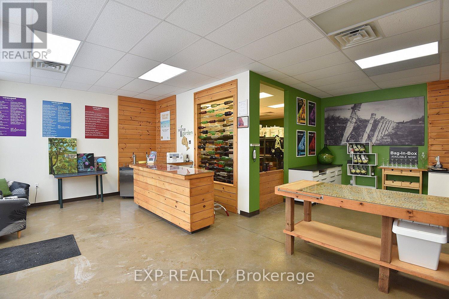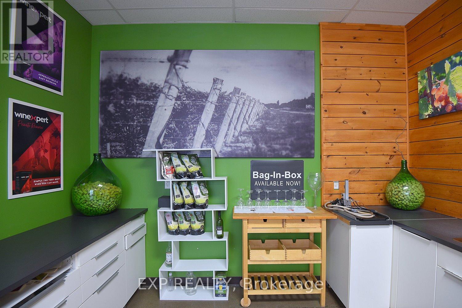 Established ferment-on-premises wine-making business in the heart of Fonthill. Operating for over 35 years with only three owners, this independently owned 1,439 sq ft turnkey operation offers a rare opportunity to enter Niagara's thriving beverage industry without vineyard ownership. Located along high-visibility Highway 20 corridor, this business includes all production equipment, new bottling machines, washer systems, corking systems, filtration units, and extensive inventory of carboys and fermentation equipment. Currently operating 30 hours per week, providing significant upside potential through extended hours, private bottling events, corporate team-building experiences, and expansion into craft beer production. Kegerator already included and layout supports beverage diversification. Lease secured through 2027, offering operational stability. Affordable entry point with established customer base and strong community presence. Rare opportunity in growing Niagara Region market. (id:64974)