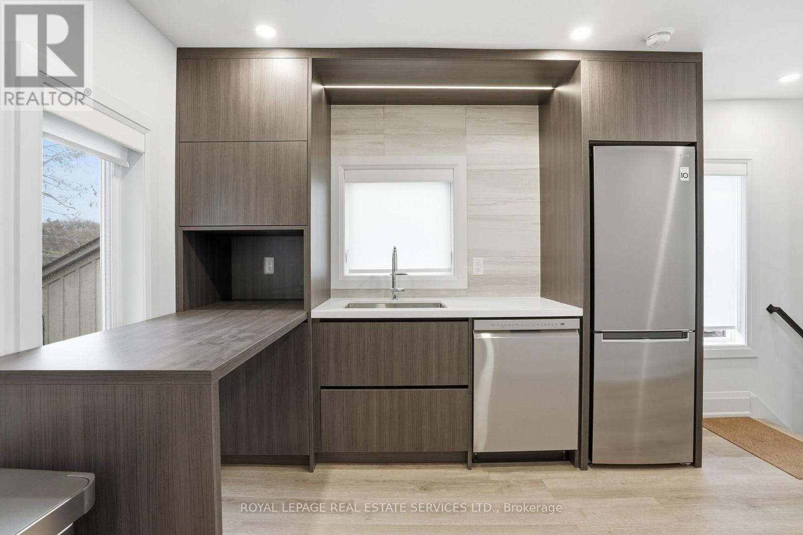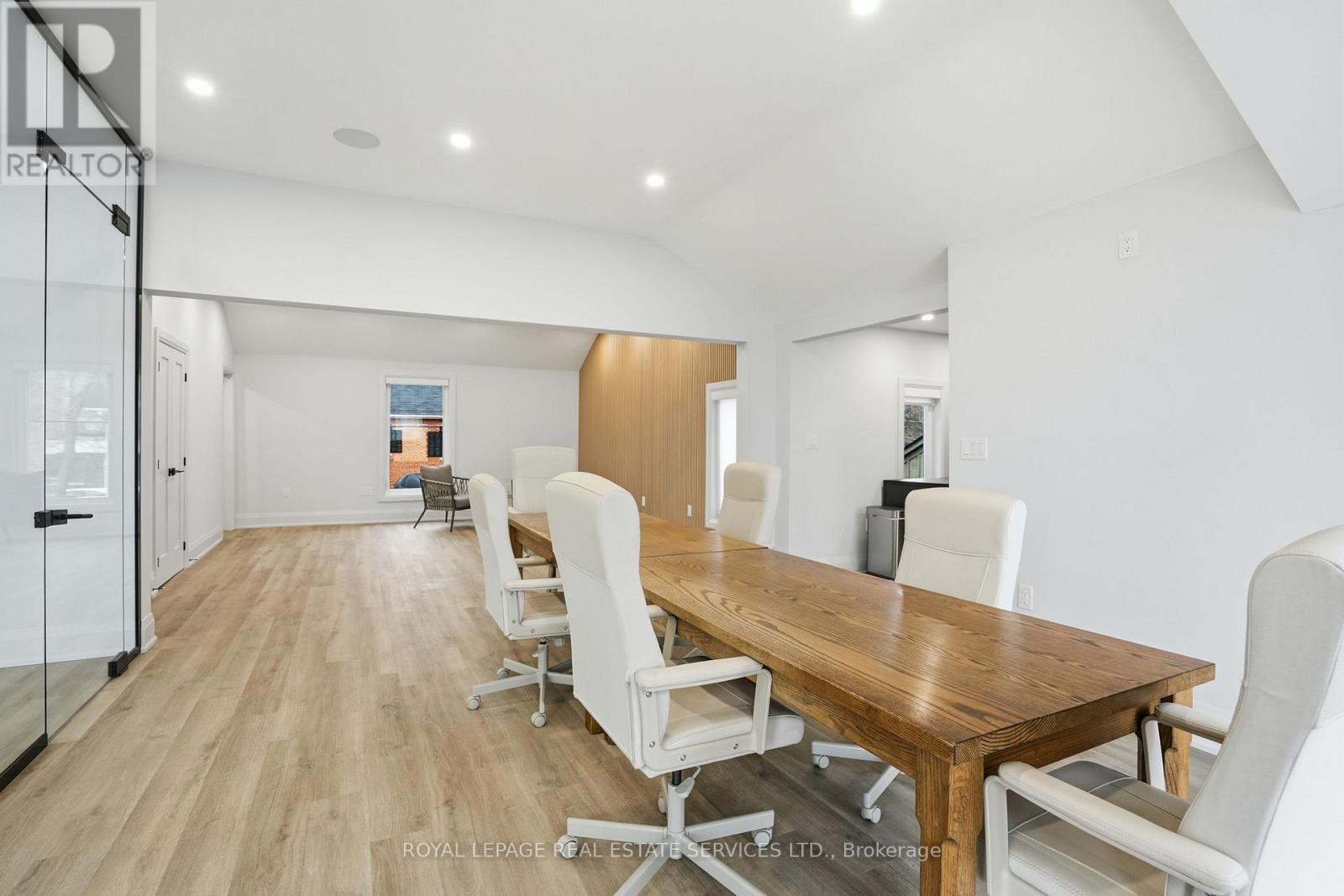 An exceptional opportunity to establish your business in one of downtown Burlington's most sought-after locations. This fully renovated second-floor waterfront office space spans 1,696 sq ft and showcases a sophisticated, design-forward interior with curated finishes throughout, including custom millwork, a sleek kitchen, glass accents, and elegant fluted wood detailing.A standout feature is the private, exclusive-use terrace with lake views offering a rare extension of the workspace and an impressive setting for client meetings or quiet moments throughout the day. The space is further enhanced by a dedicated entrance and on-site parking, both highly coveted in the downtown core.With DL-C zoning, the property accommodates a broad range of permitted uses, ideally suited for professional offices, boutique firms, and refined service-based businesses. Surrounded by Burlington's best amenities and with seamless access to major highways, the location delivers both prestige and convenience. * TMI includes utilities (Tenant responsible for WiFi & Insurance)* (id:64974)
